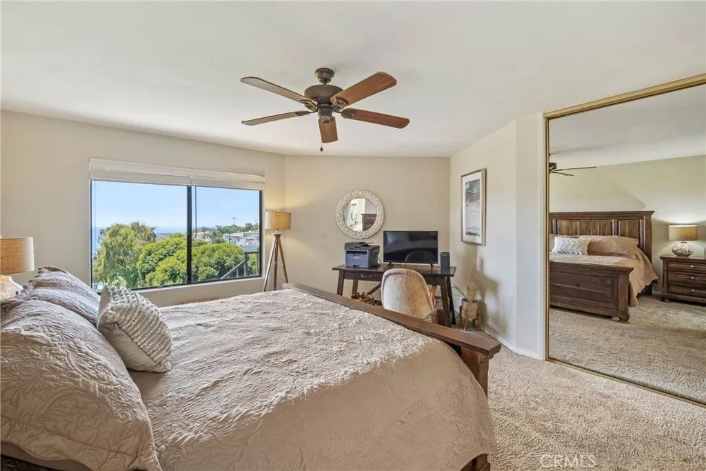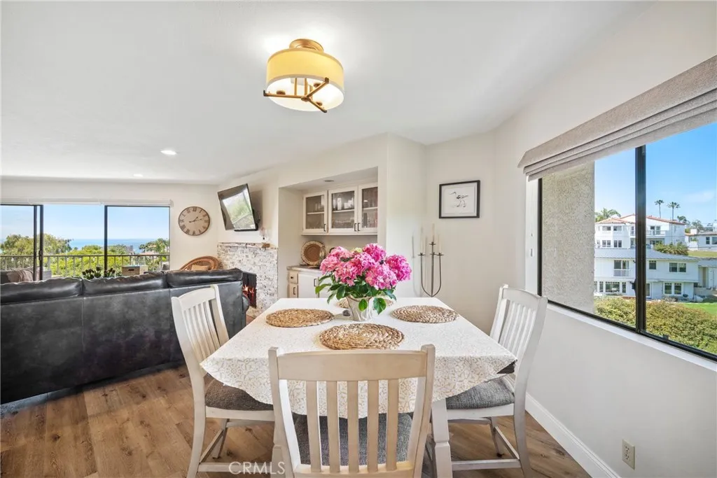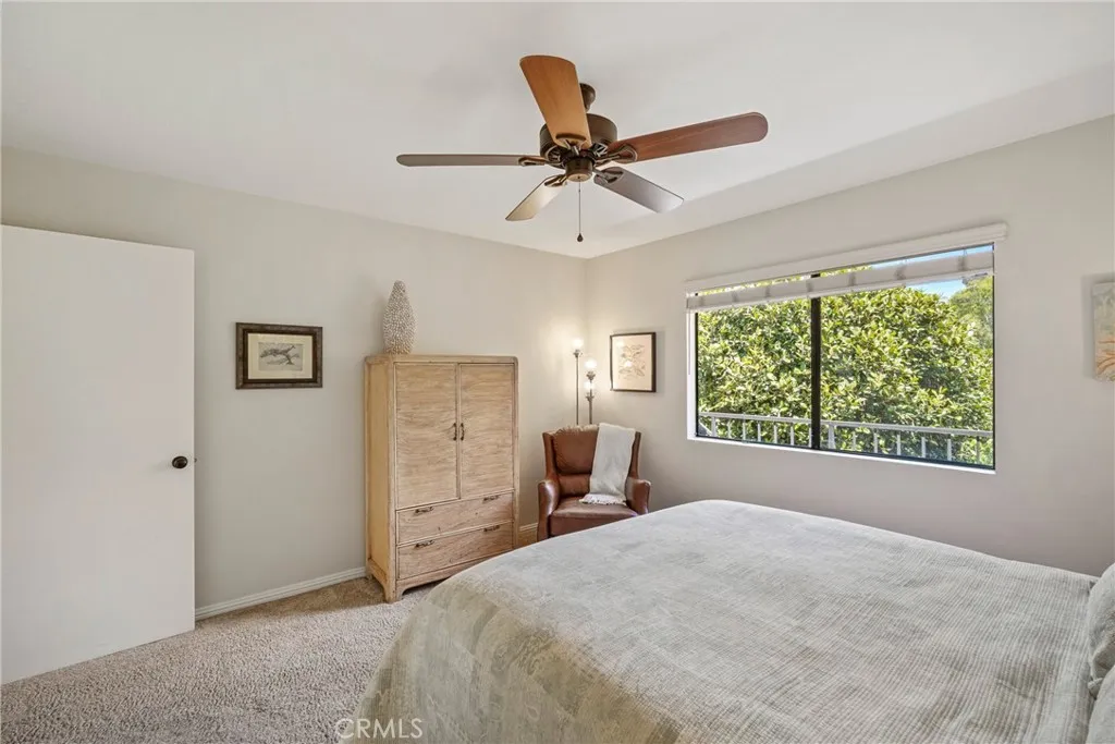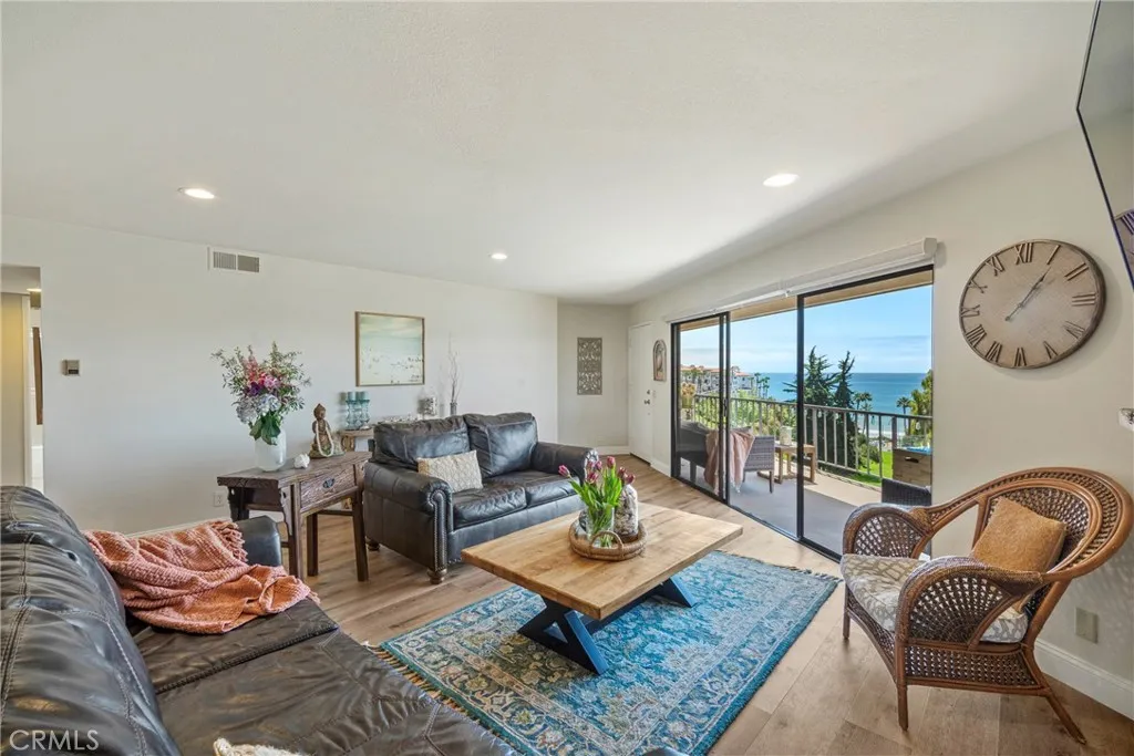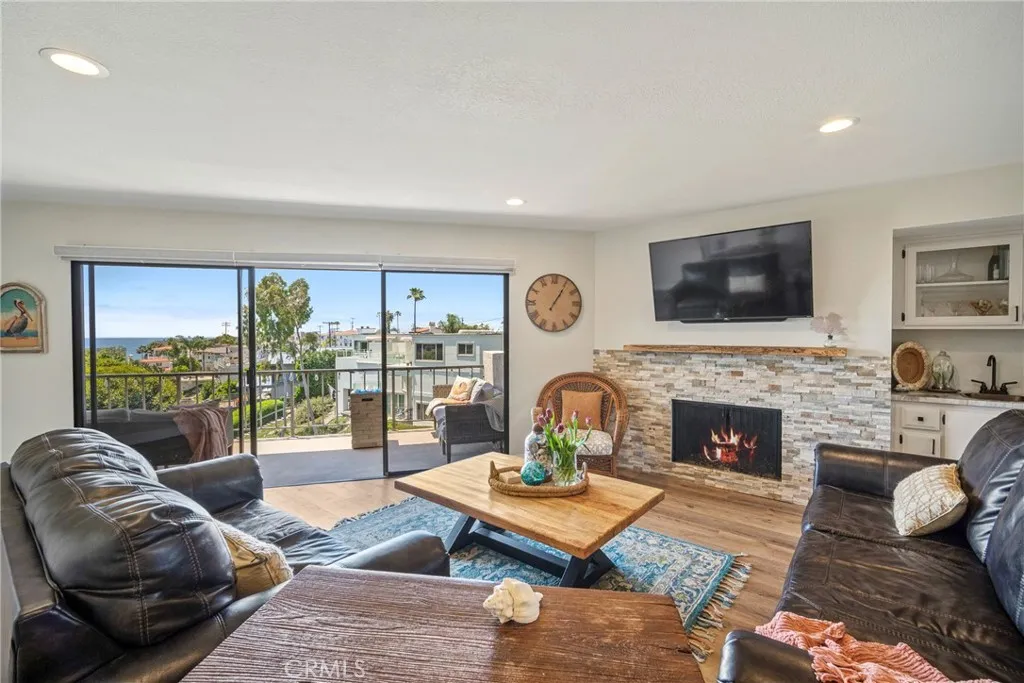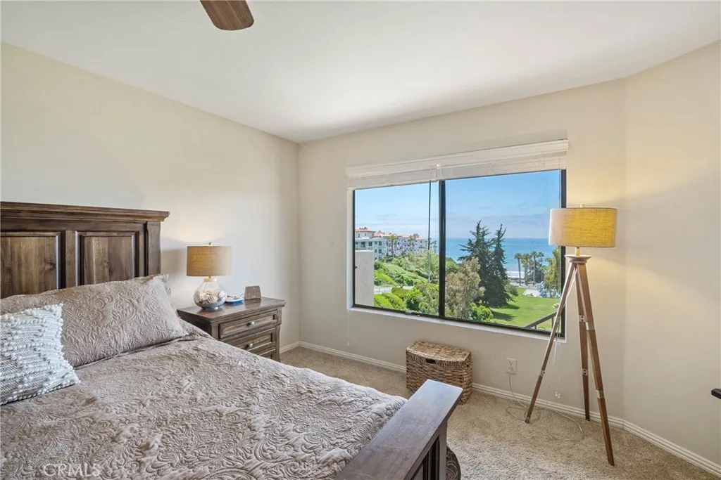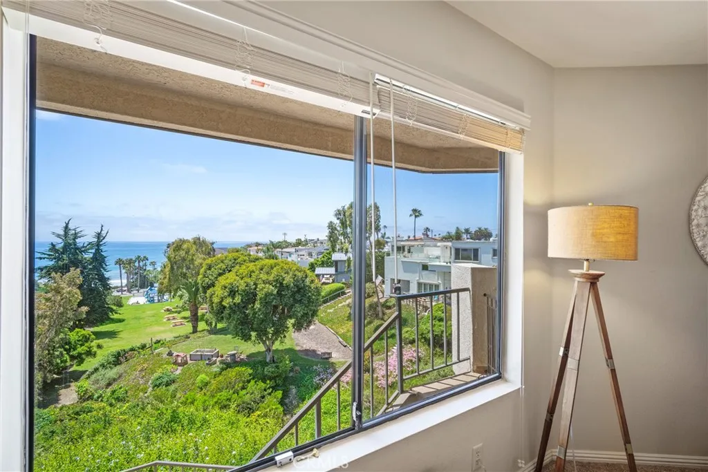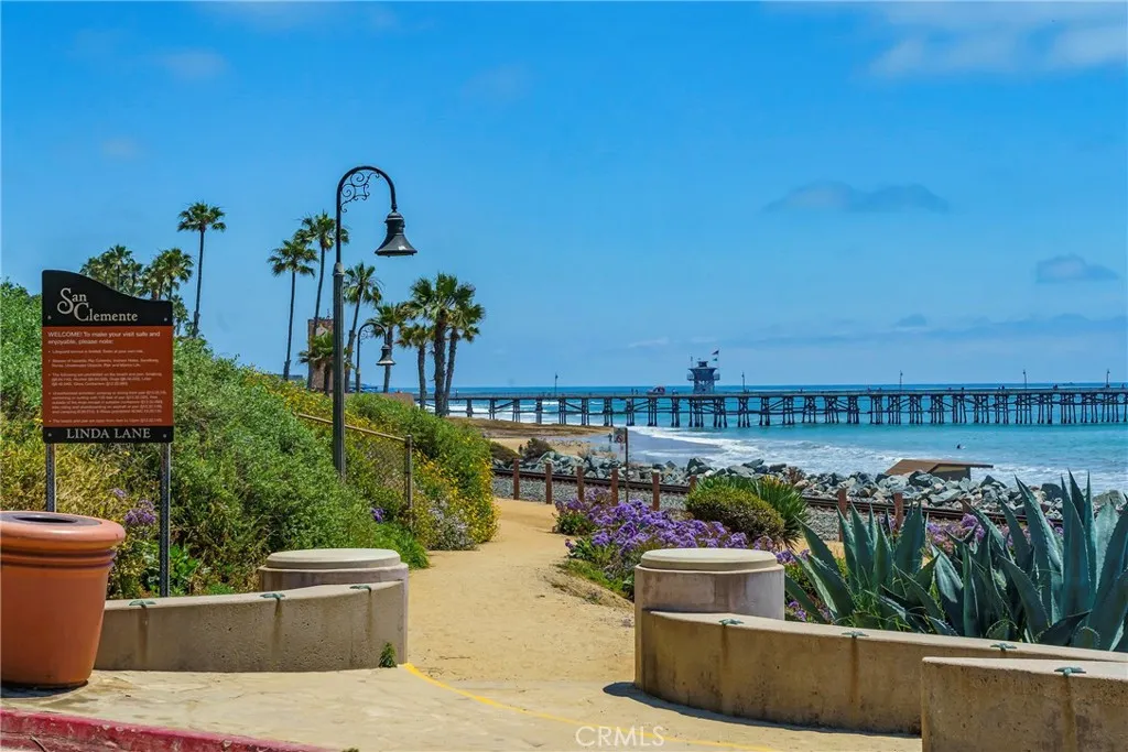 Meticulous, fully furnished condo perched at the top of San Clemente's Linda Lane — a short walk to the 2.5 mile beach trail, pier, shops and dining. Whitewater ocean, canyon, and sunset views can be taken in from all main living areas, primary suite, and large private balcony of this upper end unit. In the back of the home is a second balcony surrounded with lush greenery off the canyon providing a tranquil environment for sipping morning coffee or reading. The living space provides a highly desirable indoor-outdoor lifestyle complete with mounted big-screen television, wet bar, and gas fireplace. The bright kitchen has newer stainless steel appliances and ample storage space in white cabinetry (fully stocked with dish- and cookware), with the side-by-side washer and dryer located in a closet. The generously sized primary suite boasts a king size bed with direct ocean views from the pillow, a reading corner, and exceptionally clean en-suite with dual vanities, skylight, and walk-in shower. The secondary room is furnished with a queen size bed and offers private views of the canyon. There is a tub in the shower of the hallway/guest bath, also illuminated with a skylight. A private, gated subterranean garage has two dedicated parking spaces, a storage closet, and all utilities are included in rent. Negotiable length of terms up to 6 months, minimum of 3 months. Available from June 8, 2026 - January 4, 2027. All prospective tenants must apply through RentSpree.