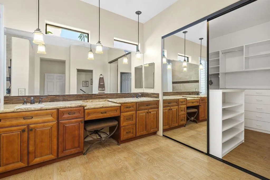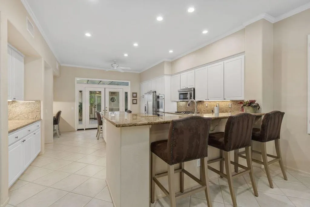 Desert living at its best in the gated community of San Marino. This spacious five-bedroom home, including a detached casita, is designed for easy indoor-outdoor living with a private pool, spa, and outdoor entertaining area. Inside, bright open spaces, high ceilings, and a well-appointed kitchen create a comfortable flow for everyday living and gatherings. The primary suite offers a peaceful retreat with patio access and a beautifully updated bath, while additional bedrooms provide flexibility for guests or a variety of other uses. Venture outside to your own private oasis--complete with pool, spa, and BBQ--ideal for relaxing or entertaining year-round. Ideally located in Rancho Mirage, just minutes from golf, dining, Eisenhower Medical Center, and the airport, San Marino also offers community amenities including tennis, pickleball, and a pool and spa.