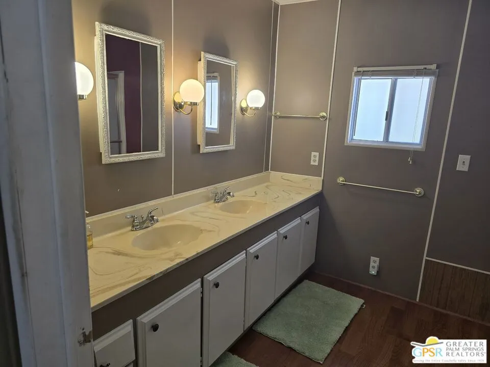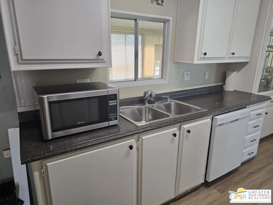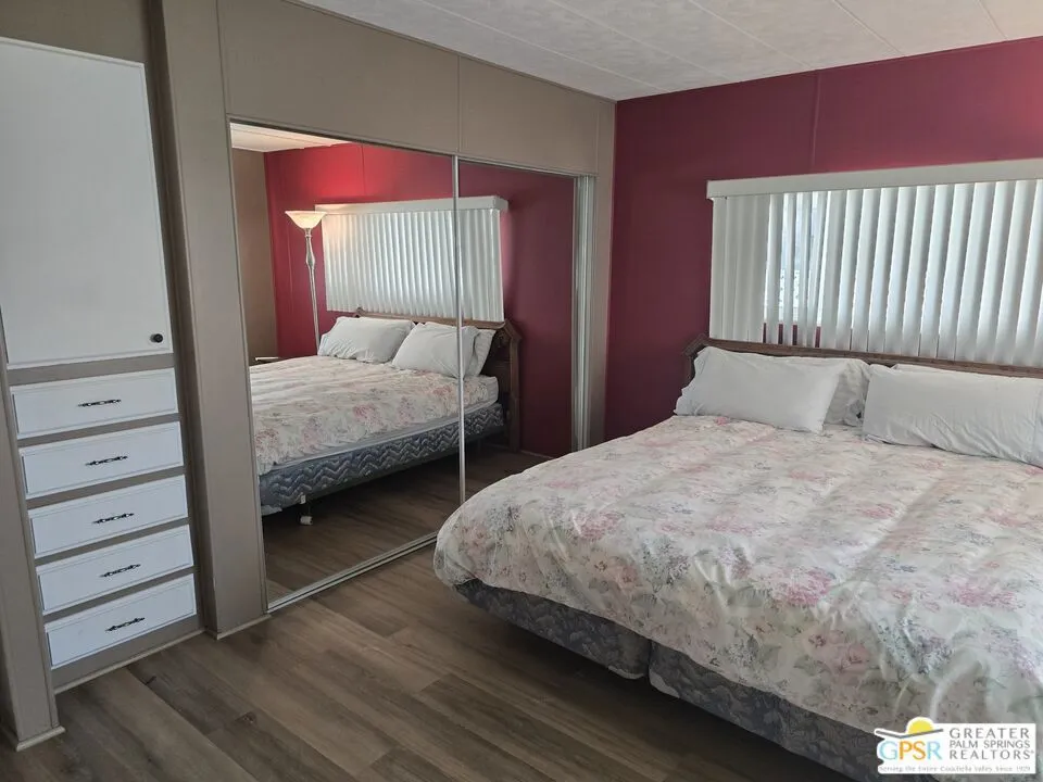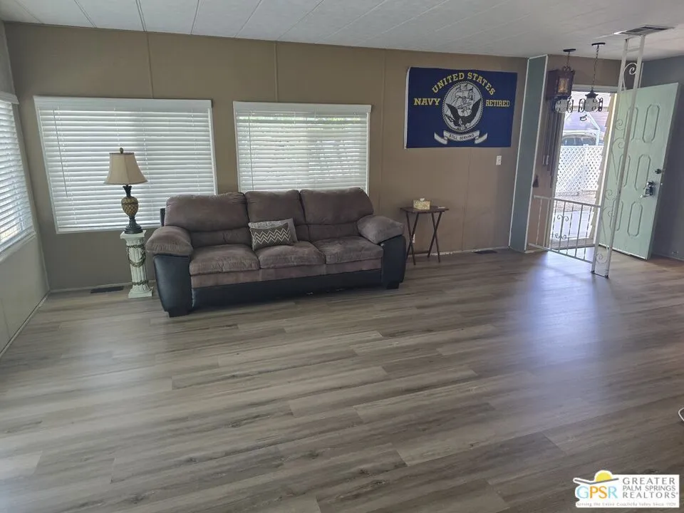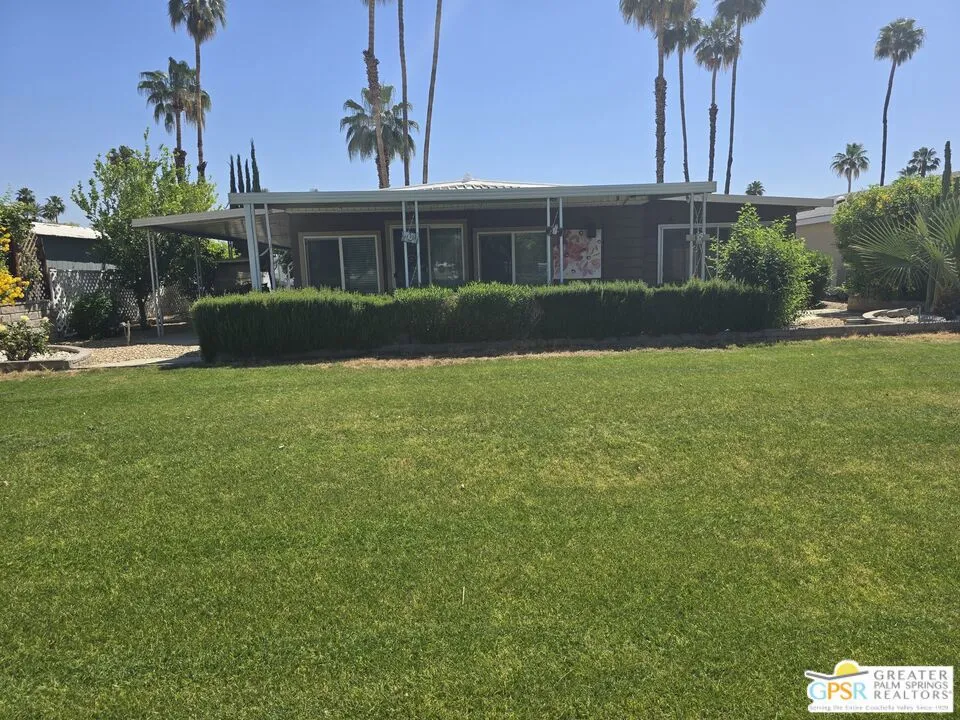 One of the LOWEST-PRICED homes in Date Palm Country Club! Attention investors, flippers, and buyers looking to customize this 2 bed, 2 bath double-wide (1,440 sq ft). Offers incredible potential in a premier 55+ golf course community (space rent). Step inside to a spacious living and dining area, plus a kitchen that flows into the family room with a built-in wet bar, perfect for entertaining. Both bedrooms are sized generously and both bathrooms include a walk-in shower. Additional highlights include a bonus room off the family room plus an indoor laundry area with washer and dryer. This home has a nice functional layout ready for your updates. Outside, you'll find a two-car tandem carport and a rear area private patio (accessible inside via Living Room slider) with FABULOUS golf and mountain views. This home is priced to sell and ready to be reimagined into a full-time residence or seasonal getaway, all within a vibrant country club setting offering golf, tennis, pickle ball, an on-site restaurant, and more. Motivated seller!! (even including a $20,000 rent space credit with a FULL PRICED offer). Bring your offer!!