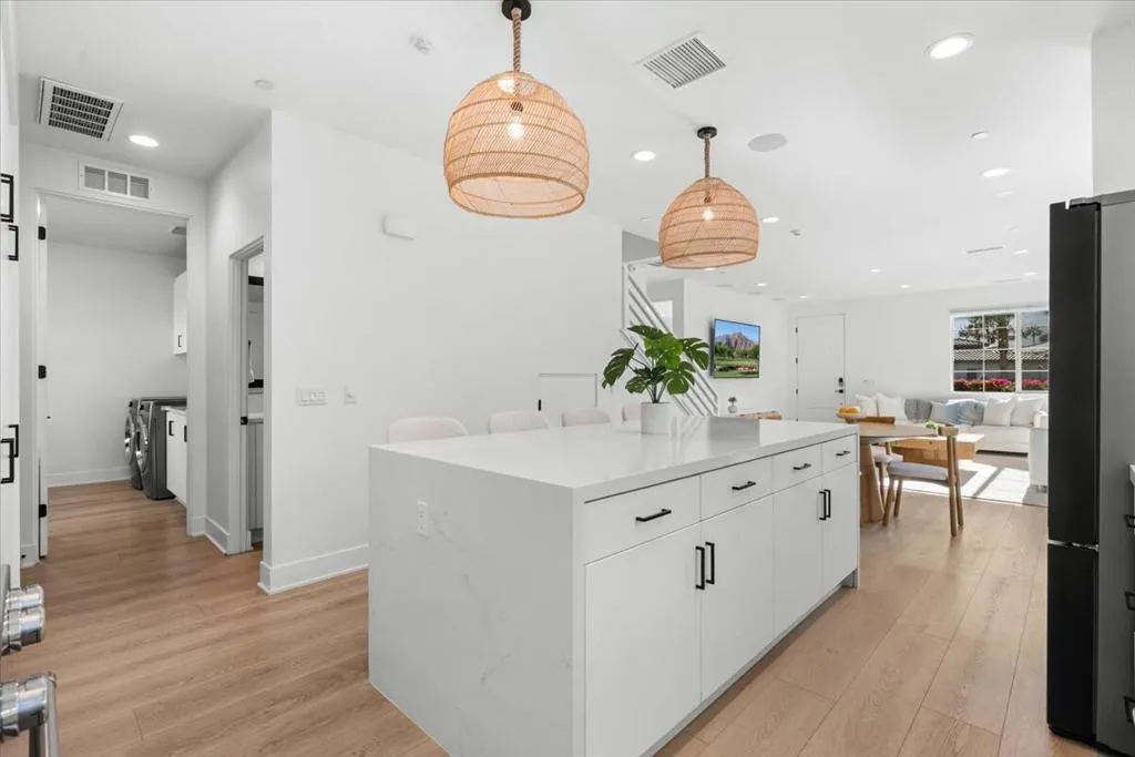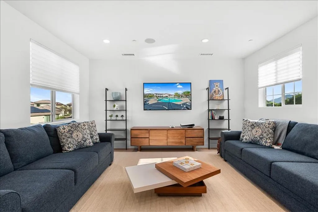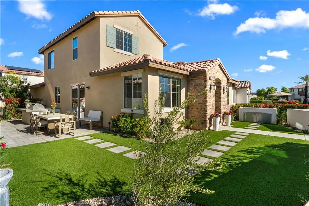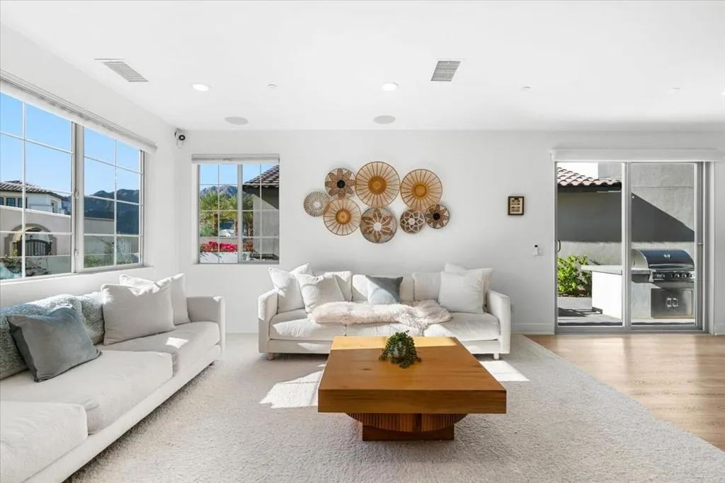 This is the one buyers wait for in PGA West. A fully upgraded home on an oversized lot with incredible mountain views--designed for effortless desert living. Located in a short-term rental permitted zone, this property offers exceptional flexibility as a primary residence, seasonal retreat, or income-producing investment. No detail was overlooked. From the upgraded flooring and wall textures to the thoughtfully curated interiors, everything feels elevated yet comfortable. The kitchen is dialed in with premium upgrades, including a pot filler, while an upstairs loft bar with wine fridge creates a perfect secondary entertaining space. Smart features like remote Hunter Douglas shades and a full Google home system make everyday living seamless.Each bedroom is outfitted with custom California Closets and high-end bedding, while the bathrooms are finished with designer touches and Toto fixtures. Outside, the backyard is built for relaxing and hosting with a built-in BBQ and multiple lounge areas set against the mountains. Owned solar, EV charging, water filtration, and an upgraded instant hot water system round out the home's modern efficiency. Turnkey Furnished package available and negotiable with brands like West Elm, Lulu & Georgia, and Crate & Barrel, this is a true plug-and-play desert retreat ready to enjoy or rent immediately