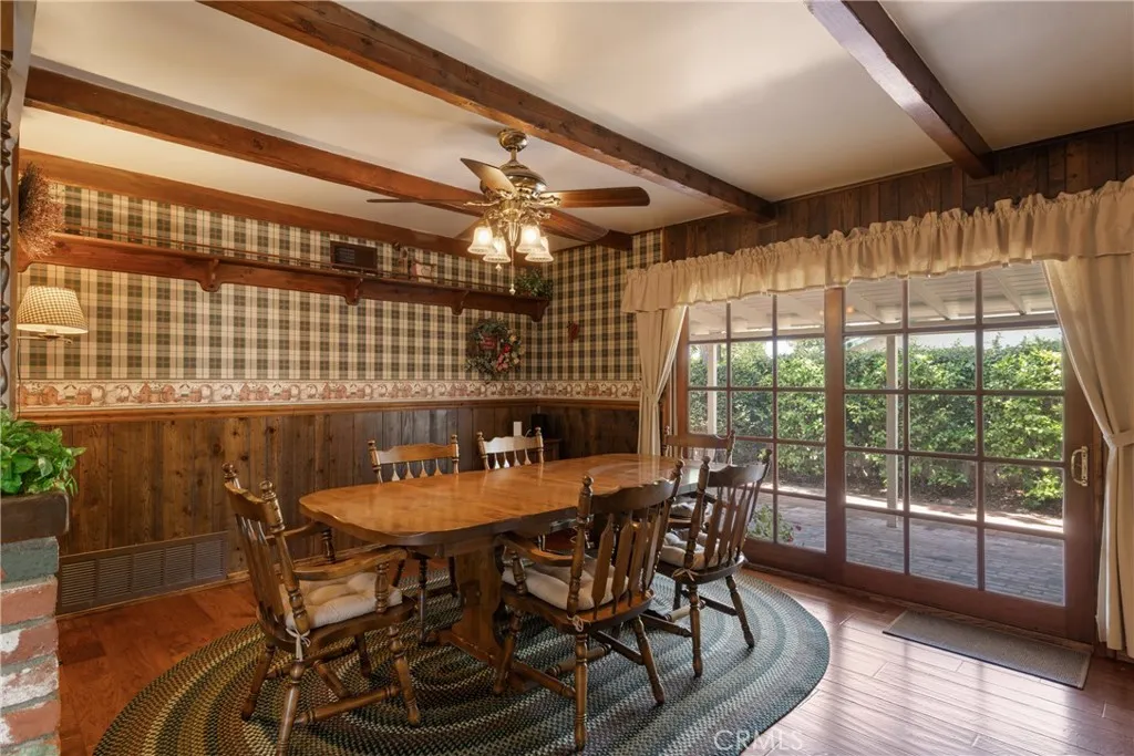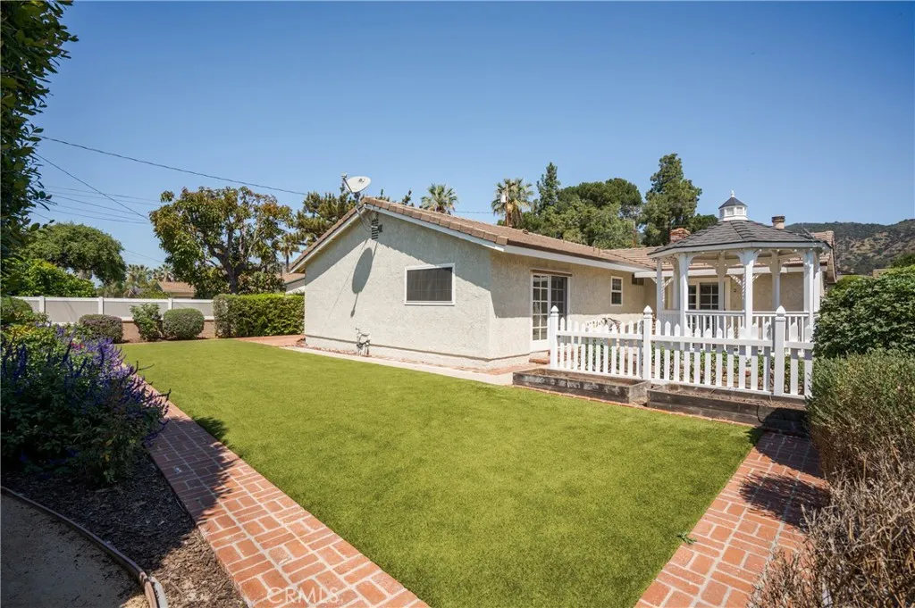 This Meticulously maintained, Custom built Ranch style home in quiet desired community features 3 bedroom 2 baths, living room with fire place, Double pane energy efficient windows with plantation shutters, wood beamed ceilings, hard wood floors, custom masonry and woodwork throughout home, cozy family room with large window and sliding glass door for added light includes wood burning stove, master bedroom with sliding glass door leads to gazebo/patio in back yard, spacious back yard features, two patios, walk ways, plenty of plants, lifetime concrete tile roof, extended wall toppers for added privacy in back yard, in front of property enjoy a view of the foothills when you walk out, 4 car stone paved driveway and two car garage. Glendora's school district ranks among California's top in state, 5 min walk to Sellers Elementary school.