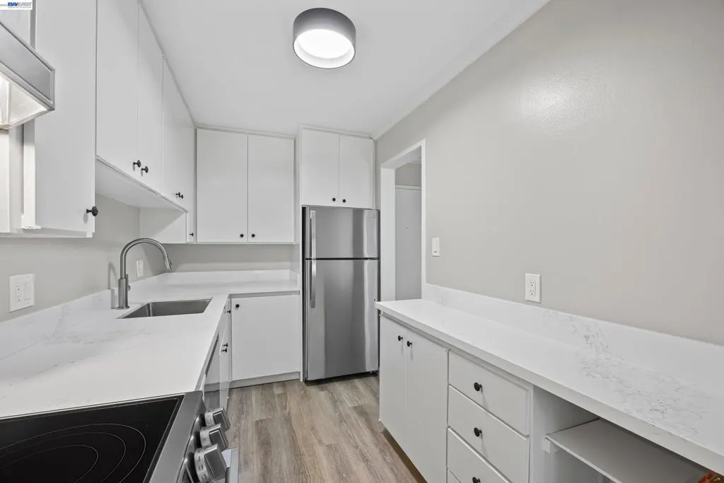 Amazing value in the highly desirable Woodlake community! This beautifully updated 1-bedroom condo is ideally situated in a prime pool-view location, offering a bright and inviting living environment filled with natural light. The refreshed kitchen features brand-new stainless steel appliances, new countertops, updated flooring, and modern light fixtures, creating a clean and contemporary feel. Fresh paint throughout and new carpet enhance the home’s move-in-ready appeal. The remodeled bathroom includes a new vanity and updated countertops with stylish finishes. Extend your living space outdoors on your private patio, perfect for relaxing while enjoying peaceful pool. Additional highlights include private storage and an assigned garage parking space. Woodlake offers a true resort-style lifestyle with six swimming pools, four lighted tennis courts, a fully equipped fitness center, clubhouse, and beautifully landscaped grounds with a large lake and walking paths. The on-site shopping center includes Starbucks, Safeway, CVS, restaurants, and more—bringing everyday convenience right to your doorstep. Ideally located near downtown Burlingame and downtown San Mateo, with easy access to SFO, Caltrain, and Coyote Point, this home offers the perfect blend of comfort, style, and convenience.