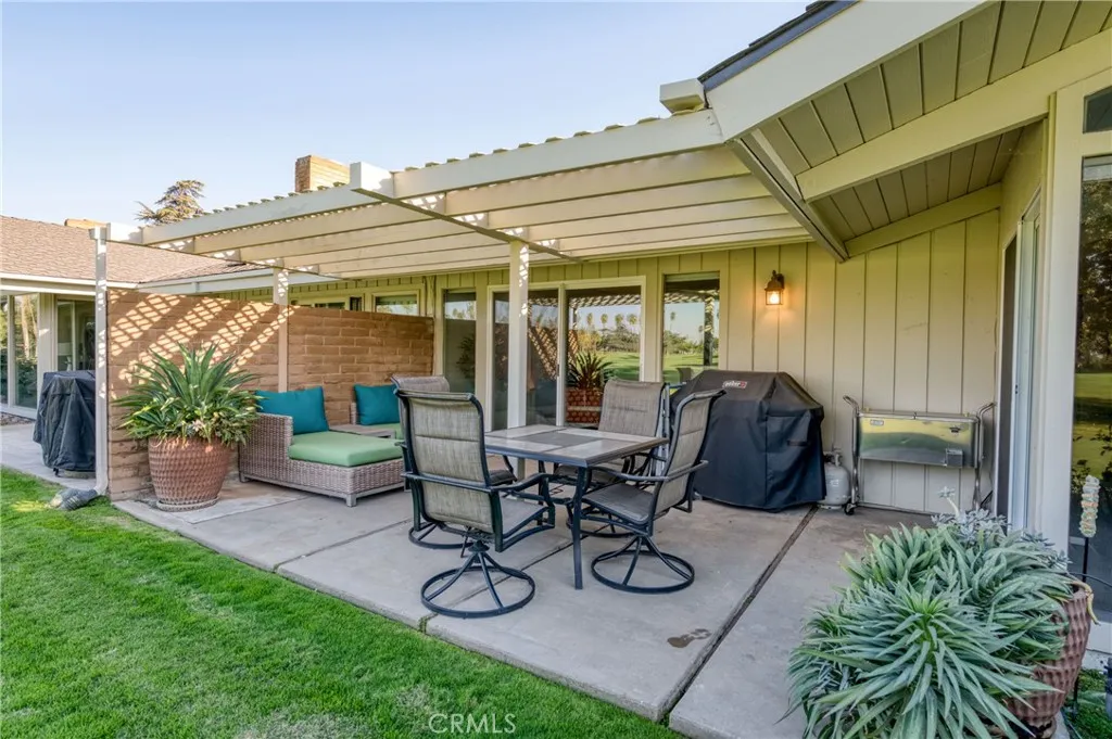 Rare opportunity to own one of only 18 residences in Fairway Hacienda, a private development nestled in the middle of the San Joaquin Country Club golf course. This prime north-facing home offers serene views toward the San Joaquin River, spacious vaulted ceilings, and timeless mid-century design. Featuring 2 bedrooms positioned on opposite sides of the home for added privacy, updated bathrooms, a kitchen with granite counters and stainless steel appliances, three private patios, abundant storage, and a spacious laundry room, this home is designed for easy luxury living. Perfect for an active golfer, downsizer, or anyone seeking a low-maintenance lifestyle in one of Northwest Fresno's most exclusive neighborhoods. Enjoy HOA amenities including a private pool, golf cart garage, and exterior and landscape maintenance, all near fine dining and shopping. Call today for a private tour.