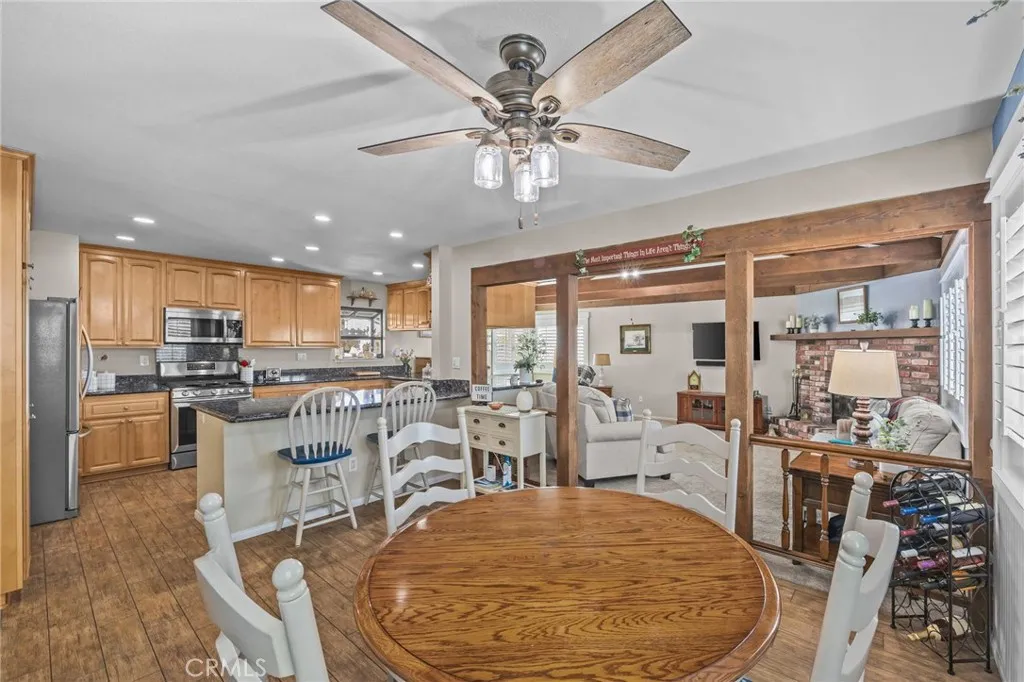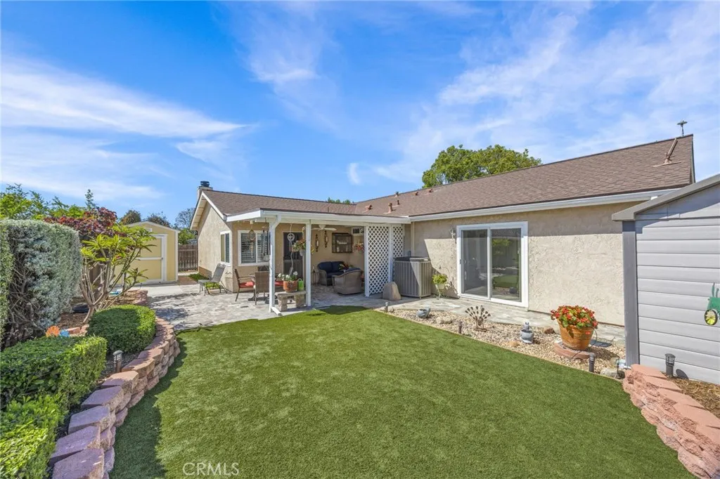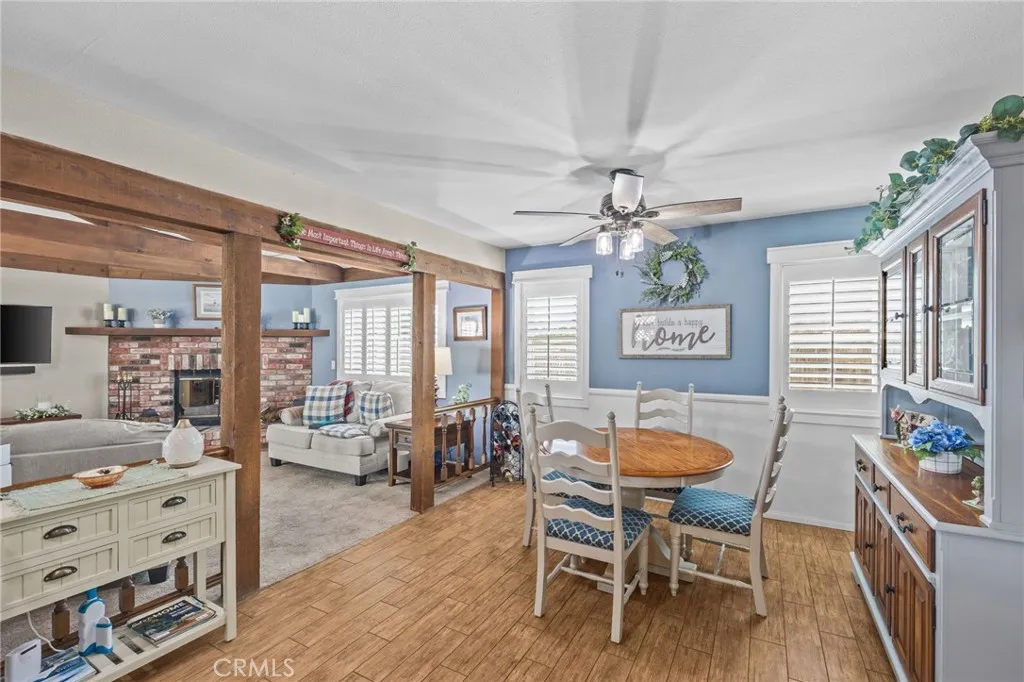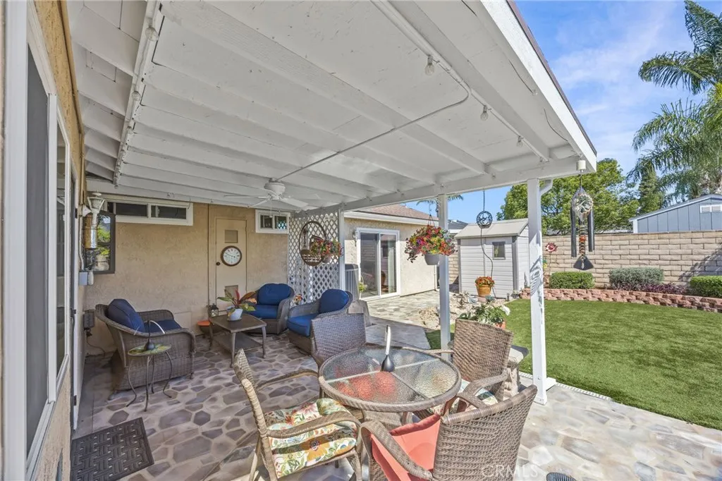 Welcome to this charming single-story home nestled in one of Chino’s most desirable neighborhoods. Offering 4 spacious bedrooms and 2 bathrooms across approximately 1,843 square feet, this property blends comfort, character, and functionality. From the moment you arrive, the inviting white picket fence and beautifully maintained mature landscaping create timeless curb appeal. Inside, the home features an expansive living room highlighted by striking open beam ceilings, adding warmth and architectural interest to the space. The large, upgraded kitchen is perfect for both everyday living and entertaining, offering ample counter space, modern finishes, and room to gather. Natural light flows throughout the home, enhancing its welcoming atmosphere. Additional features include solar panels for energy efficiency, a two-car garage, and two versatile storage sheds—one equipped with workbenches, ideal for hobbies, projects, or extra storage needs. The backyard provides a peaceful retreat with established greenery, offering both privacy and space to relax or entertain. Conveniently located near schools, parks, shopping, and dining, this home presents a wonderful opportunity to enjoy all that this sought-after Chino community has to offer.