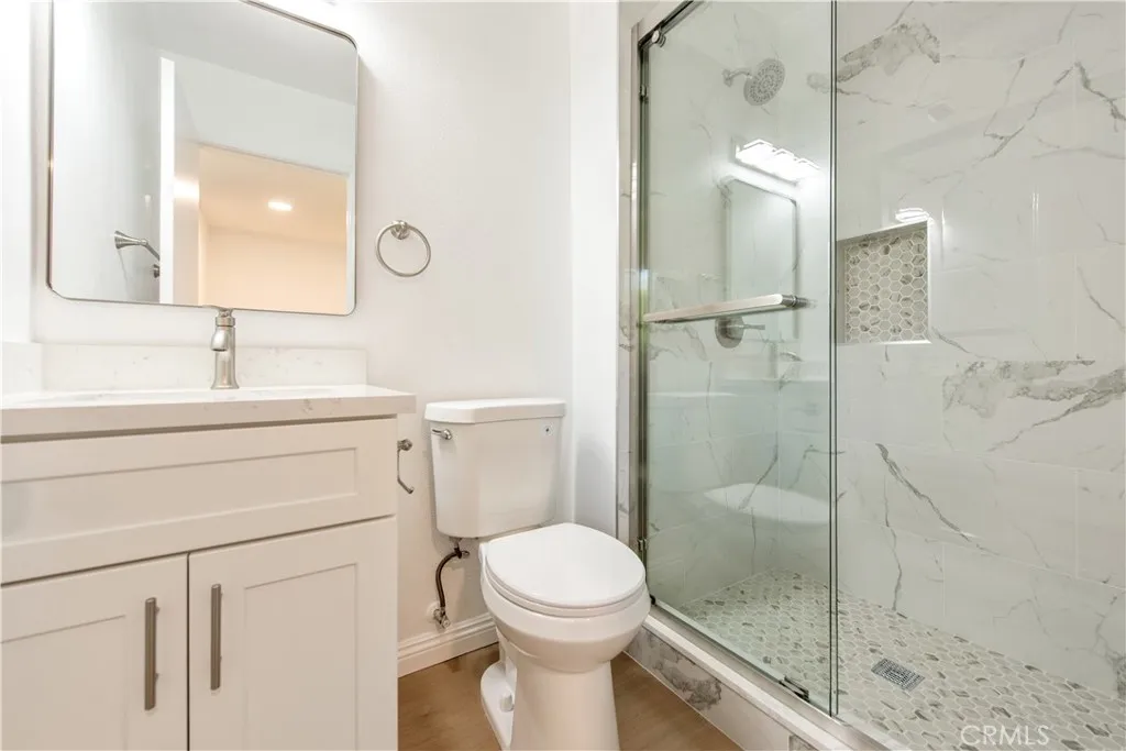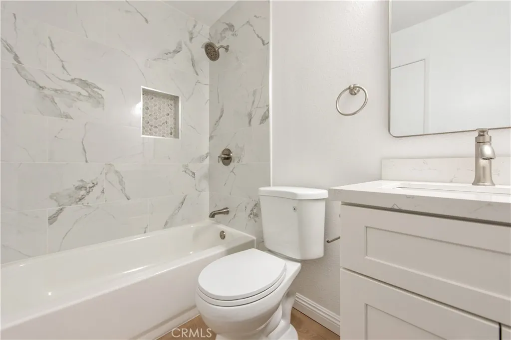 Charming two-story condominium offering 3 bedrooms and 2 bathrooms with approximately 1,243 sq. ft. of well-designed living space. Recently improvements of approximately $50,000 in upgrades, including new flooring throughout, fresh interior paint, and fully remodeled kitchen, bathrooms, and cabinetry—creating a clean, modern, and truly move-in ready home. The upgraded kitchen features granite countertops and a custom brick-accent breakfast bar, adding warmth and a unique design element to the space. The functional layout offers a spacious primary suite with a walk-in closet. The private backyard provides a great setting for everyday relaxation or entertaining guests. Additional highlights include an attached 2-car garage. Community amenities include a pool, tennis courts, recreation room, and walking paths. Ideally located near shopping, dining, entertainment, and major freeways, offering both convenience and accessibility. HOA dues cover water, trash, insurance, and maintenance of community amenities. A great opportunity you don’t want to miss!