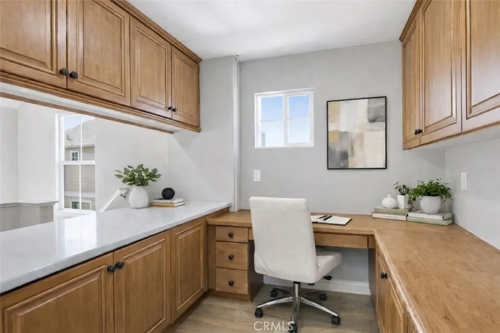 Enjoy the perfect blend of convenience and coastal tranquility in this beautifully upgraded detached townhouse in Redondo Beach unit #60. Just five minutes from the sand, this home combines modern comfort with timeless design. Every detail has been thoughtfully crafted to maximize space and livability. The kitchen features stainless steel appliances, luxurious granite countertops, and custom white cabinetry. Immaculate wood floors flow throughout the home, adding warmth and elegance. An upstairs office nook provides the perfect work-from-home space, while both bedrooms offer full en-suite bathrooms with beautifully upgraded tile and cabinetry. The primary suite includes a spacious walk-in closet and a serene soaking tub for unwinding after a long day. Relax or entertain on your private brick patio—an inviting retreat just moments from the beach. Additional highlights include low HOA dues, in-unit laundry, two parking spaces, and a large personal storage unit. Experience true California living at one of the best values on the market.