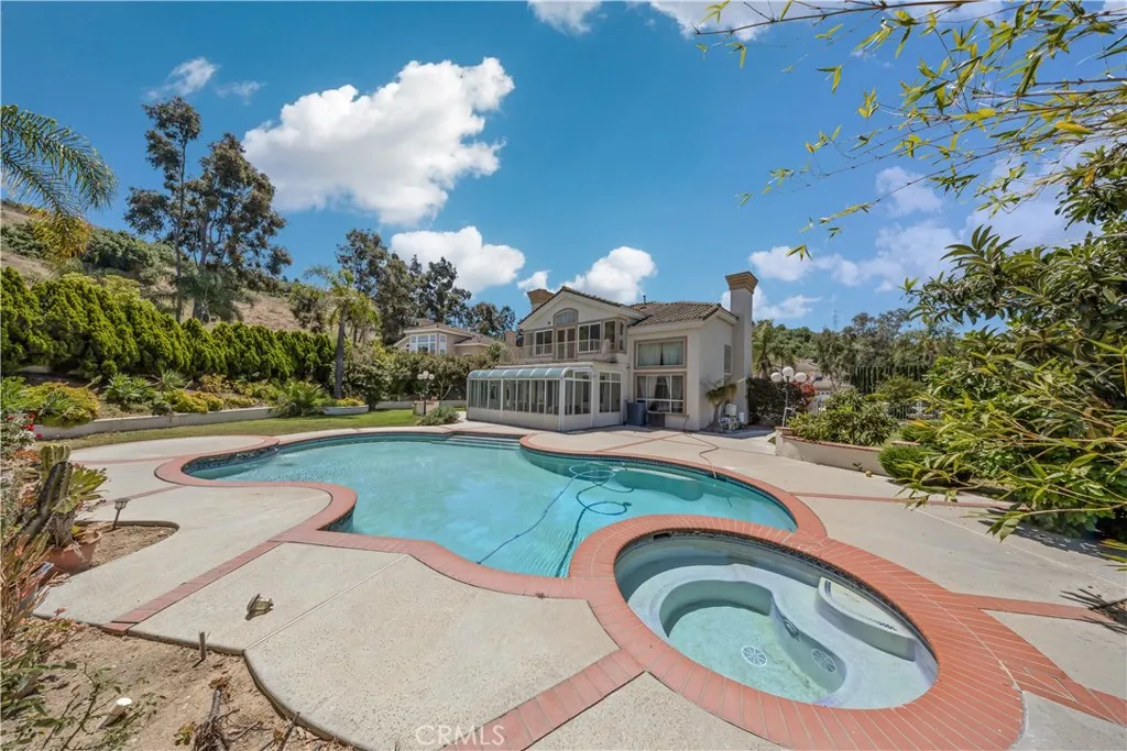 Nestled in the scenic hills of Rowland Heights and located within the highly sought-after, award-winning Rowland Unified School District, this exceptional home showcases true pride of ownership throughout. Featuring 4 spacious bedrooms and 4 bathrooms, this residence offers both comfort and functionality. The beautifully appointed kitchen includes granite countertops, stainless steel appliances, recessed lighting, and opens seamlessly to the inviting family room with a cozy fireplace—perfect for everyday living and entertaining. Step inside to a bright and airy interior enhanced by fresh paint, abundant natural light, and soaring vaulted ceilings in the entry, living, and dining areas. A convenient downstairs bedroom with a full bathroom provides an ideal space for guests or multi-generational living. Upstairs, you’ll find generously sized bedrooms, each with its own bathroom, offering privacy and comfort for the whole family. The luxurious primary suite features high vaulted ceilings, a walk-in closet, and a double vanity. Situated on a quiet cul-de-sac, the property also boasts a rare 4-car garage. The backyard is perfect for entertaining, featuring a sparkling pool and stunning views of the city lights and surrounding mountains. This is a must-see home that truly has it all—don’t miss your opportunity to make it yours before it’s gone!
