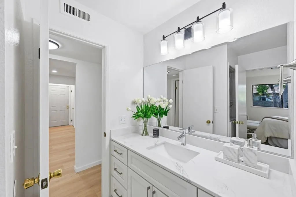 Beautiful renovated 2 bedrooms 1 bathroom condo located in a gated community. Built in 1985, this spacious one level 1,010 sq ft home offers brand kitchen with new cabinets, quartz countertop, new stove, new exhaustive fan and new dishwasher. Brand new bath with shower and tub, new vanity with quartz countertop. Laundry facilities are conveniently located inside the home. New interior painting, new recess lightings in kitchen and living room. The spacious living area with sliding door leading a private balcony. The property includes one detached car garage and one assigned parking space. Residents have access to a community pool facility. The home is situated within the Evergreen Elementary School District. Close to Eastridge Mall and shopping center and restaurants. Easy access highway 101. Embrace the opportunity to make this San Jose home your own!