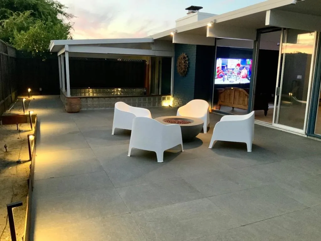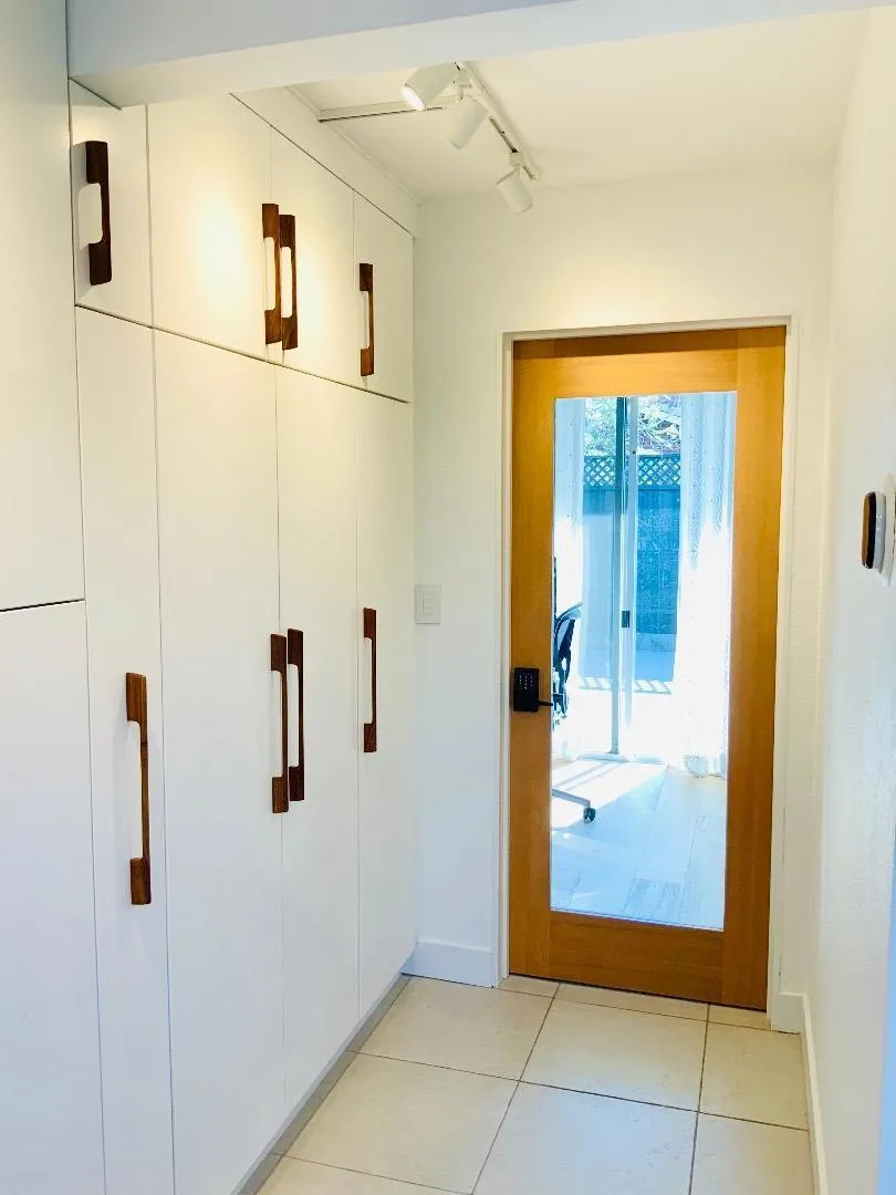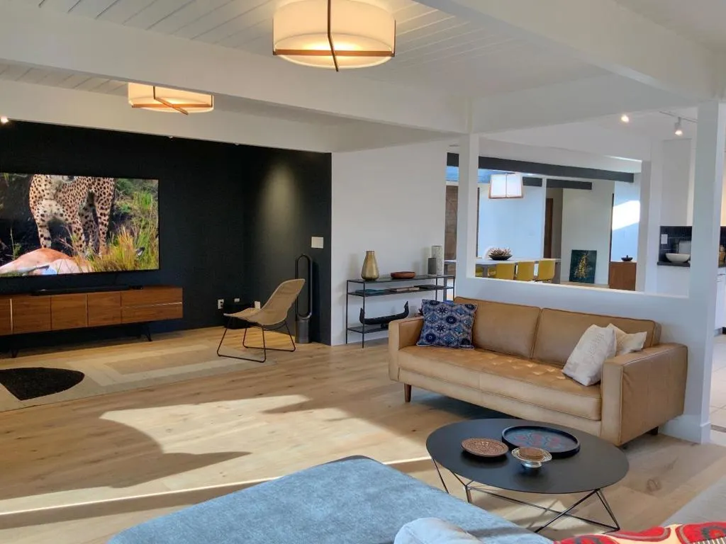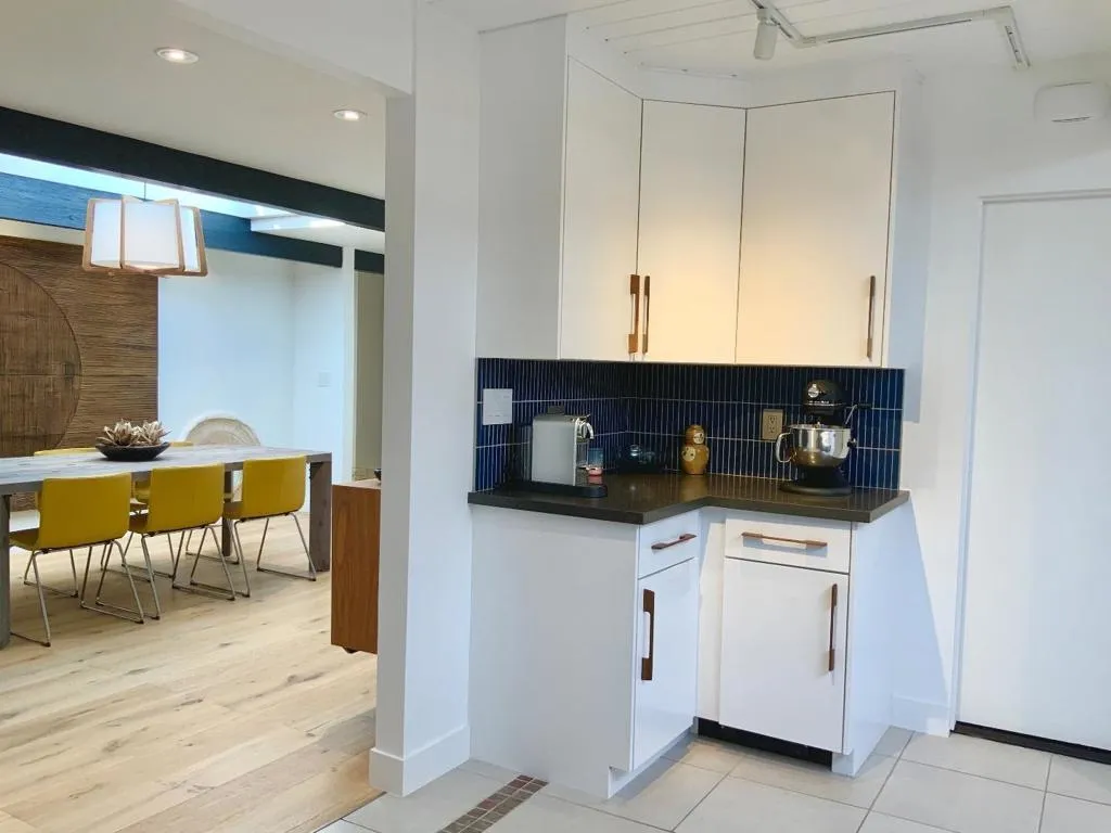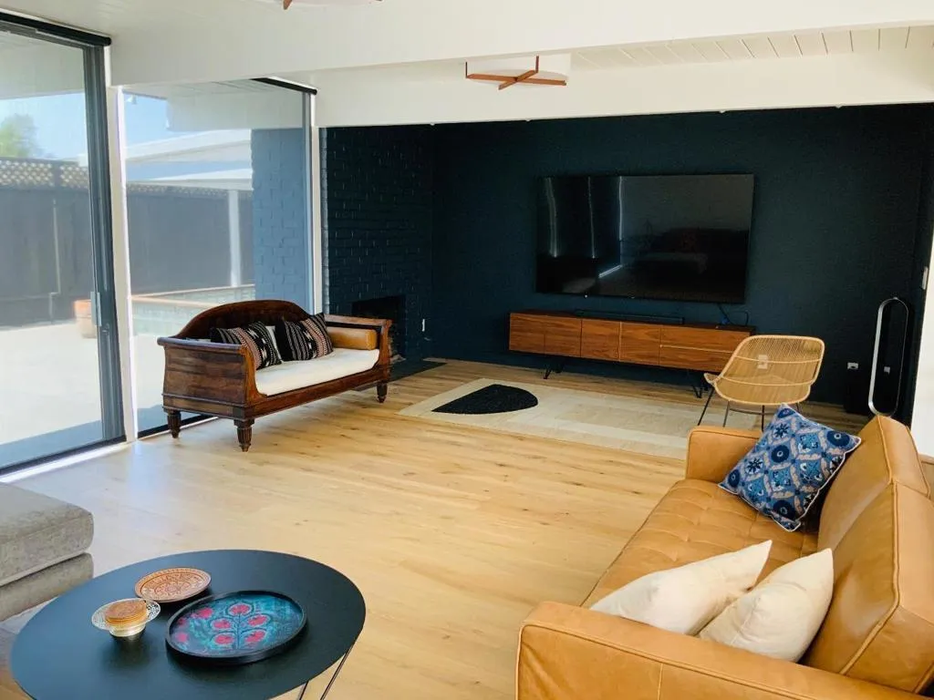 If you have dreamed of living in a beautifully designed home, then this is the home for you! Owners spent 3 yrs designing & sourcing perfect finishes for their dream home. Converted from 5 bedroom Eichler to 3 bedrm open floorplan. It has spacious primary suite, 2 office spaces, 2.5 baths. Finished garage with custom cabinets provides extra hobby or exercise/TV room. Interior walls painted to highest Level 5 smoothness, once you see it you will appreciate the quality. It is a sun-filled, open floorplan with many skylights. Engineered wood floors throughout. Custom tiles in baths. Smart Home: Energy efficient radiant heating unit, multi zone control board, radiant fans, & Ecobee thermostats. Remodeled kitchen with quartz countertops. Quality appliances: 5 burner Thermador stove, CFM Hood, Bosch fridge. Powder room is specially designed Moroccan themed space with custom walnut "live-edge" counter, MTI over counter sink, luxury faucet & toilet fittings by Samuel Heath, custom 'Status Wood' shelves, DXV toilet, hand painted Fire Clay tiles, custom textured wall by local artist. Finished spacious backyard, lights, gas Fire Bowl with coordinated chairs. Covered porch area from primary bedrm. Plenty of storage. Renovated to the studs & earthquake retrofit done. Great quality modern home