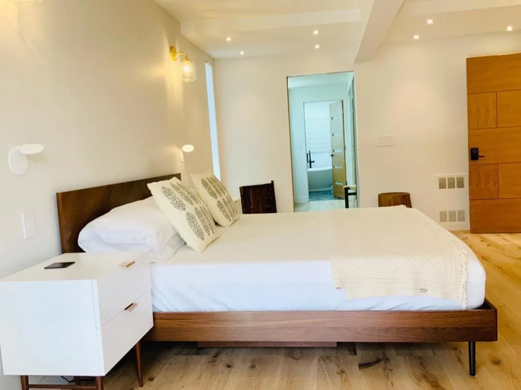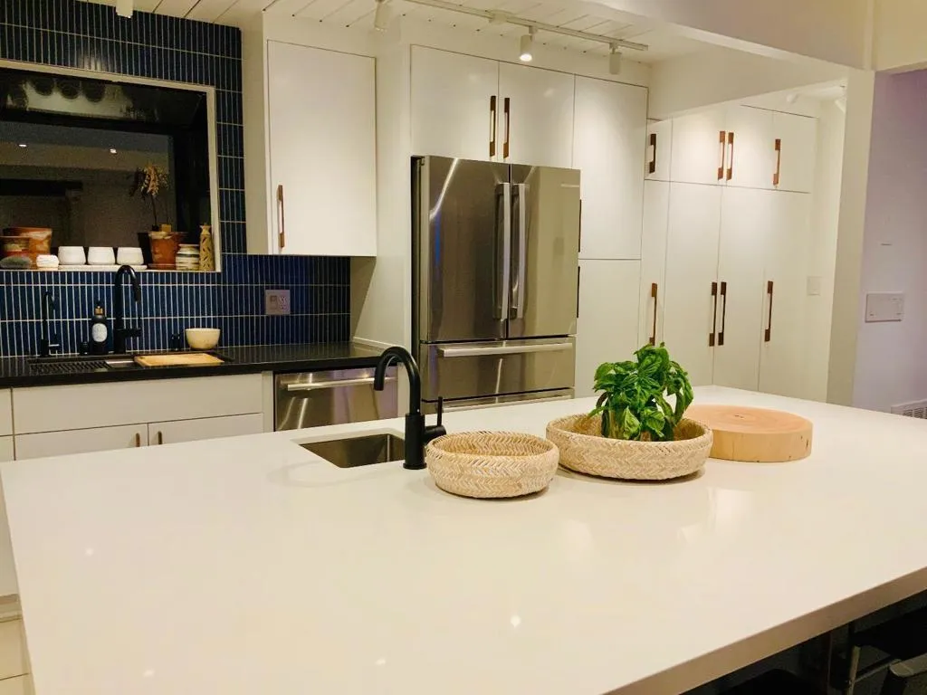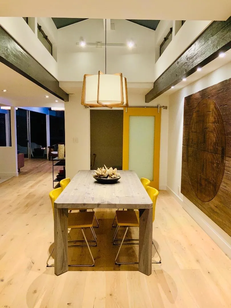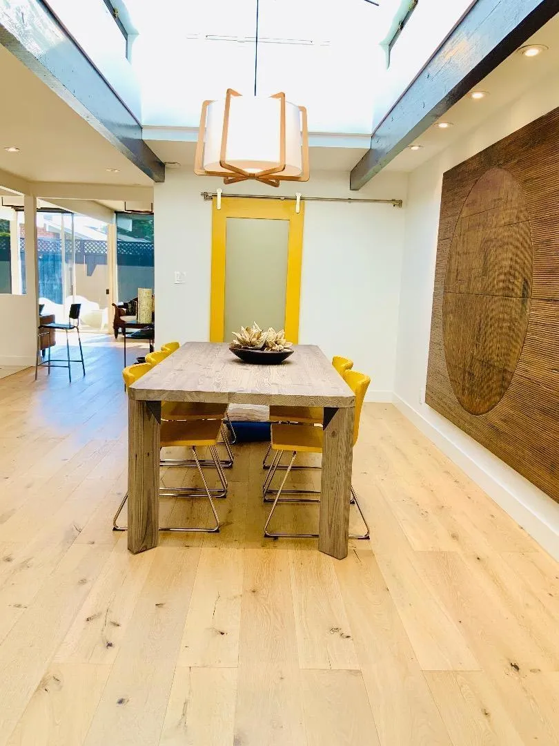 If you have dreamed of living in a beautifully designed home, then this is the home for you! Owners spent 3 yrs designing & sourcing perfect finishes for their dream home. Converted from 5 bedroom Eichler to 3 bedrm open floorplan. It has spacious primary suite, 2 office spaces, 2.5 baths. Finished garage with custom cabinets provides extra hobby or exercise/TV room. Interior walls painted to highest Level 5 smoothness, once you see it you will appreciate the quality. It is a sun-filled, open floorplan with many skylights. Engineered wood floors throughout. Custom tiles in baths. Smart Home: Energy efficient radiant heating unit, multi zone control board, radiant fans, & Ecobee thermostats. Remodeled kitchen with quartz countertops. Quality appliances: 5 burner Thermador stove, CFM Hood, Bosch fridge. Powder room is specially designed Moroccan themed space with custom walnut "live-edge" counter, MTI over counter sink, luxury faucet & toilet fittings by Samuel Heath, custom 'Status Wood' shelves, DXV toilet, hand painted Fire Clay tiles, custom textured wall by local artist. Finished spacious backyard, lights, gas Fire Bowl with coordinated chairs. Covered porch area from primary bedrm. Plenty of storage. Renovated to the studs & earthquake retrofit done. Great quality modern home