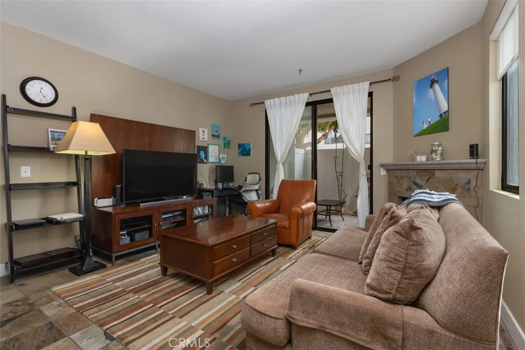 Brookstone two bedroom two full bathrooms condo in Huntington Beach. This is two bedroom ensuite. The unit is all one level and the lovely kitchen with eating area has been remodeled not too long ago with some pull out draws, one deep sink and granite like counter tops. Fire place in the living room and a nice patio off of it. There is also a patio off the primary bedroom. Ceiling fans in both bedrooms. One of the bedrooms has wood like blinds and both bathrooms has newer vanities also. Slate tile in kitchen, living room and hallway except for the bedrooms which are carpeted. Two master suites and both bathrooms have tubs and showers and neutral color tile floors. Sprinkler system in the ceilings in case of fire, 1 car garage and 1 assigned parking space. Association dues cover cable, internet, trash, pool, landscaping and maintenance of common areas. Complex is tucked away and is quite quiet . It has a swimming pool and spa with outdoor shower and bathroom facility. Washer/Dryer is approximately about 3 years old and is included with the purchase. BUYER TO VERIFY ALL INFORMATION IN THE MLS.