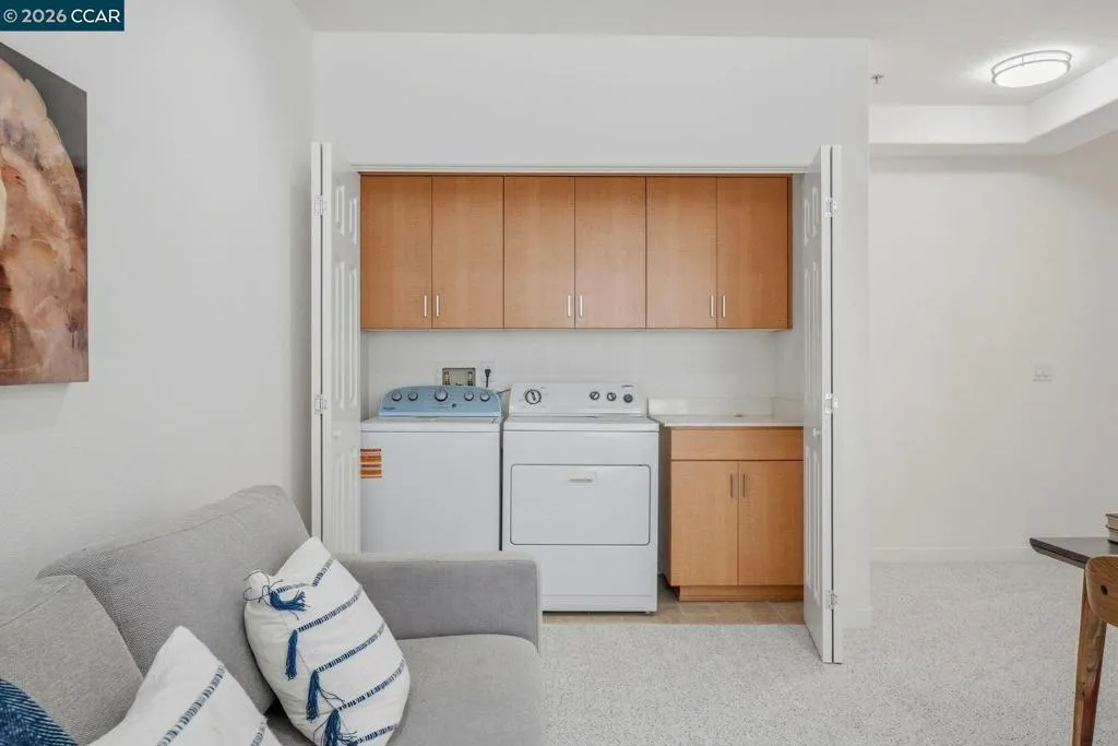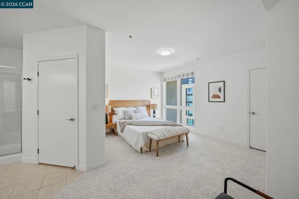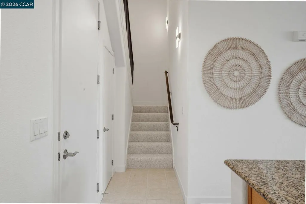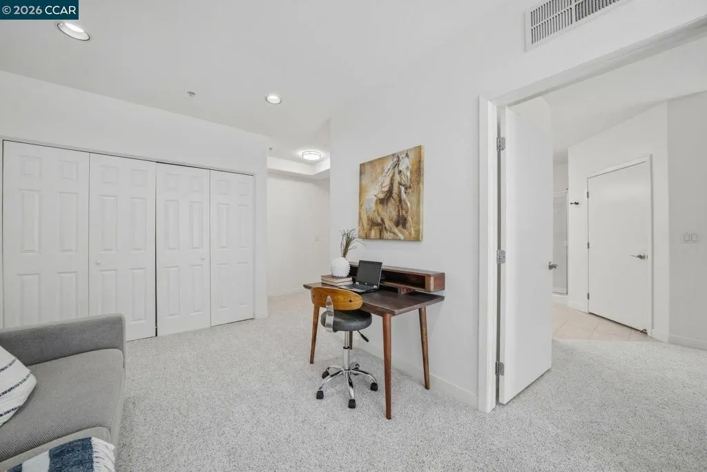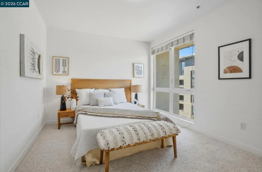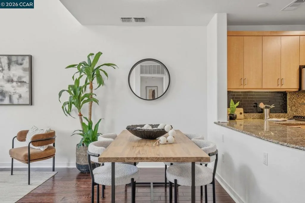 Sleek and sophisticated! Enjoy urban living in this rare, light-drenched two-level residence featuring dramatic double-height ceilings and soaring windows with stunning blue-sky views. The unique layout offers maximum privacy with one bedroom and a full bathroom on each floor, plus a versatile mezzanine loft perfect for a home office or gym. The open-concept interior boasts a chef’s kitchen with a gas stove and large peninsula, flowing seamlessly into the living area and a private balcony with East Bay Hill views. Enjoy ultimate convenience with in-unit laundry, two-car side-by-side deeded parking, and premium Homeowners Association amenities including a full gym, pool/game room, and onsite management. A true commuter’s dream, you are seconds from Dublin/Pleasanton BART, tech shuttles, and I-580/680, with Whole Foods and premier dining right around the corner.