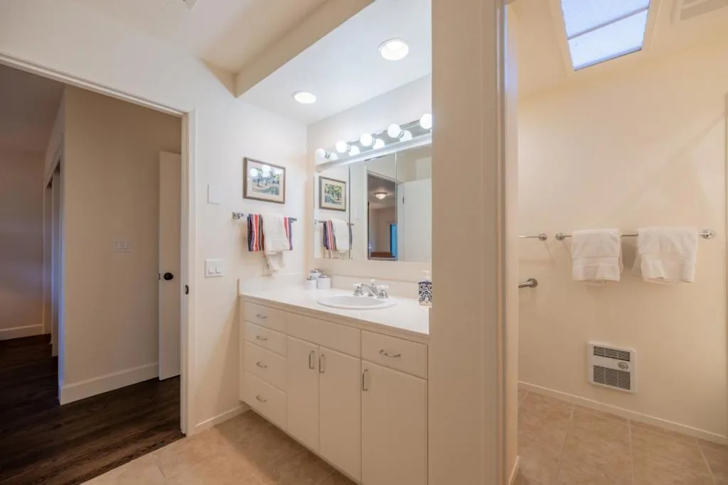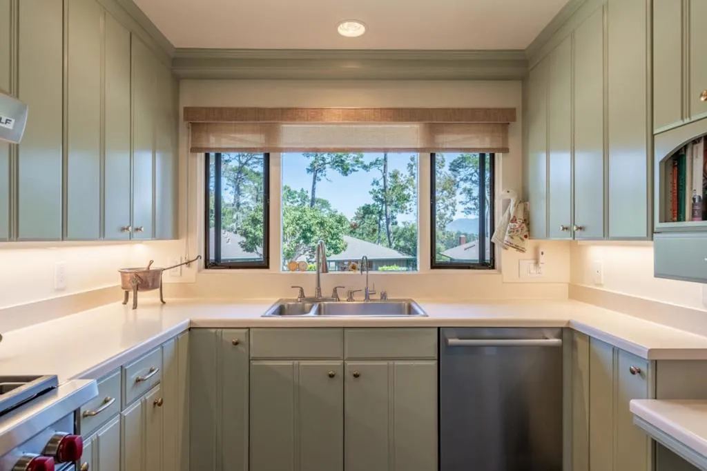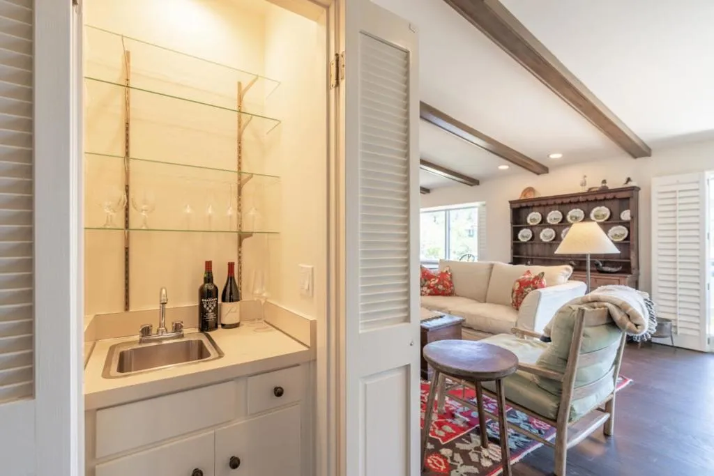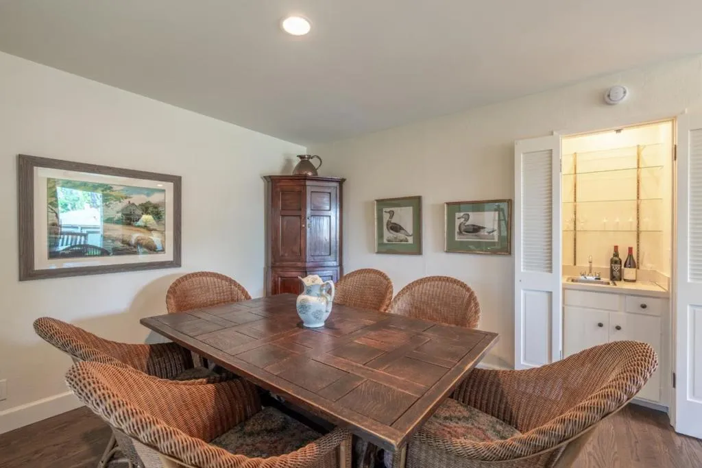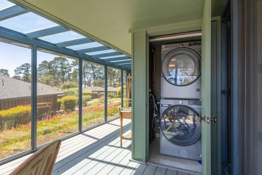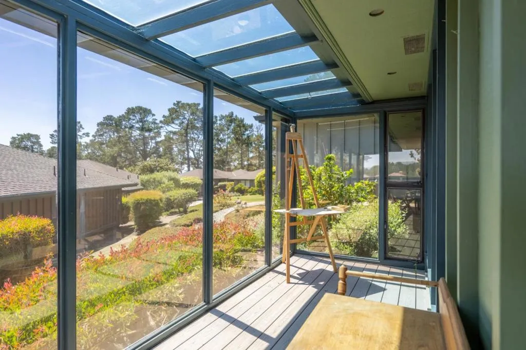 Tucked within the sought-after Del Mesa Carmel community, this south-facing 2-bedroom, 2-bath residence offers a warm blend of comfort and convenience in a serene setting. Thoughtfully updated, the home features new hardwood floors, fresh kitchen cabinetry, new appliances, and beautifully refinished exposed beams that add character to the living space. A gas-burning fireplace creates an inviting focal point, while radiant floor heating enhances everyday comfort. Natural light fills the home, with tinted windows in the dining area and primary suite providing added privacy. The mostly enclosed porch offers a versatile space to relax, read, or enjoy indoor-outdoor living year-round. Ideally positioned with parking just steps from the front door and a convenient carport, this home combines easy accessibility with low-maintenance living. Enjoy the peaceful surroundings and amenities of Del Mesa Carmel, all just moments from the charm of Carmel-by-the-Sea.