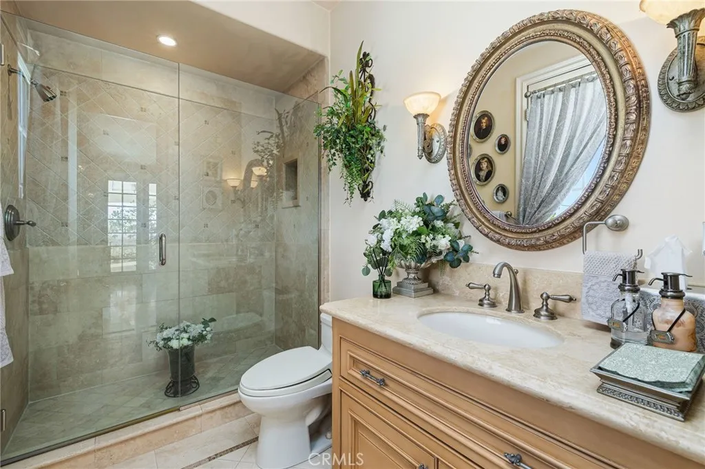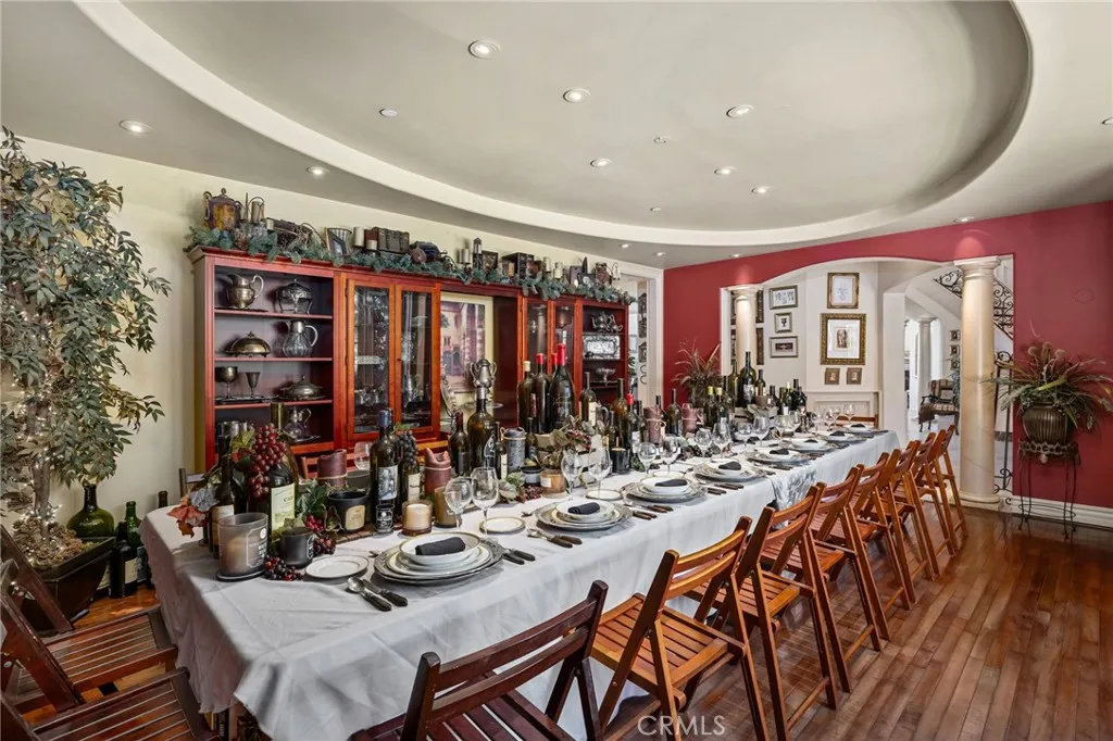 Perched atop one of the most coveted vantage points in Gordon Highlands Estates, this extraordinary custom estate is a masterclass in luxury, privacy, and timeless design. Built in 2003 and meticulously maintained by its original owners for over two decades, this residence offers an unparalleled blend of refined craftsmanship and elevated living. Spanning over 6,000 square feet on more than six acres of pristine land, the home unfolds with intention and grandeur at every turn. A thoughtfully designed floor plan features five spacious bedrooms and five bathrooms, including two elegant ensuite retreats and two additional bedrooms connected by a well-appointed Jack-and-Jill bath. A sophisticated private office provides the ideal work-from-home sanctuary, while multiple formal living spaces create a seamless balance of comfort and entertaining. At the heart of the home lies a gourmet kitchen designed to impress—featuring premium Viking appliances, an expansive center island, and impeccable finishes that cater to both intimate gatherings and large-scale hosting. Adjacent living areas are enhanced by a whole-home audio system throughout the main level and a programmable Lutron lighting system, allowing you to curate ambiance with ease. A custom bar further elevates the home’s entertainment experience. Outdoors, the estate transforms into a private resort. A sweeping driveway leads to a three-car garage and opens to meticulously curated landscaping. The expansive grounds showcase a stunning custom pool and spa, perfectly positioned to capture breathtaking 180-degree panoramic views stretching to Downtown Los Angeles. Whether enjoying serene sunsets or hosting unforgettable evenings, the setting is nothing short of spectacular. Adding a rare and distinguished touch, the property features a fully functional 349-vine vineyard, an exquisite nod to wine country living, right at home. Located within the prestigious, guard-gated enclave of Gordon Highlands Estates, this residence offers 24-hour security, exclusivity, and a community defined by custom-built estates and premier lots. Surrounded by the natural beauty of the Glendora foothills and illuminated by sweeping city light views, this is more than a home—it is a legacy property, offering a lifestyle reserved for the most discerning buyer.