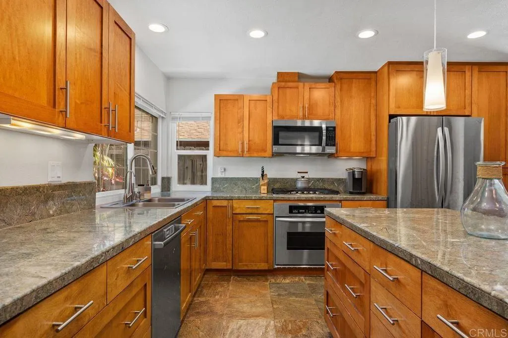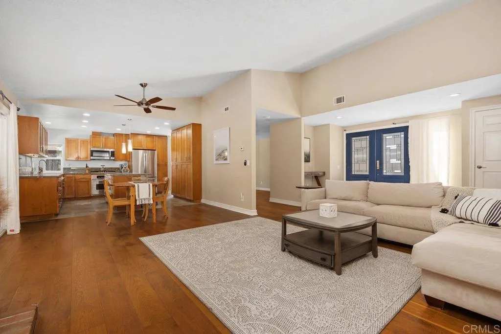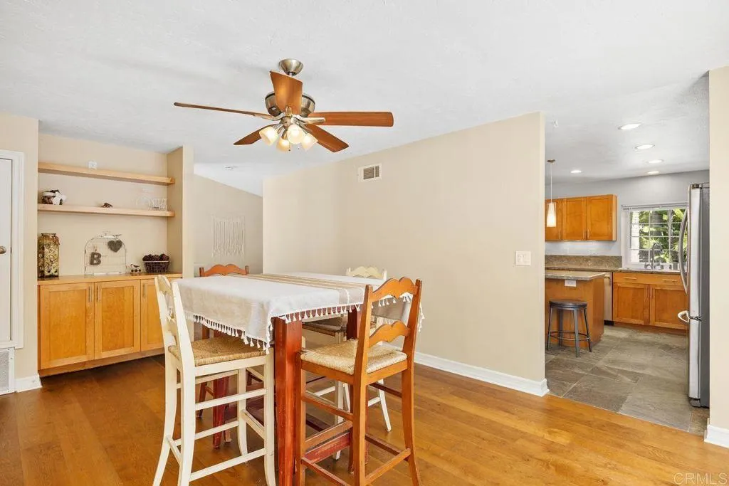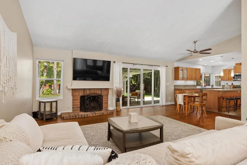 Spinnaker Hill Charmer – Single Level Living in Coastal Carlsbad Opportunity truly knocks with this beautifully maintained single-story home in the highly desirable Spinnaker Hill community of Carlsbad—offering the best value in the area. This is the one buyers have been waiting for. Appreciate the inviting curb appeal and quiet, established neighborhood setting. Step inside to a light-filled, open-concept floor plan where warm hardwood floors flow throughout the main living spaces. The spacious living room is anchored by a cozy brick fireplace and seamlessly connects to the dining area and upgraded kitchen—perfect for everyday living and entertaining alike. The kitchen features rich wood cabinetry, granite countertops, stainless steel appliances, and a functional layout that opens to the heart of the home. Large sliding doors lead you to a private backyard retreat, complete with a covered patio ideal for outdoor dining, relaxing, or hosting gatherings year-round. The expansive yard offers plenty of space for play, pets, or even future customization—truly a rare find in this price point. The home continues to impress with well-sized bedrooms, updated bathrooms, and thoughtful touches throughout, creating a move-in-ready opportunity with room to personalize. Located just minutes from top-rated Carlsbad schools, beaches, shopping, dining, and easy freeway access, this home offers the perfect blend of coastal lifestyle and everyday convenience. Single level homes in this location and price range are hard to come by—don’t miss your chance. Schedule your private showing today before it’s gone.