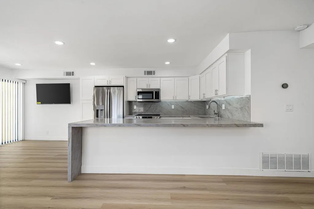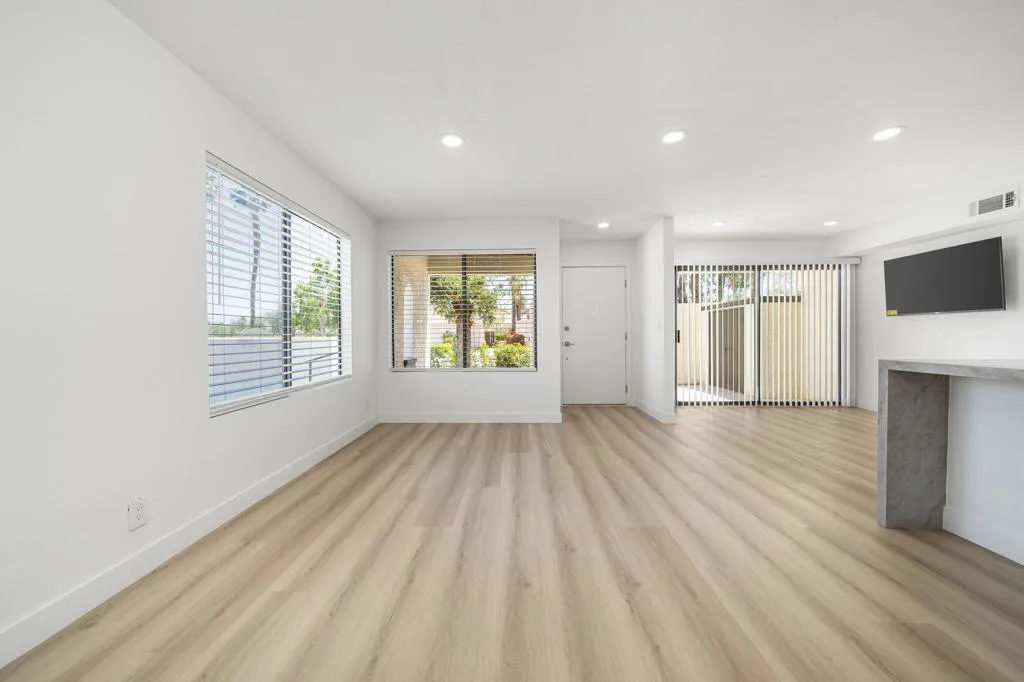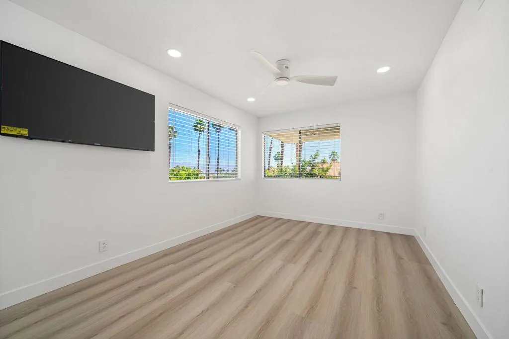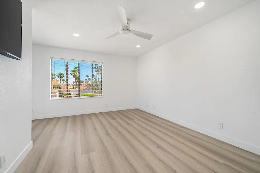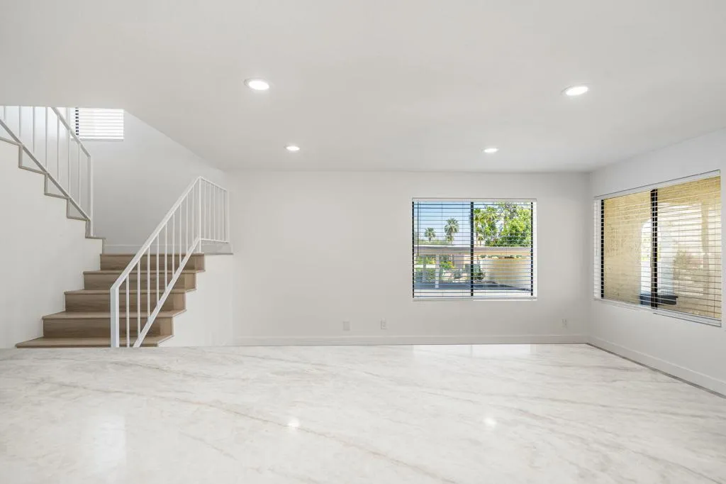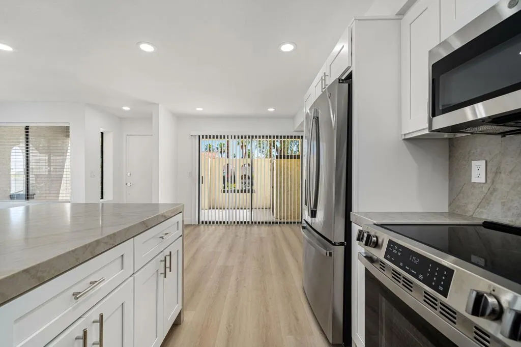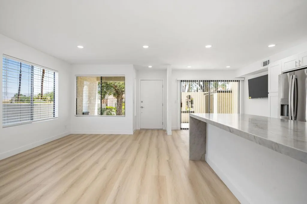 Located in the desirable Sandroc community in Palm Desert, this beautifully remodeled 1,250 sq. ft. condo offers 2 bedrooms and 3 bathrooms in an unbeatable location just steps from the renowned El Paseo Drive--home to premier shopping, dining, and cultural attractions. Recently transformed from top to bottom, this residence features a modern open-concept design with walls removed to create a bright, spacious flow. The stylish kitchen showcases chic contemporary quartz countertops, complemented by all-new appliances, while upgrades throughout include new toilets, ceiling fans, LED lights, LVP flooring, Nest thermostat, chrome door handles, vertical blinds, soft close cabinets, 3 wall mounted TV's, fresh paint, and a tankless water heater. A brand-new washer and dryer add everyday convenience. Enjoy low HOA dues along with access to community amenities including a pool and tennis courts. Perfect for full-time residency or as an exceptional investment opportunity, this property allows short-term rentals--giving you the ability to capitalize on high-demand events such as the Coachella Fest, Stagecoach, Empire Polo grounds, and the famous BNP Paribas tennis Open, along with countless other popular desert activities & seasonal attractions. Offered unfurnished, this totally remodeled condo is ready for you to make it your own while enjoying all that Palm Desert has to offer.