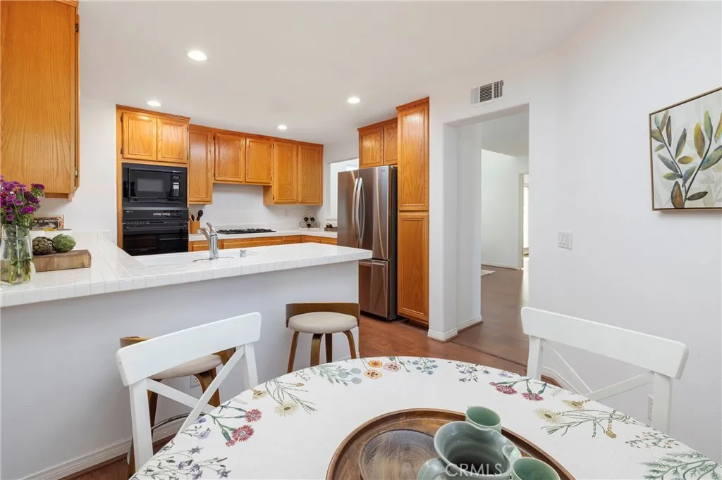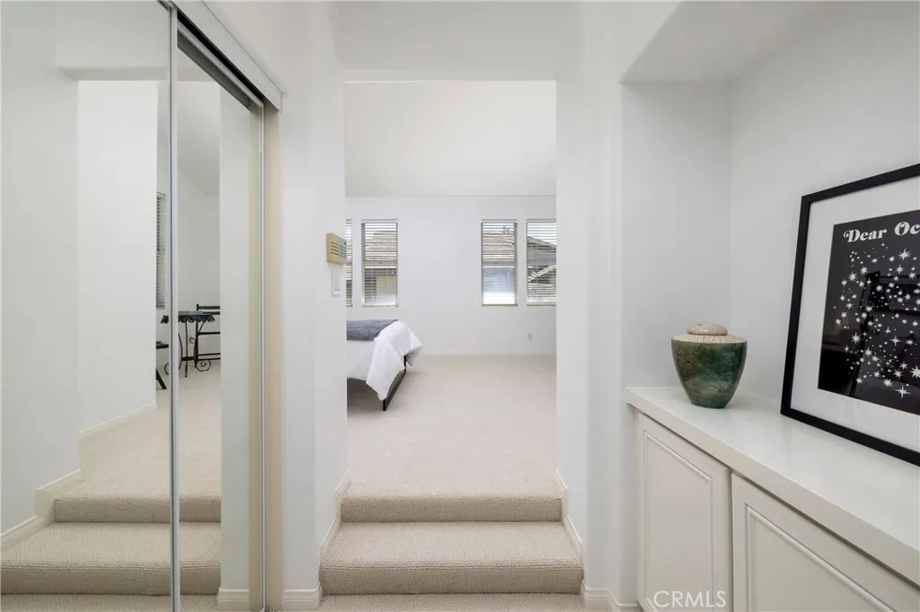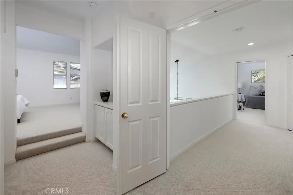 Stunning 3-bedroom, 3-bathroom Townhome offering 1,900 sq.ft of living space located within the gated enclave of Cameray Pointe - in the Community of Bear Brand. This beautiful residence has been thoughtfully updated throughout featuring 2 story ceilings framed by floor to ceiling windows in the dining room with a contemporary lighting fixture. Discover versatile options: - office or game room - with the desirable downstairs bedroom with French doors leading to the private back patio complete with a custom wood screen door. The kitchen has a breakfast area and bar with a newer stainless steel dishwasher and LG refrigerator. The living room has a cozy fireplace with a French door that opens to the patio and surrounding greenbelt - adding an extra level of privacy - secluded in the back corner of the cul-de-sac. Upstairs offers two bedrooms with an open landing/hallway. - providing convenience with the laundry area/closet upstairs. The Primary suite is a show stopper with a double door entrance, large mirrored walk-in closet and a separate linen closet. The bedroom suite has high ceilings and plenty of light and windows - even a peek-a-boo ocean view on a clear day. The newly remodeled en-suite bathroom has dual separate vanities with stone countertops, contemporary mirrors, a separate walk-in shower and soaking tub. Marble style waterproof vinyl flooring and a new Toto toilet. The secondary en-suite bedroom and bath have been refreshed with new paint, carpet and Marble style vinyl flooring. Additional highlights include a 2-car attached garage, cul-de-sac location with guest parking and close proximity to the pool and spa. Minutes to Ocean Ranch Shopping Center and a short distance to world class beaches, resorts and Dana Point Harbor.