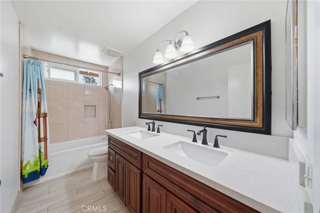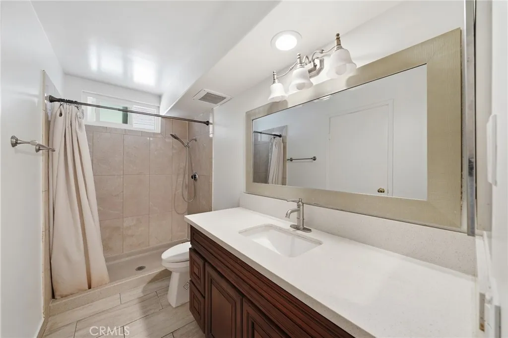 Bright and well-maintained home featuring an open living area filled with natural light, one bedroom on the main floor, and four spacious bedrooms upstairs. The upgraded kitchen offers granite countertops, a breakfast bar, and ample cabinetry, flowing into an enclosed patio—perfect for everyday living and entertaining. Updated bathrooms, laminate flooring in bedrooms, tile flooring in main areas, central A/C and heat, dual-pane windows, and a private backyard with covered patio complete this home. Conveniently located near top-rated schools, parks, Cerritos Town Center, and easy access to the 91 freeway—don’t miss this great place to call home.