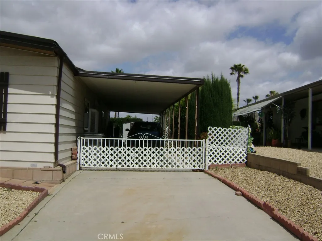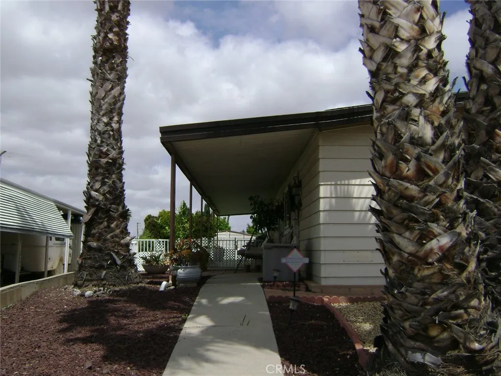 This well-maintained home offers a comfortable and functional layout, enhanced by numerous thoughtful upgraded ideas by the seller over the past few years. Ceiling fans in both bedrooms, the family room and dining area. Also a window evaporative air cooler that provides added comfort and energy efficiency throughout the home. The spacious primary room serves as a relaxing retreat, featuring a separate shower and jetted soaking tub, a large vanity cabinet with a single sink, and abundant drawer space for storage, also a linen closet. The guest bedroom is generously sized with a large closet too and access to a full bathroom with a shower/tub combination, ample counter space, and plenty of cabinetry. The bright spacious dining and living room is filled with natural light from three large double-pane windows.The roomy kitchen has been tastefully updated with a newer cooktop, sink faucet, and a butcher block top island that adds both style and functionality. Additional storage is provided with 3 drawers and cleverly designed pull-out spice rack that enhances organization while subtly defining the space between the kitchen and family room. Step outside to enjoy the covered front patio/porch and beautifully landscaped flower bed that creates a warm and inviting entrance. The backyard is designed for easy maintenance and entertaining, featuring a barbecue area, artificial turf, and concrete grounds wrap around the home to a paved, covered carport for 2 cars and gated with a large storage shed providing extra storage space. With all the convenience, comfort and upgrades, shows a true sign of pride of ownership in this turnkey home! Be sure to check out the HOA amenties in this community!
