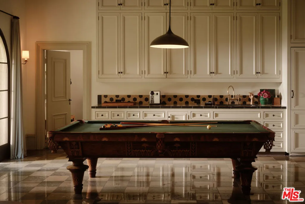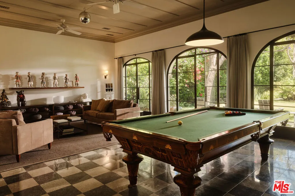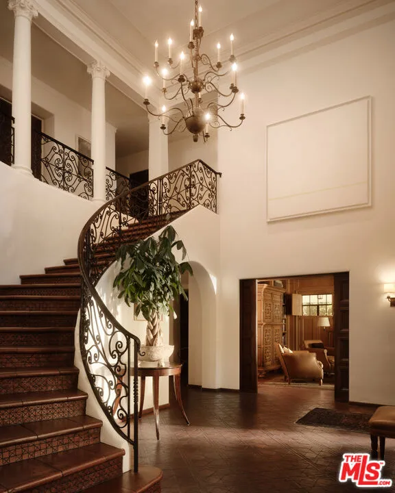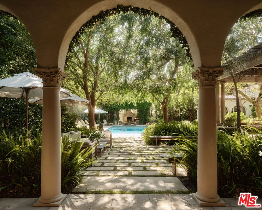 Set on one of the most coveted blocks in Beverly Hills, this stately Mediterranean estate is a true reminiscence of the great estates of Montecito - an extraordinary blend of timeless architecture, grand scale, and complete privacy. Thoughtfully and extensively remodeled, the residence preserves its original warmth and exceptional architectural character while seamlessly incorporating every modern luxury. A dramatic two-story entry with a sweeping staircase sets the tone for the home's elegant interiors. Grand public rooms include a magnificent living room with soaring beamed ceilings, a stunning paneled family room, spectacular formal dining room, gourmet chef's kitchen with breakfast area, richly detailed paneled library, private office, theater, gym, and elevator. The main house offers 4 beautifully appointed bedroom suites upstairs plus separate office & staff suite on lower level, in addition to a separate detached guest house. The extraordinary primary suite is a private retreat featuring a sitting room, expansive patio, dual bathrooms, and closets. The lush, resort-like grounds are truly exceptional, with expansive lawns, multiple outdoor dining and entertaining terraces, intimate sitting areas with an outdoor fireplace, and a spectacular swimming pool surrounded by mature landscaping. Completely private and beautifully secluded, this is a rare opportunity to own one of Beverly Hills' most distinguished Mediterranean estates.