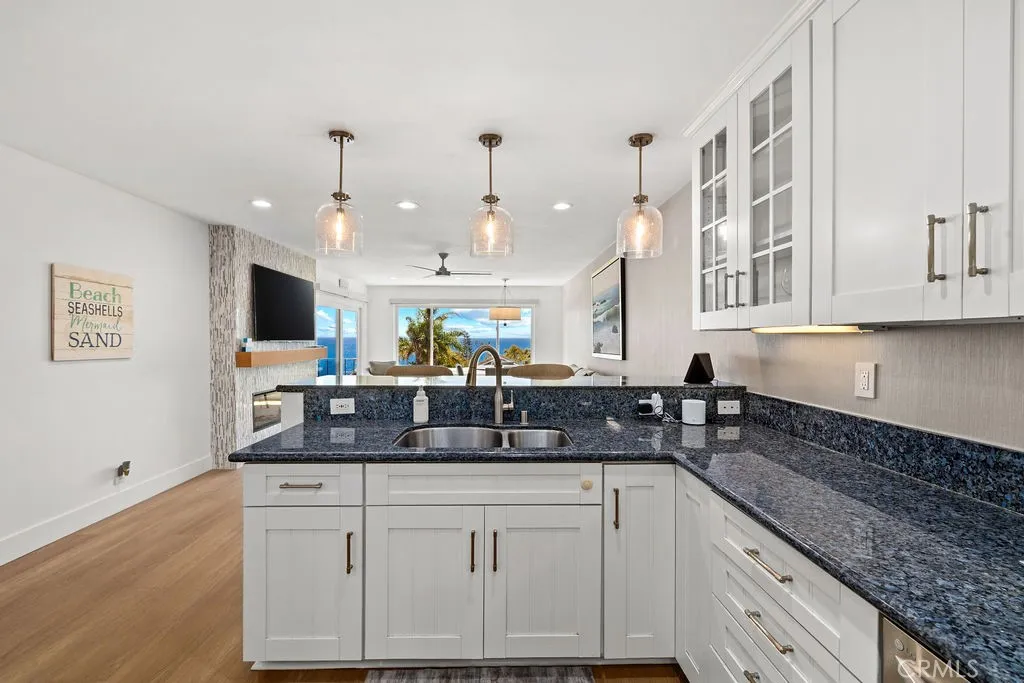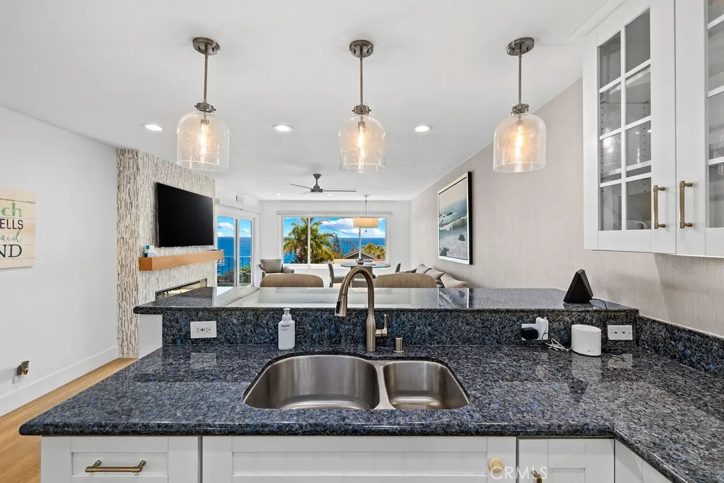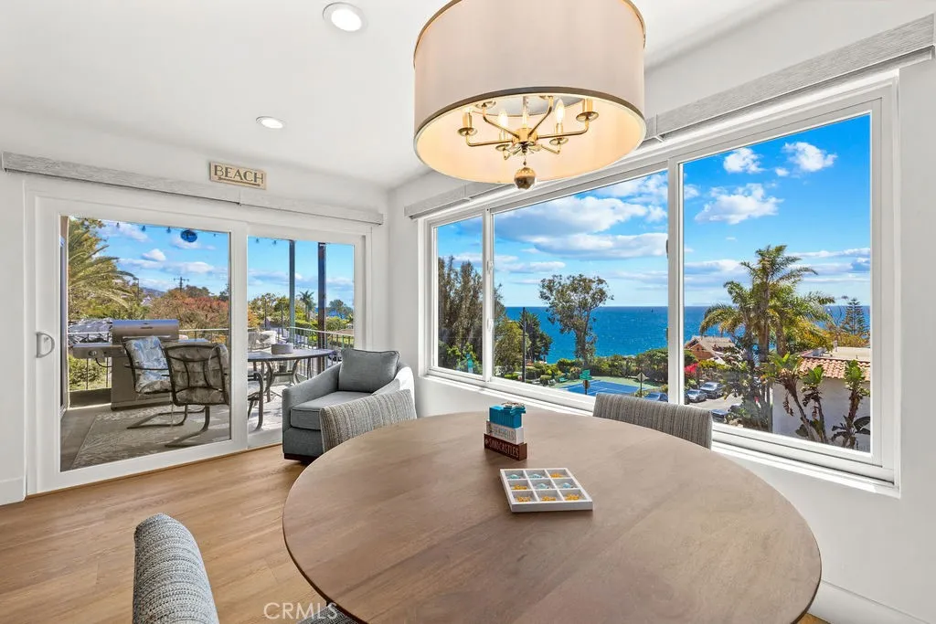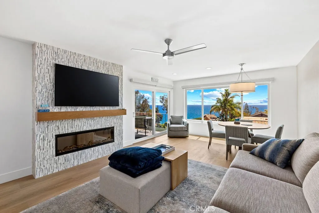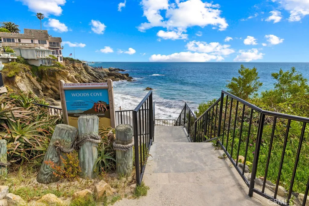 Quintessential beach getaway ideally located directly across from stunning Woods Cove Beach. From the moment you step inside this gorgeous beach condo, you are welcomed by panoramic ocean views. Enjoy breathtaking ocean, sunset, and Catalina Island vistas from the main living area, entertaining deck, and spacious primary bedroom suite. Fully remodeled and beautifully furnished, this turnkey home is ready for your dream beach getaway or vacation retreat. Simply unpack your bags and enjoy the ultimate in beachside living. The updated kitchen features granite countertops, while luxury vinyl plank flooring flows throughout the home. The inviting living room is centered around a stunning fireplace, creating a warm and stylish focal point. Both bathrooms have been tastefully remodeled with a walk-in marble shower, quartz countertops, and ample storage. Designer furnishings are showcased throughout the home, reflecting thoughtful attention to detail at every turn. Laguna Beach Village and the incredible Laguna Beach lifestyle awaits.Enjoy world famous beaches and vistas. Hop on the free Laguna Beach trolley..... just moments from downtown Laguna Beach shopping, dining, renown art galleries this exceptional coastal retreat offers the very best of coastal living.
