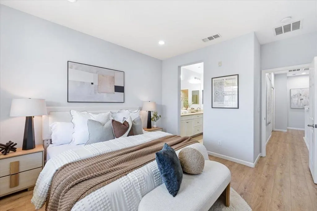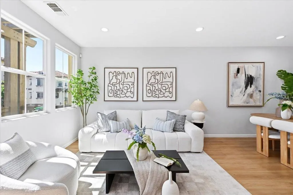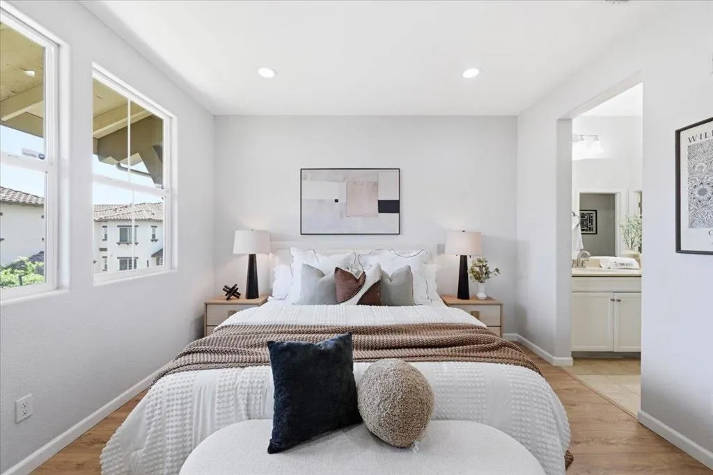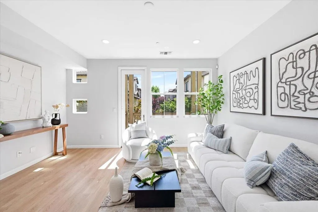 Bright, private, and rare 4 bed / 4 bath townhome with open greenbelt views and no direct front-facing neighbors. Ideally positioned in one of the best locations within the community, this home is filled with natural light and offers a peaceful, open setting that is hard to find in townhome living. The flexible 4-bedroom, 4-bath layout is designed for modern living, featuring a full bedroom and bathroom on the first floor perfect for guests, a home office, or multi-generational needs. The thoughtful layout provides both comfort and privacy across all levels. Located in a well-maintained community with landscaped green spaces, playgrounds, and guest parking, this home also offers everyday convenience just minutes away. Enjoy easy access to Costco, 99 Ranch, H-Mart, Sprouts, restaurants, and major commute routes to key Silicon Valley employers. A rare combination of natural light, privacy, functional layout, low HOA, and prime South Bay location a home that truly stands out in todays market.