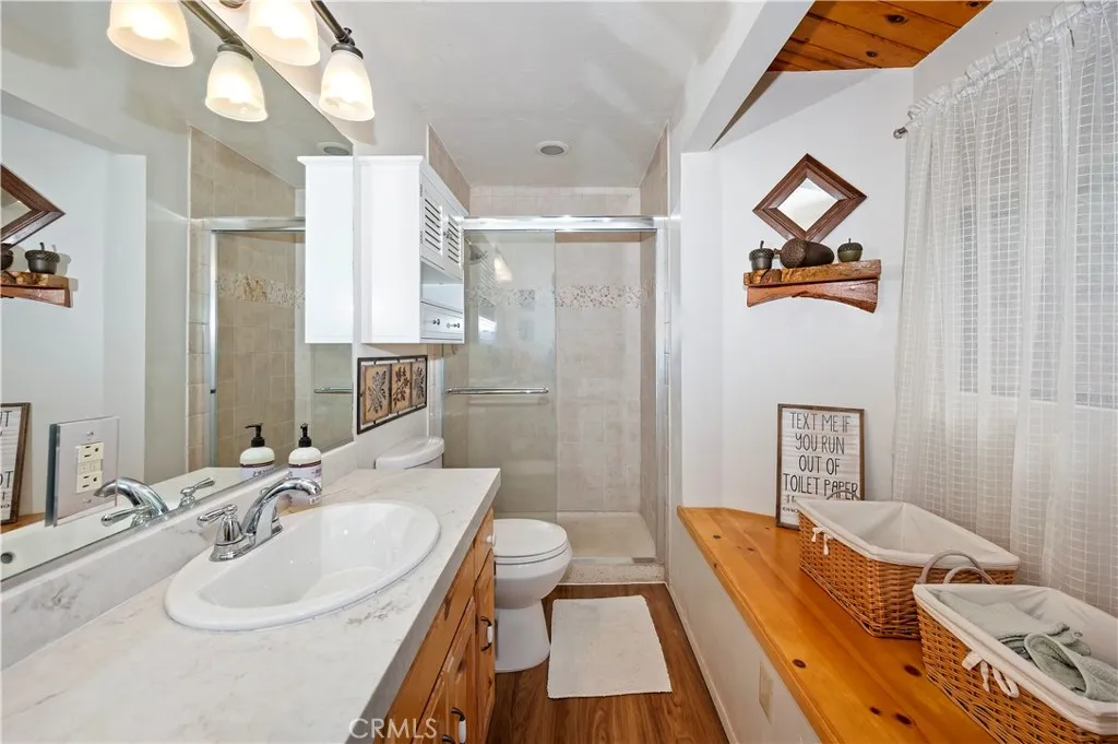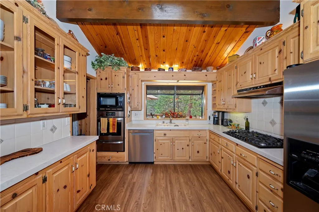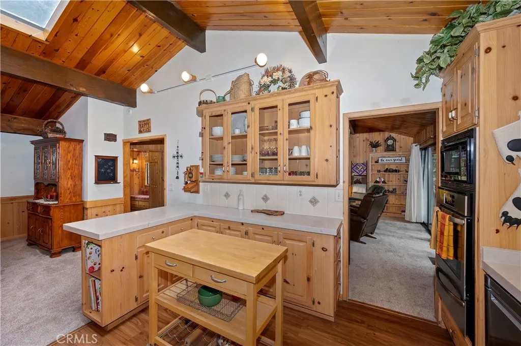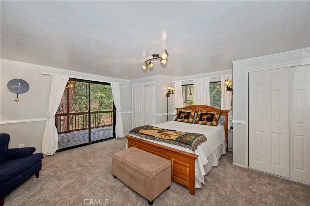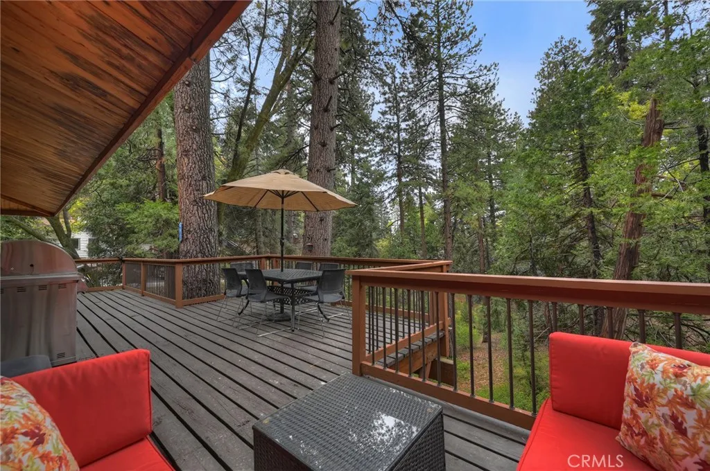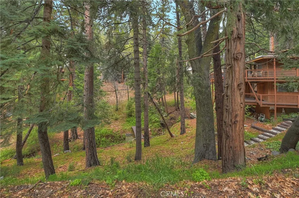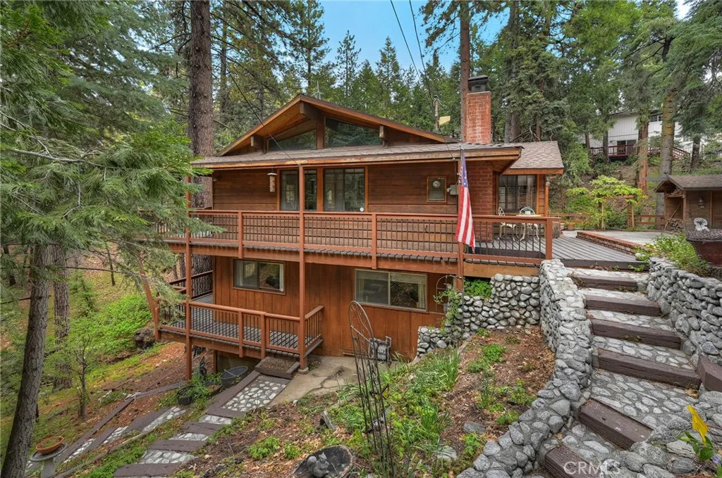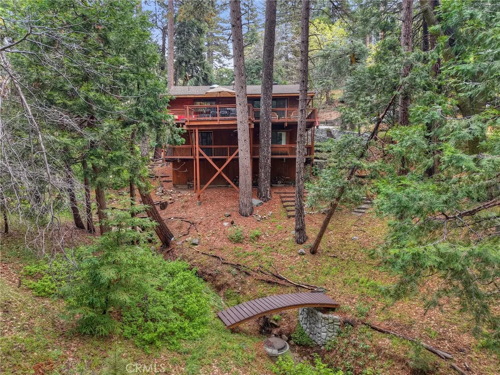 Welcome to your mountain retreat in the heart of Running Springs! Situated on a generous 16,500 SF lot along the scenic Rim of the World Drive, this 3BR/3BA home offers 1,677 SF of comfortable living space surrounded by a serene, park-like setting. Step inside to warm and inviting interiors featuring beautiful tongue and groove knotty pine ceilings that perfectly capture the charm of mountain living. The spacious layout provides room to relax or entertain, while large windows and skylights invite in natural light and peaceful forest views. A convenient mud room adds everyday functionality. Recent upgrades enhance both comfort and value, including a new oven, stove, dishwasher, countertops, carpet, furnace, and updated deck railing, offering peace of mind and modern convenience while maintaining the home’s rustic appeal. Enjoy the ease of level entry and rare level parking for up to four cars, an exceptional feature in the mountains. The expansive lot creates a tranquil outdoor environment with towering trees, a seasonal creek and plenty of space to unwind, entertain, or simply take in the fresh alpine air. Whether you're looking for a full-time residence, weekend getaway, or investment opportunity, this property combines accessibility, character, and natural beauty in one ideal package.