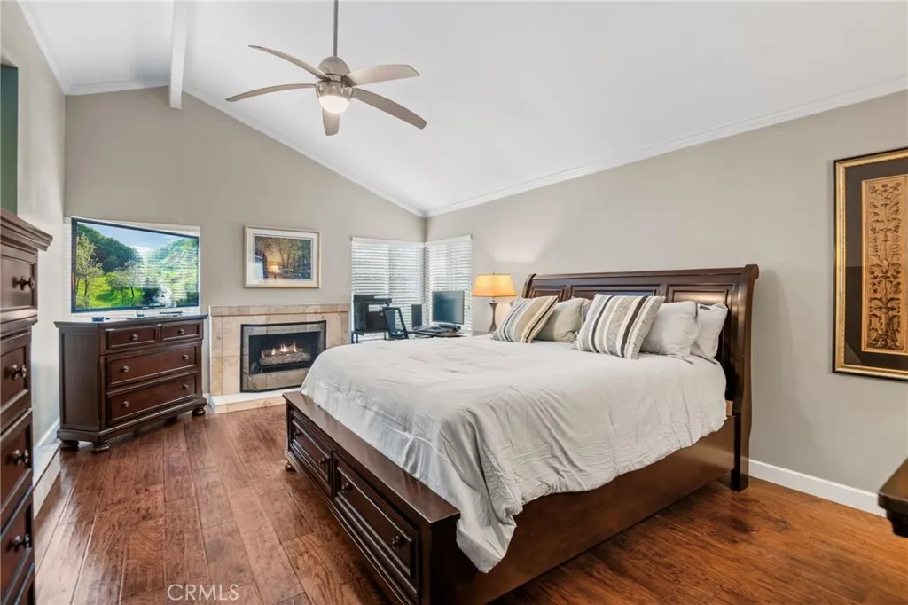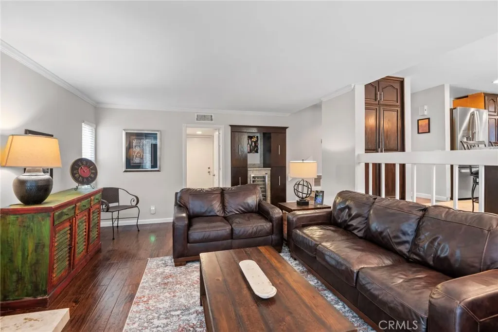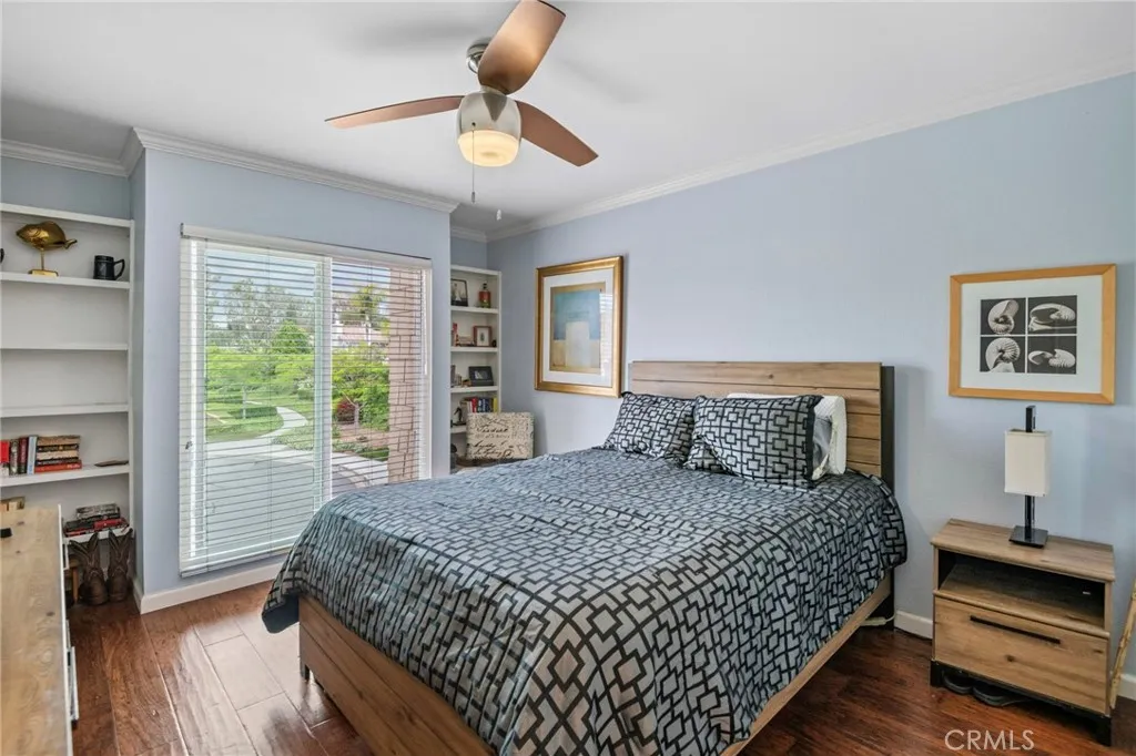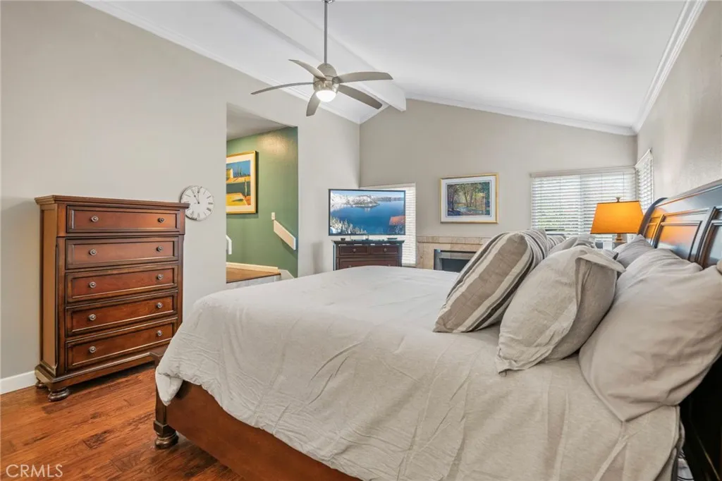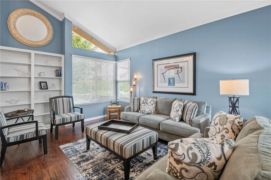 Located at the end of a cul-de-sac and sides to a greenbelt, this beautifully updated 4-bedroom home is nestled in the highly sought-after neighborhood of Woodside 1. This stunning residence features rich hardwood flooring throughout, creating a warm and cohesive living space. The remodeled kitchen is complete with a large center island, granite countertops stainless steel appliances, a convenient pot and pan drawer, and a spacious pantry-perfect for both everyday living and entertaining. The inviting family room offers a cozy fireplace, a built-in wine bar with ample storage, and sliding glass door that opens to a charming backyard. Upstairs you will find four generously sized bedrooms, including a spacious primary suite with a luxurious en-suite featuring dual sinks, a soaking tub, a separate walk-in shower, and a large walk-in closet. Additional highlights include solar, ceiling fans, crown molding, and a beautifully designed backyard with brick accents and a durable Trex deck, ideal for outdoor gatherings and relaxation. Close to Darrin Park, freeways, toll road, schools, shopping and the Lake Forest Sports Park.