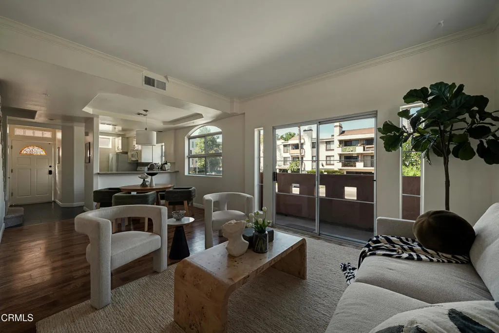 Built in 1990 and tucked inside a boutique complex of only six units, this front Studio City townhouse is designed for the creative professional, the studio executive, the content producer, or the first-time buyer who wants to live where they work and play. If your lifestyle includes call times, editing sessions, auditions, pitch meetings, and spontaneous Ventura Boulevard dinners, this is your kind of address. Gated, low-maintenance, and easy to lock and leave, it's ideal for someone who travels, works in entertainment, or simply wants a smaller, more curated living experience without the chaos of a large complex. When it comes to location, you're positioned exactly where industry insiders want to be. Just minutes from Warner Bros. Studios, Walt Disney Studios, ABC, Radford Studio Center, and Universal Studios, you can make that last-minute dash to set without crossing the entire city. East-west access keeps you connected while still feeling tucked just off the buzz. Beyond the studios, this is Studio City living at its best. Ventura Boulevard is right there for coffee runs, late-night sushi, boutique shopping, weekend brunch, and the local farmers market. You've got nearby hiking trails in Fryman Canyon for your reset days, golf and tennis clubs close by, and a neighborhood energy that feels creative but grounded. As a front unit, this townhouse brings in extra light and openness, plus an additional balcony alongside the rooftop deck and a small balcony off the kitchen. Morning coffee upstairs. Sunset hangs with friends. Quiet solo evenings under the stars. Fresh paint and new carpet keep everything crisp, and the layout flows in a way that feels bigger than expected. Only six units means limited foot traffic and a more intimate environment. Gated subterranean parking keeps things secure and simple. There's even a small private yard area at the rear of the complex, perfect for a quick dog break without committing to a full neighborhood lap. Washer and dryer in unit. Privacy when you want it. Nightlife when you don't. For the creative who wants proximity to the action without living in the middle of it, this Studio City townhouse hits the balance just right.