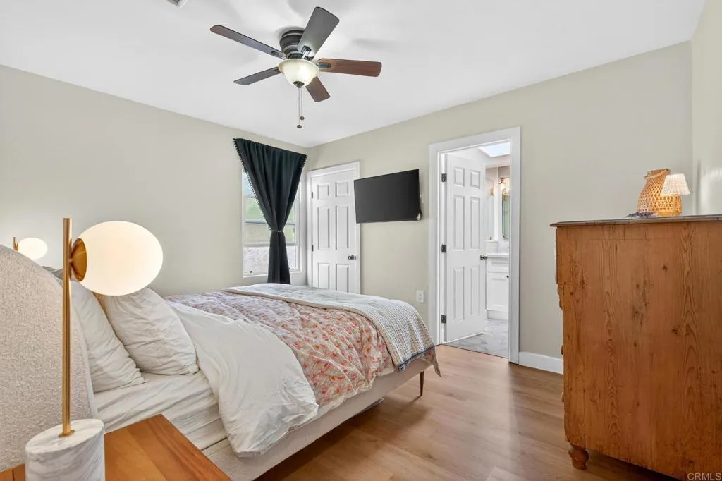 Welcome to 4038 Marian Street, a beautifully remodeled La Mesa home offering modern finishes, major system upgrades, and a generous 6,534-square-foot lot designed for easy indoor-outdoor living. This move-in-ready 4-bedroom, 2-bath home features 1,401 square feet of bright, open living space with new laminate flooring, fresh interior paint, updated vinyl windows, an indoor laundry room, and a stylish kitchen with quartz countertops, white shaker cabinetry, stainless-steel appliances, gas cooking, and a floor-to-ceiling pantry. Both bathrooms have been thoughtfully updated with quartz counters, modern lighting, and clean, contemporary finishes. Out back, the fully fenced and terraced yard is a true standout — a thriving, well-loved orchard with cherry, peach, avocado, mango, lemon, and grapefruit trees, plus low-maintenance landscaping, elevated outdoor space, a spacious deck, and room to relax, entertain, garden, or explore future flexibility. The detached 2-car garage with alley access creates excellent functionality and possible ADU potential, adding appeal for buyers seeking extra workspace, guest space, or long-term value. The big-ticket systems are already done: solar that will be paid off at closing, a brand-new central AC, a brand-new ABS main sewer line, and fully replaced cast iron drain piping under the house. Add a children’s park just two blocks away, plus convenient access to shopping, dining, fitness, and major freeways, and this turnkey La Mesa home is ready to impress.