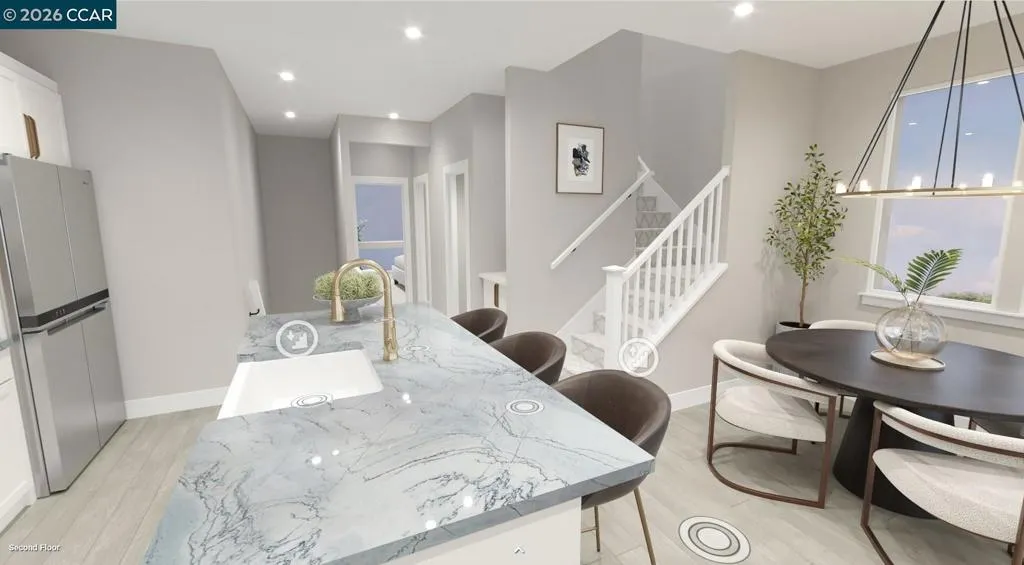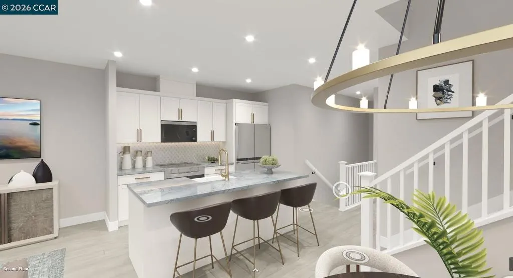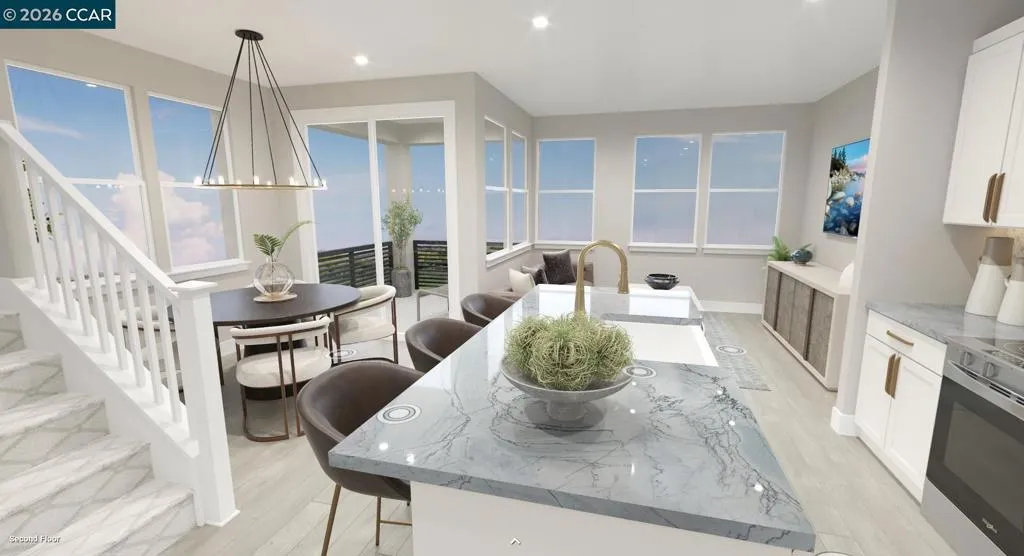 Find your new luxury home at South Main, an exclusive all-electric community of new townhomes in Milpitas. This corner unit home blends comfort and style across three thoughtfully designed levels. The entry leads to a spacious first-floor flex room. Second floor, open-concept main living area connects the great room, kitchen, and casual dining space. Kitchen features a center island, stainless steel appliances, walk-in pantry, while sliding doors open to a covered deck—ideal for outdoor dining or entertaining. Secondary bedroom with access to a full hall bath offers a welcoming space for guests or family. Upstairs, the private primary suite includes a generous walk-in closet and a spa-like bath with dual-sink vanity, a shower with seat, and a private water closet, covered deck extends the suite outdoors. Secondary bedroom with a private bath. Intimate enclave boasts a community park with tot lot, picnic areas. Its central location provides walkability to world-class shopping, dining, recreation such as Great Mall, Big Dog Vineyards, and Hidden Lake Park. Near the new Milpitas Transit Center featuring BART / VTA and convenient access to highways 680 / 880 / 237. Designer upgrades can still be selected. Customize this home today! ( photos not of actual home, for marketing only)