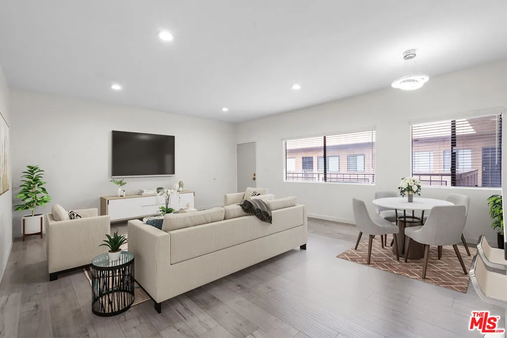 Welcome to The Westmoreland Chateau, ideally located in the heart of Korea-town. This Top-floor, South-facing 2-bedroom, 2-bathroom residence offers abundant natural light throughout the day along with added privacy and a quiet living environment rarely found in the area. Fully remodeled from top to bottom, the unit features elegant wood flooring, recessed lighting, and beautifully upgraded kitchen and bathrooms, making it completely move-in ready. The spacious open-concept layout seamlessly connects the living, dining, and kitchen areas, creating a bright and inviting atmosphere perfect for both daily living and entertaining. The renovated kitchen is equipped with stainless steel appliances, ample cabinetry, and generous counter space. The two bedrooms are thoughtfully positioned on opposite sides of the unit, each with access to a full bathroom, providing optimal privacy and functionality. Additional highlights include tandem parking, a rare private storage room (approx. 4x5 ft), and a secure gated building with ButterflyMX intercom system for convenient smartphone access. Community amenities include a welcoming lobby, elevator, trash chute, and guest parking.Situated on a quieter street yet just moments from Korea-town's vibrant dining, shopping, and cultural scene, this home offers excellent walkability and convenience. Easy access to major freeways and nearby Metro stations along Vermont Blvd makes commuting simple. Whether you are a first-time buyer or an investor seeking a turnkey opportunity, this top-floor gem is not to be missed.