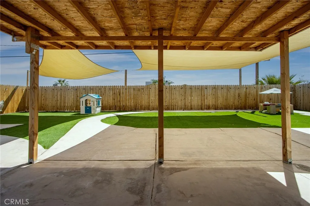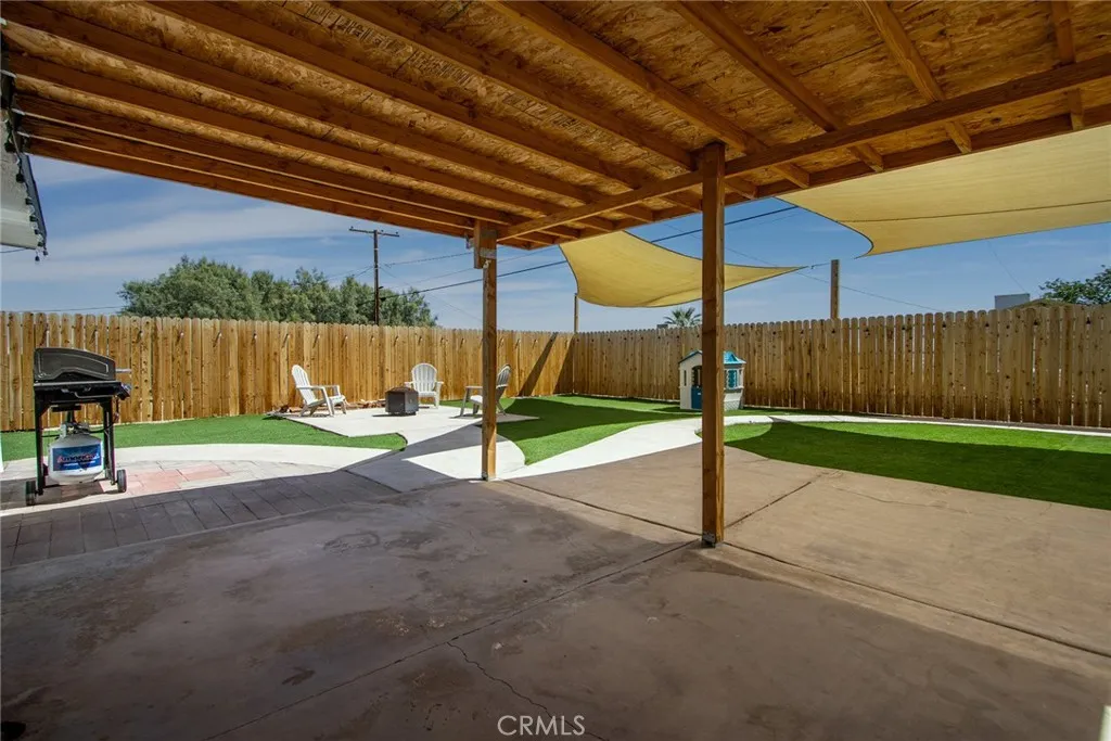 Welcome to this well-designed 3 bedroom, 2 bathroom home in 29 Palms offering 1,624 sq ft of comfortable, easy living! Inside, the open layout immediately feels inviting, with great flow between the main living spaces. The kitchen is generously sized with an abundance of cabinetry, giving you all the storage you actually need. Just beyond, you’ll find a spacious family room with sliding doors that open to the backyard, plus a flexible bonus space that can easily serve as an office, art studio, pantry, or extra storage. The bedrooms are all well-proportioned, and the primary suite stands out with its large walk-in closet and unique step-down layout. The primary bathroom has been thoughtfully updated with a brand new shower and tile surround, bringing a fresh, clean feel to the space. Recent updates throughout the home include new flooring, fresh interior paint, recessed lighting, and a new kitchen stove. Out back is where this property really shines. The yard is fully enclosed with a newer wood fence and has been upgraded with turf for a low-maintenance, clean look year-round. It’s set up perfectly for entertaining, whether that’s outdoor dining, relaxing under the desert sky, or gathering around a fire pit. Located just minutes from Joshua Tree National Park, the local farmers market, and nearby restaurants and shopping, this home offers the ideal mix of space, functionality, and location. If you’ve been looking for something move-in ready with thoughtful updates and a great backyard setup, this one is worth a look.