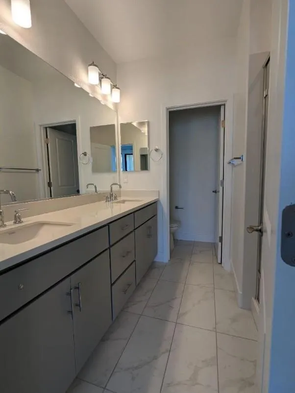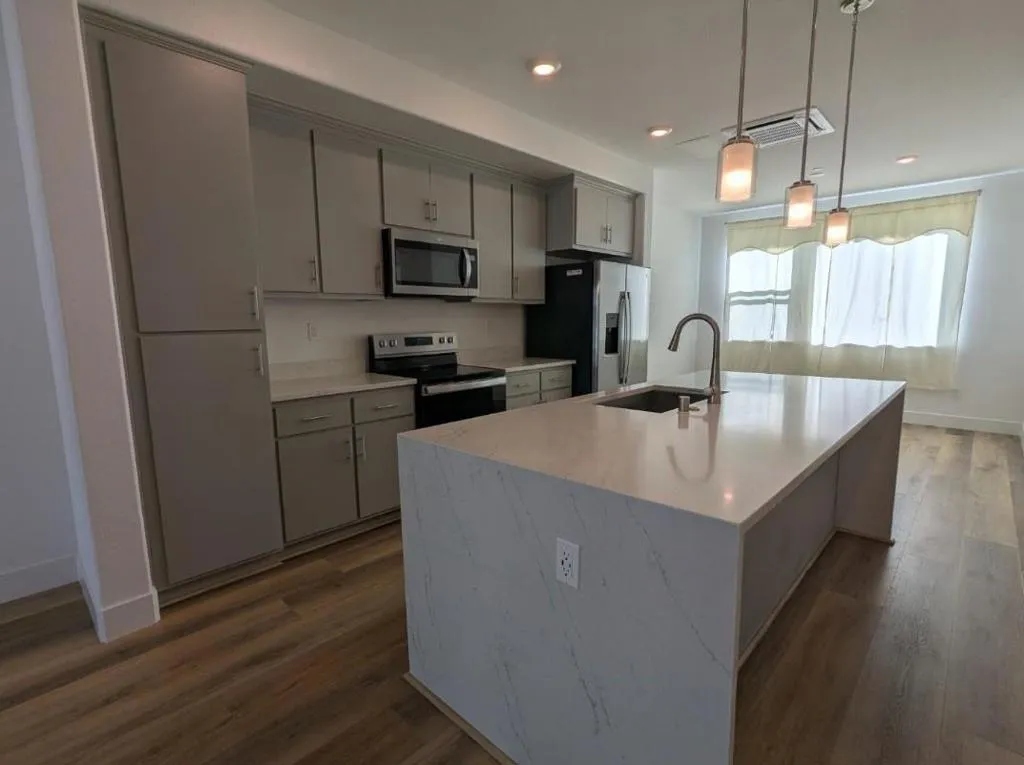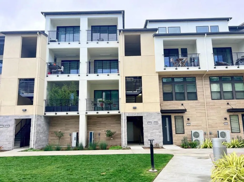 Enjoy modern living in this stylish, energy-efficient home featuring owned solar and smart home technology features designed to help keep utility costs low. The main level showcases a bright, open-concept layout centered around a sleek kitchen with stainless steel appliances, a waterfall-edge island, and convenient breakfast bar perfect for both everyday living and entertaining. Take in views of the community landscaped lawn, play area, and BBQ space from the main and upper-level balconies, or enjoy scenic outlooks of the western hills through expansive picture windows. Upstairs, two spacious bedrooms offer comfort and privacy, each with its own climate control, walk-in closet, and beautifully appointed ensuite bathroom. A washer and dryer are thoughtfully positioned between the bedrooms for added convenience. Additional highlights include a generous two-car tandem garage with extra storage space, plentiful guest parking, and access to a community garden. Ideally located just minutes from shopping, dining, and major commuter routes. Pet-friendly living.