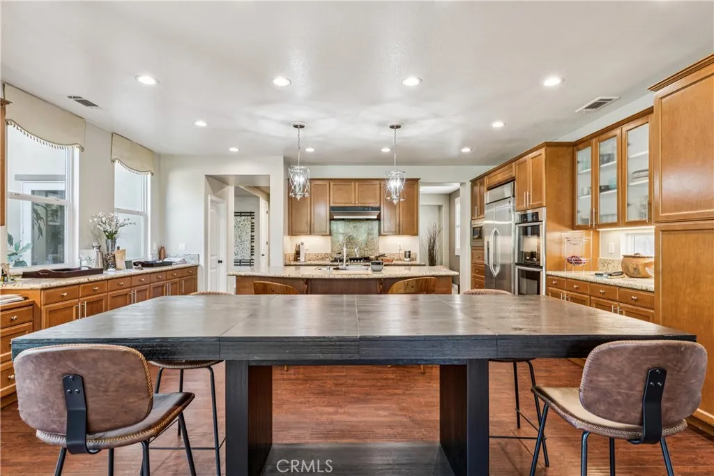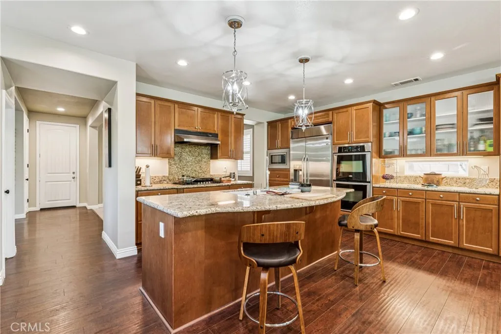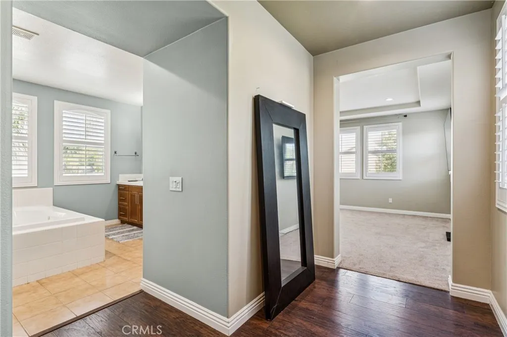 Welcome to 25507 Red Hawk Road, an exceptional residence located in the prestigious gated community of Sycamore Hills in Sycamore Creek, Corona. This expansive 5-bedroom, 3.5-bath home offers approximately 4,246 square feet of thoughtfully designed living space, blending comfort, functionality, and style. The versatile floor plan features a highly desirable downstairs bedroom, ideal for guests or multigenerational living. The heart of the home opens to generous living areas, perfect for both everyday living and entertaining. Upstairs, a spacious loft provides flexible space for a media room, playroom, or home office. This home is uniquely designed with two primary suites, offering ideal accommodations for multigenerational living or extended guests. The main primary suite serves as a private retreat with ample space and a well-appointed en-suite bath, while the secondary suite provides comfort and privacy with its own dedicated amenities. Additional bedrooms are generously sized, providing comfort and flexibility for family or guests. Step outside to a beautifully landscaped backyard designed for relaxation and outdoor enjoyment, with multiple patio areas that extend your living space. Located within a sought-after gated community, residents enjoy access to resort-style amenities, parks, and scenic surroundings, all while being conveniently close to shopping, dining, and top-rated schools. This is an exceptional opportunity to own a spacious home in one of Corona’s most desirable neighborhoods.