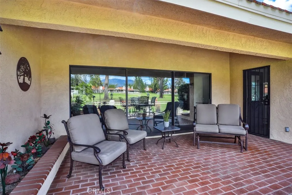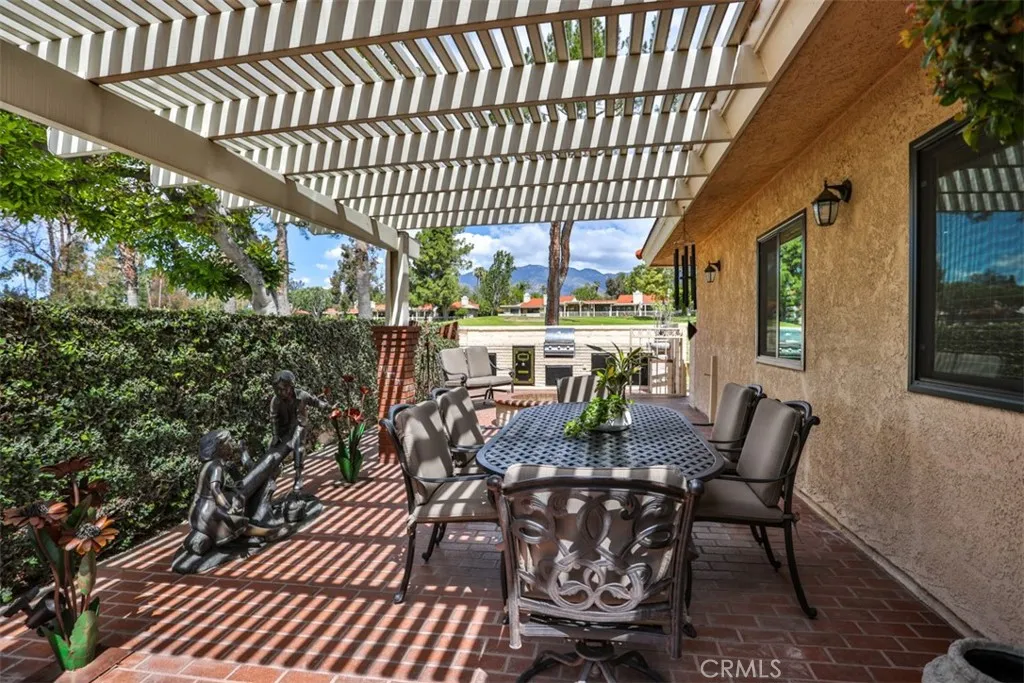 Set along the first fairway in Upland Hills Country Club, this end-unit residence opens to uninterrupted golf course and mountain views, with a position that feels notably more private. The interiors span approximately 1,994 square feet, where a thoughtful layout balances openness with defined living spaces. A remodeled kitchen with breakfast bar connects to a full dining room, while the living room anchored by a brick fireplace extends naturally to the outdoors. An oversized den, recorded as the third bedroom, offers flexibility with double doors, a closet, and skylight. The primary suite is quietly set apart, complete with a walk-in closet and a bath with soaking tub and separate shower. Another spacious bedroom, full bath completes the interior of this immaculate home. Outdoor living is integral here. A wraparound patio with built-in barbecue and fire pit sits directly along the fairway, creating a setting that feels both open and grounded. A small pond at the entry introduces the home with subtle character. End-unit placement brings in natural light and a sense of space. Enjoy resort style living in the exceptional Upland Hills Community with pools, spas, golf and club house with restaurant.