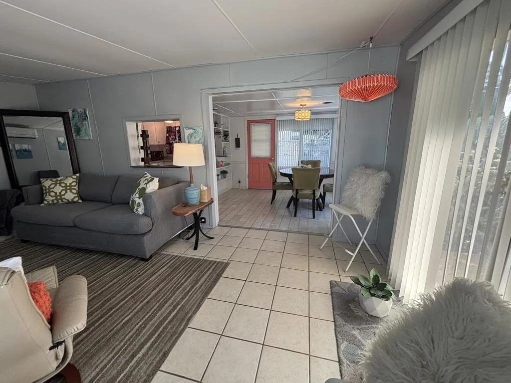 2 bedroom FURNISHED gem available now for a 12 month lease. Or Use it as your Vacation home in the Desert . Welcome to this iconic community (Blue Skies) founded as a ''Hollywood Playground'', by such greats as Jack Benny, George Burns, Bing Crosby. Eclectic 55+ gated enclave of architecturally distinct and creative Mobile/Manufactured homes. Resort style amenities adjacent to the Club house designed by renowned architect William F. Cody in his signature Mid Century Style. You will enjoy a community salt water pool, fitness area, card room/library, and billiard room. This delightful 2 bedroom, 1 full bath home offers 836 sq ft and feels much more spacious due to the vaulted ceilings and all new windows throughout that capture the sun and stunning mountain views. 2 fairly new mini splits will save utility costs. The master bedroom opens to the outside for easy access to laundry and El Fresco eating area. Ample parking carport can easily accommodate 3 cars. A smaller hidden front seating patio is perfect for your morning coffee. The interior design and decor is lively, fresh and immaculate. The owners have stocked this home with everything you should need. Ideal for long term living or a 2nd home to vacation too on your weekends. The monthly rent is Less than the monthly price of hotels and includes your Cable TV, WIFI, Water, Trash. All you pay is Electric and Nominal Gas ! This is resort style living located just minutes to shopping, dining and cultural attractions of Palm Desert and Palm Springs in an extraordinary setting. Put this one at the top of your list, there is no other community like this in our Desert ! Call us today for a private viewing !