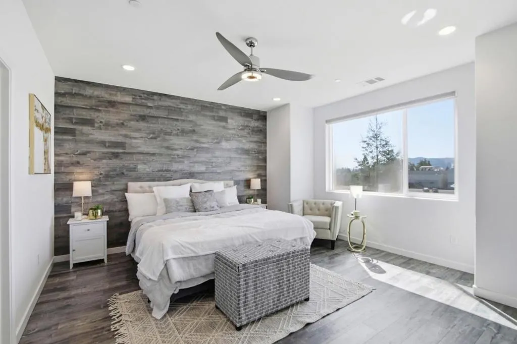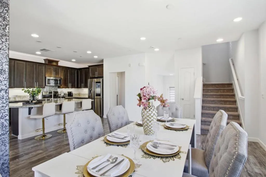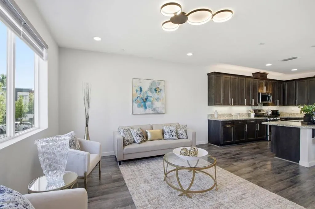 Welcome to this elegant 3-story townhome in the desirable Station 121 community, built in 2017 by Taylor Morrison. The entry level leads to a private first-floor bedroom with ensuite bathideal for guests or a home officealong with direct access to a 2-car garage. The bright living room features laminate flooring, recessed lighting, and automatic window coverings. Enjoy a rare, oversized patio that functions like a private backyardan exceptional feature for townhome living. The second floor offers an open-concept layout with a chefs kitchen showcasing quartz countertops, custom cabinetry, a large island with wine fridge, and premium Samsung appliances, plus a dining area, half bath, and spacious laundry room. The third floor includes the primary suite, full bath, and two additional bedrooms with abundant natural light. Energy-efficient with a tankless water heater, dual-pane windows, and central HVAC. Conveniently located near Village Oaks Shopping Center and Ramac Park, with easy access to Blossom Hill Caltrain Station and major highways. HOA covers exterior maintenance and common areas.