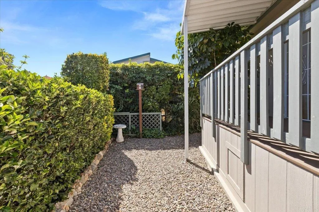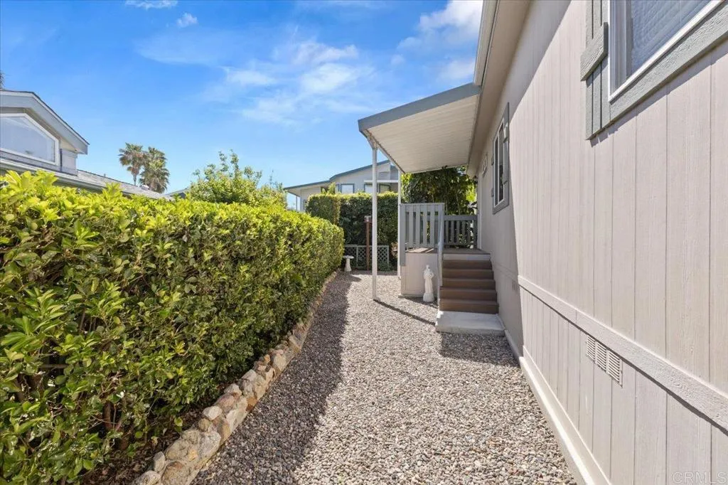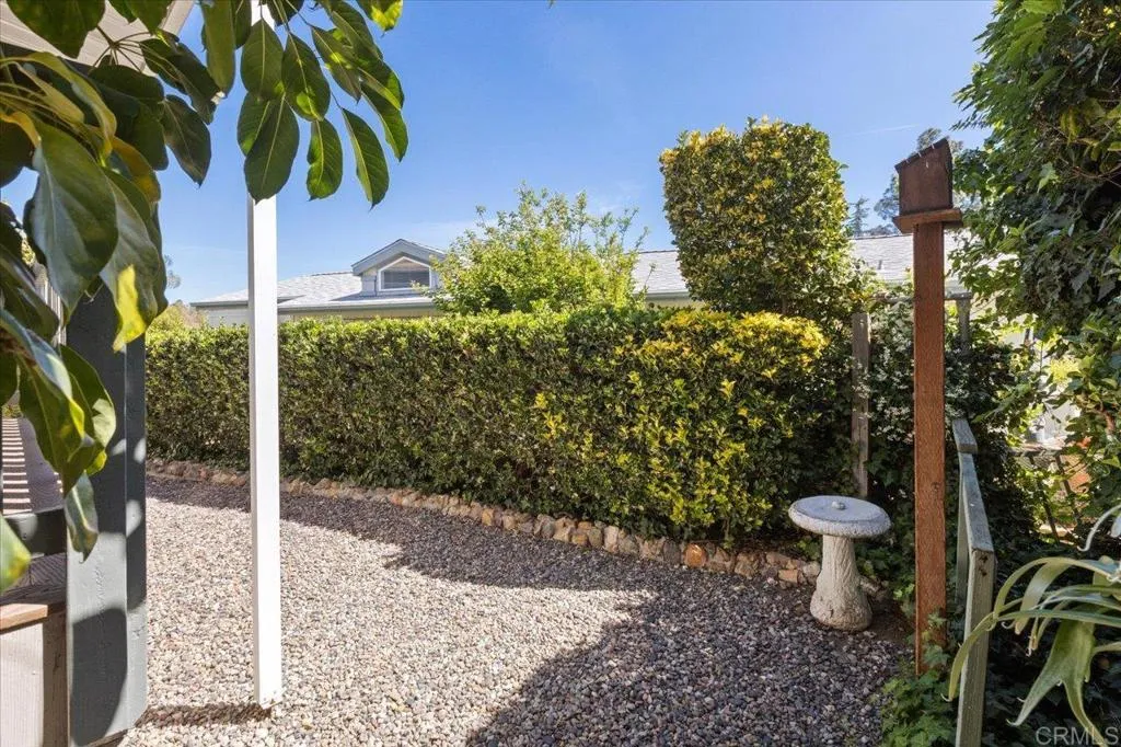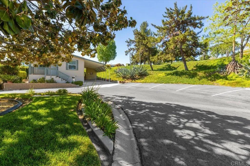 Location is the word that best describes this special property. Situated in a cul–de-sac of Rancho Escondido Senior Community, you’ll find yourself greeted by a sense of serenity. Greenery and privacy abound around this 3 Bedroom, 2 Bathroom beauty. There is plenty of open space inside this home. The Kitchen, Dining Room and Living Room all converge to make this a cozy space for guests or just that special someone. From the Dining Room picture window, you are taken aback with the view of a fully mature, ready to bloom, Magnolia tree that is a focal point of the cul-de-sac. The Master Bedroom boasts a fully equipped bathroom. A door leads out the Master Bedroom onto a private deck, where a tall hedge provides privacy, and you can relax with a favorite beverage and just let life pass by for a while. Two additional bedrooms and a full bathroom are off the hallway. A full pantry and laundry room are near the backdoor leading to a fully covered driveway, complete with garden/storage shed and sitting area. 5 Visitor Parking spaces are adjacent to the property, for your guest’s convenience.