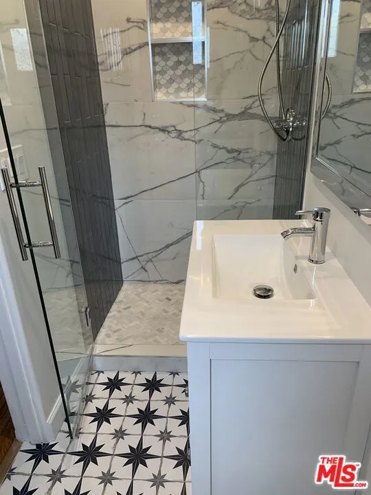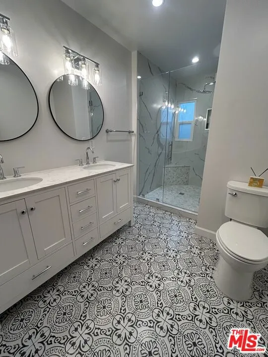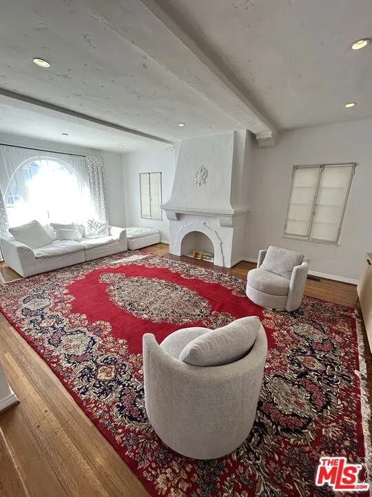 A sun-filled, beautifully reimagined lower-level 2BR/2BA residence sits within a classic Spanish duplex and blends timeless architectural character with a sophisticated, modern renovation. The expansive living room flows effortlessly into a formal dining room and a charming breakfast nook off the newly remodeled kitchen, featuring premium stainless-steel appliances and designer-selected finishes. Two large bedrooms, with the primary suite offering a spacious walk-in closet and a stylish en-suite bathroom. Multiple windows in every room bathe the home in natural light, enhancing the warm, inviting atmosphere. Thoughtfully curated throughout, the home showcases rich hardwood floors, graceful arched doorways, recessed lighting, high ceilings, and tastefully remodeled bathrooms with upscale materials and contemporary fixtures. Additional highlights include central A/C and heat, a brand-new in-unit washer and dryer, a security system, reverse osmosis water filtration, covered 2-car garage parking, and a versatile layout ideal for everyday living or working from home. The property also features a welcoming courtyard framed by olive trees and a backyard filled with fruit trees. Perfectly situated location, Beverly Hills adjacent, walking distance to houses of worship, and moments from Robertson Blvd, Beverly Center, Cedars-Sinai, Pico-Robertson, parks, dining, and shopping. Available for immediate occupancy.