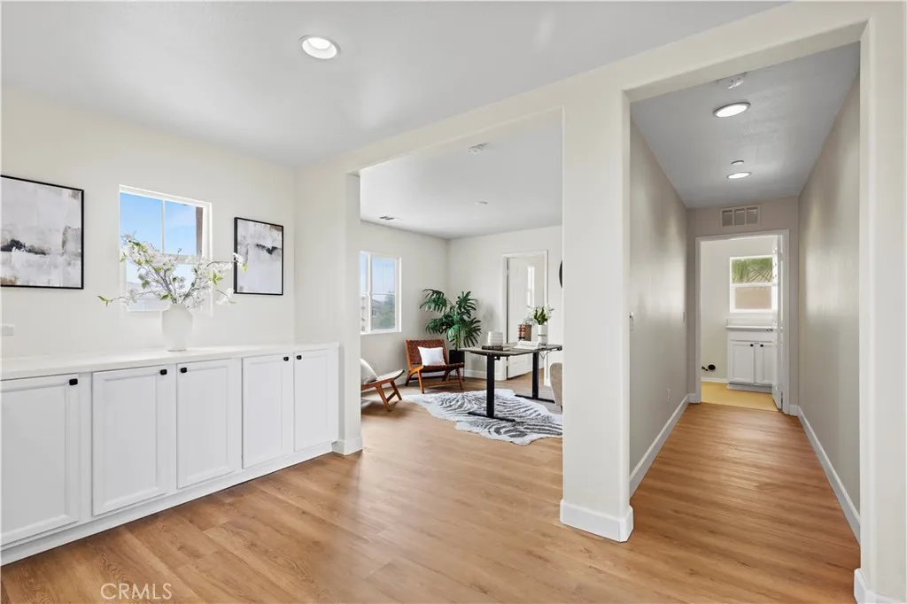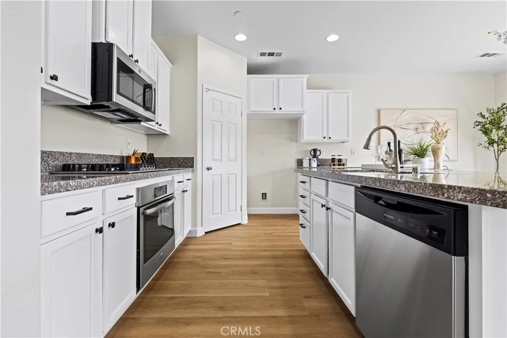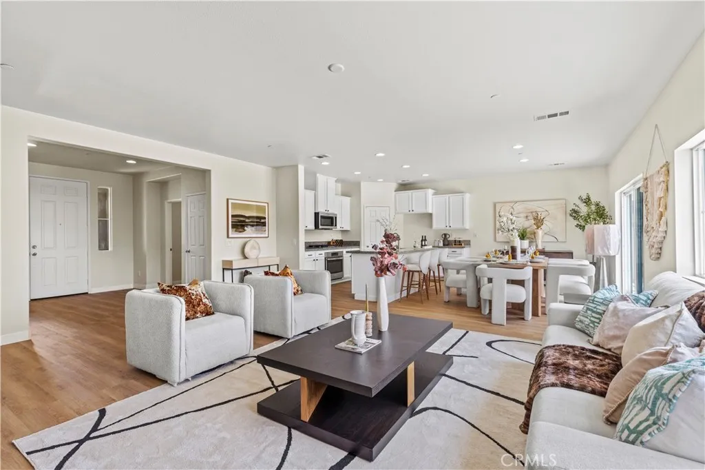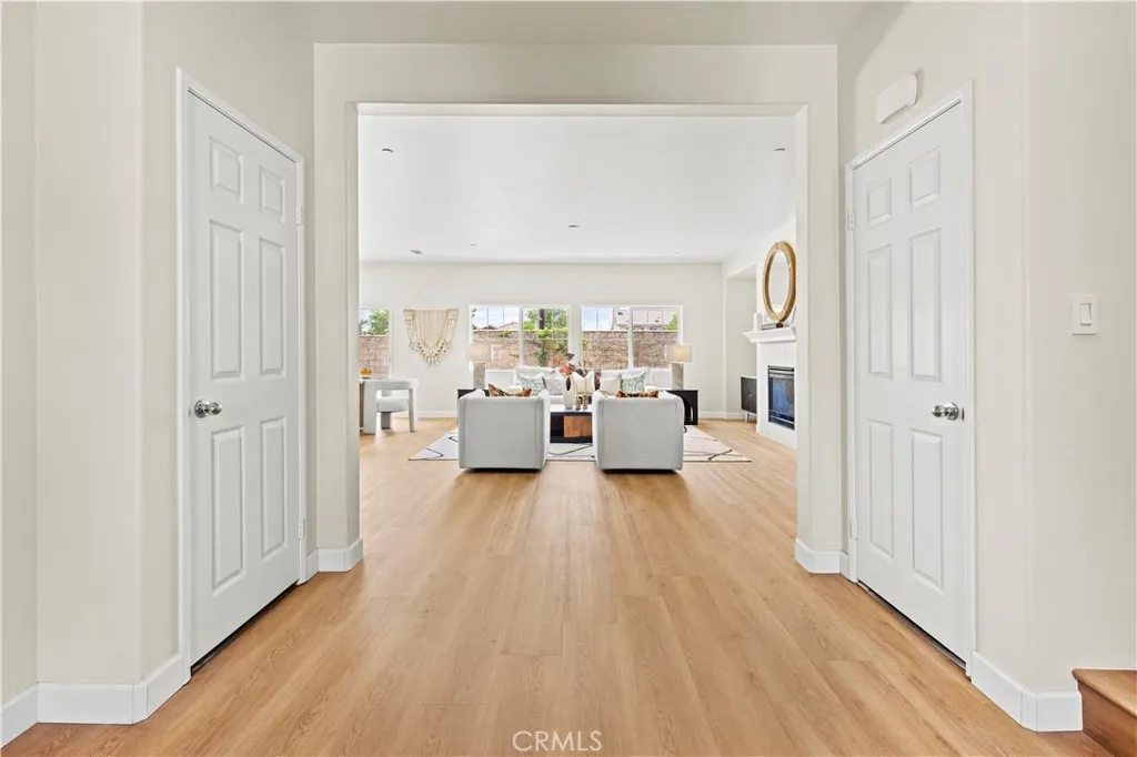 Stunning Eastvale home featuring a rare dual private-entry layout, including a builder-designed Junior Suite with ADU-style functionality, flexible living potential, and a complete renovation. Welcome to 6895 Riverglen Ct, Eastvale, offering approximately 3,112 square feet of living space on a 7,405 square foot lot. This home features 5 bedrooms and 4 bathrooms and was built in 2013. The home has been extensively updated with high-quality upgrades, including newly installed waterproof flooring, fresh interior and exterior paint, refinished and repainted cabinetry, a new stove and dishwasher, and modern lighting throughout—creating a bright, clean, and contemporary living environment. What truly sets this property apart is the builder-designed Junior Suite (approximately 500 square feet). This suite features a private entrance, a separate living area, a full kitchen, bedroom, bathroom, and dedicated laundry facilities. This is not a conversion, but part of the original floor plan designed for independent living. The home offers dual entrances and two laundry areas, providing flexibility for a variety of living arrangements. The Junior Suite adds versatility for extended living or potential rental use (buyer to verify). The spacious open-concept main living area flows seamlessly into the backyard, making it ideal for both everyday living and entertaining. The thoughtfully designed layout balances openness and privacy, accommodating a variety of lifestyle needs. Located in a prime Eastvale neighborhood, the property is conveniently situated near local elementary and middle schools and offers easy access to parks, shopping centers, dining, and major freeways. The community is known for its strong residential appeal and long-term desirability. Homes featuring a builder-designed Junior Suite with dual-living functionality and this level of modern upgrades are seldom available in Eastvale. This is a unique opportunity to own a versatile property that combines comfort, flexibility, and long-term potential.