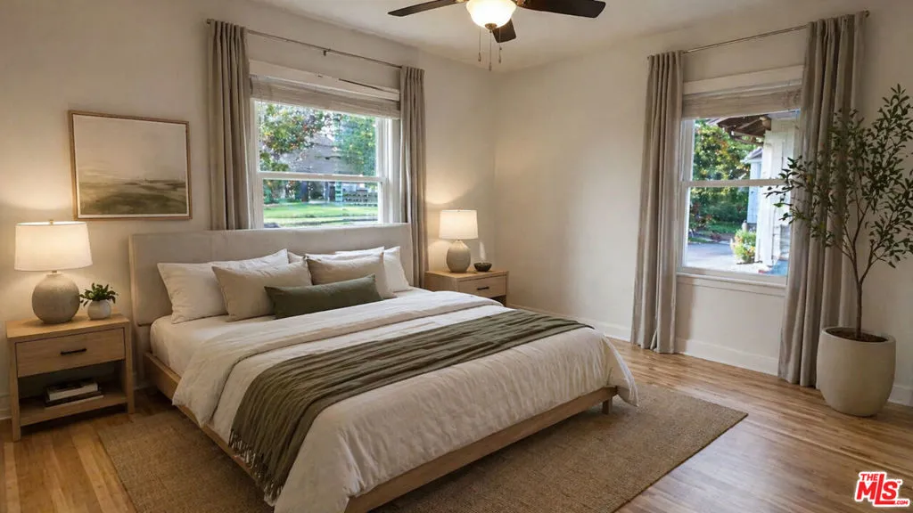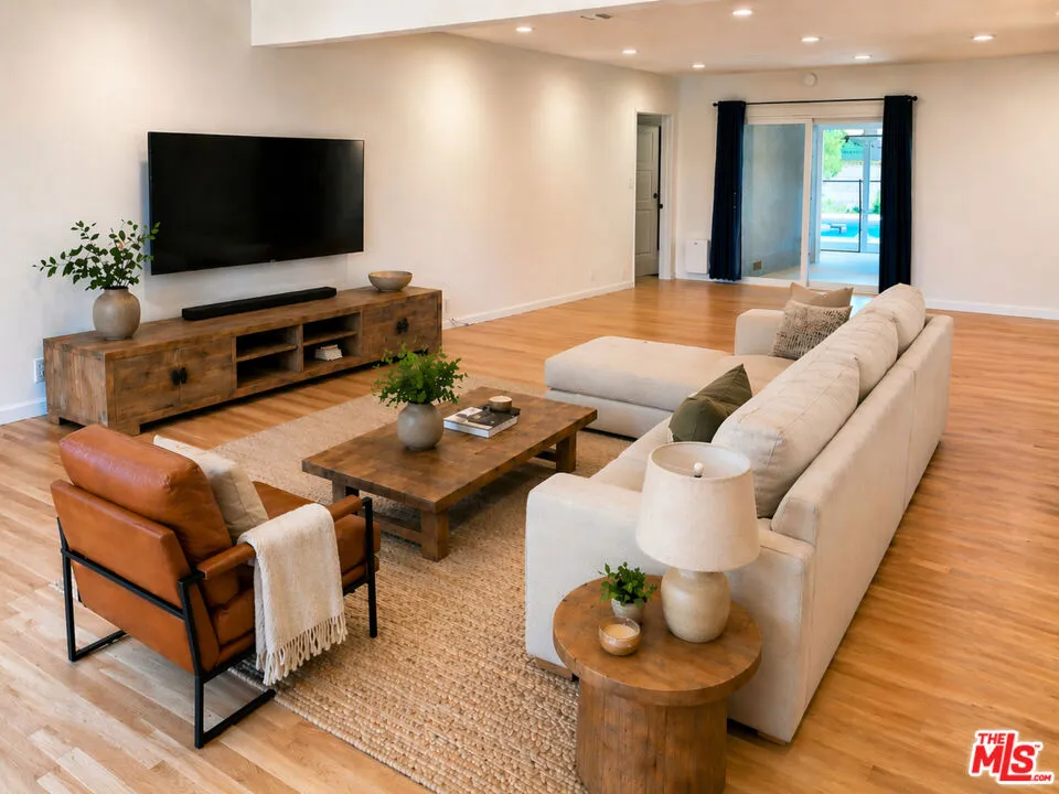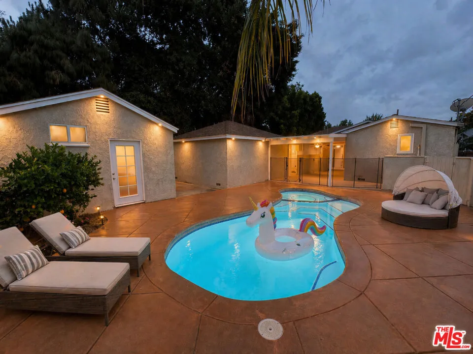 This property truly offers the best of both worlds: a peaceful setting on a tree-lined street in a quiet pocket of Lake Balboa, paired with a home that immediately feels special. Natural light pours through the open living spaces, creating a bright, uplifting atmosphere and a warmth that is increasingly hard to find. It is the kind of place that calms your heart. The main residence offers 3 bedrooms and 2 bathrooms, all thoughtfully laid out on a single story, along with the rare added flexibility of a separate detached studio and detached 2 car garage. The expansive open floor plan is a standout feature, with a generous kitchen island and breakfast bar seating more commonly found in newer construction, making the home feel both current and inviting. Beautifully refinished hardwood floors, recessed lighting, and thoughtfully updated bathrooms elevate the living experience, while the primary suite offers a true sense of retreat. Its remodeled bath with dual vanities is beautifully appointed, and the oversized walk-in closet with built-ins is the kind of feature buyers instantly fall in love with. The kitchen is equally impressive, complete with stainless steel appliances, wood cabinetry, and granite countertops designed for both everyday living and memorable gatherings. Beyond the interior, the home continues to deliver a feeling of comfort, privacy, and possibility. Solar for electricity, in-unit laundry with upscale washer and dryer units, a covered patio, and a secluded backyard with a heated pool and spa all come together to create a property that supports both relaxation and entertaining. Whether hosting friends, enjoying a quiet evening outside, or simply living day to day, this home offers the kind of warmth and versatility that is hard to find. Set in one of Lake Balboa's most sought-after neighborhoods, the location is just minutes from Lake Balboa Park and its bike path, multiple golf courses, shops, restaurants, and convenient access to the 101 and 405 freeways. Rarely does a property combine this much light, function, flexibility, and feeling in one offering.