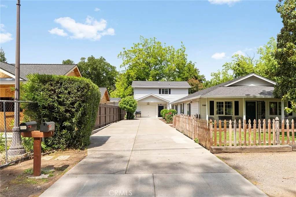 Welcome to 1166 & 1168 E. 10th Street—a fantastic investment opportunity featuring three separate units on one lot! Whether you’re looking to live in the main home while generating income from the additional units, or maximize rental potential with long- or short-term leases, this property offers incredible flexibility—including strong Airbnb possibilities. The front home is full of charm, offering 4 bedrooms and 2 bathrooms with an inviting and thoughtfully designed layout. From the moment you arrive, you’ll love the private front yard shaded by a large tree, complete with a classic picket fence, welcoming front porch, and charming black shutters—truly picture-perfect curb appeal. Inside, the home is light, bright, and open with a spacious living room, vaulted ceilings, and an open kitchen featuring a peninsula island with bar-top seating and a dedicated dining area. Tile flooring runs throughout the main living spaces, with cozy carpet in the bedrooms. All four generously sized bedrooms and two bathrooms are tucked toward the back of the home for added privacy. A full-size washer and dryer are conveniently located inside. The two rear units each feature 1 bedroom and 1 bathroom, with full kitchens including a stove, dishwasher, refrigerator, and microwave. Each unit also includes its own private stackable washer and dryer—ideal for tenants or guests. All three units have been well cared for and show beautifully, making this a turn-key opportunity for investors or owner-occupants.