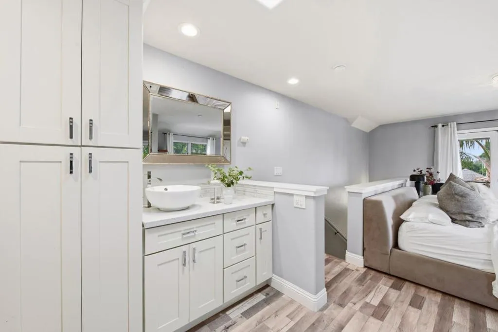 Modern Mediterranean Townhouse in a Prime San Jose Location. Discover this beautifully designed Modern townhouse located in a boutique, gated community within the desirable Olinder neighborhood. Enjoy an unbeatable location near Japantown, San Pedro Square, SJSU, and the SAP Center, with convenient access to 101, major freeways, and Silicon Valleys leading tech employers. Step inside to a bright, open-concept floor plan highlighted by soaring ceilings, large windows and modern finishes throughout. Offering the comfort and privacy of a single-family home, this residence features a one-car garage, one assigned parking space, and two separate ground-floor entrances for added flexibility. The versatile third-floor space may serve as a luxurious primary suite or a private, income-producing unit with its own entrance and balcony. A dedicated office area makes working from home both practical and comfortable. The home showcases updated bathrooms, a modern kitchen, stylish flooring, recessed lighting, a cozy gas fireplace, and two private balconies ideal for indoor-outdoor living. Enjoy easy access to shopping, dining, entertainment, and outdoor recreation, all while embracing the vibrant city living. A rare opportunity to own a thoughtfully designed, flexible home in Silicon Valley