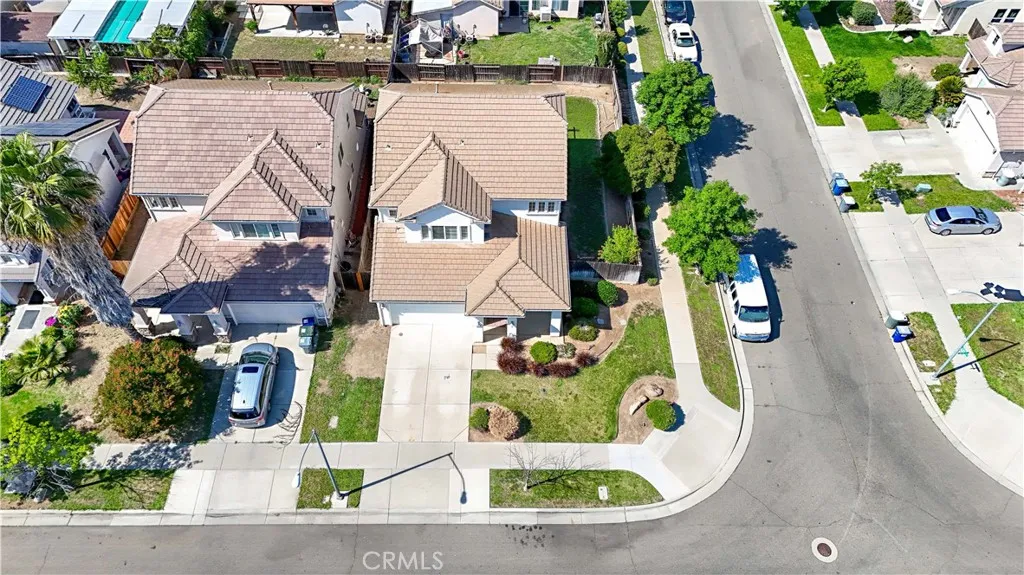 This beautiful 5-bedroom home on a corner lot in North Merced is a must see! With fresh paint and carpet throughout the interior, this house is move-in ready! The front door opens into a big & bright family room showing off the spacious floorplan. The downstairs area consists of two family rooms, the kitchen, laundry room, two bedrooms, and a full bathroom. The primary bedroom is at the top of the stairs with a private bathroom and a walk-in closet. Also upstairs are two more bedrooms with a Jack-and-Jill bathroom and a wall of cabinets for plentiful storage. There is a two-car garage, a large driveway, and ample street parking. This is a great option for a multi-generational family or an investor. The high windows let in lots of natural light and give the home a warm and comfortable feeling. Please come and take a tour!