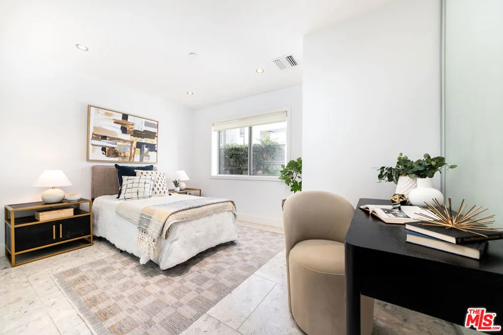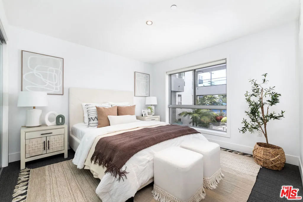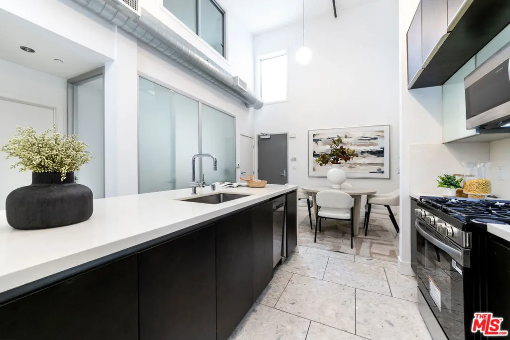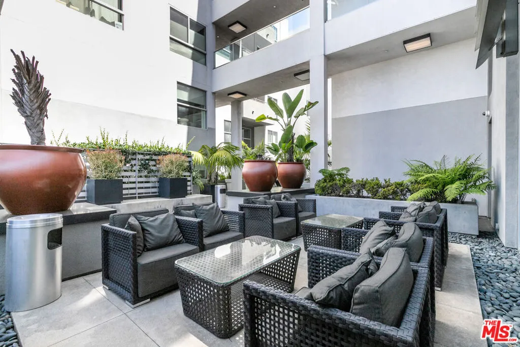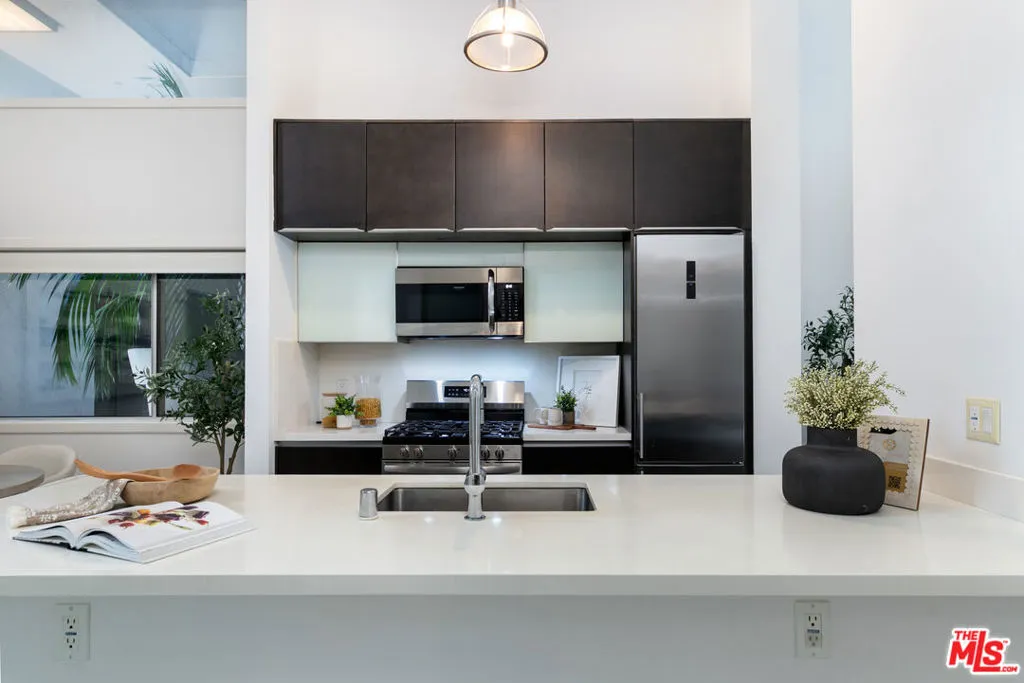 Experience the height of coastal urban living in this striking architectural loft-style townhome, perfectly situated in a prime West LA location just west of the 405. This sophisticated 2-bedroom, 2-bathroom unit offers an airy, open layout defined by soaring ceilings, recessed lighting, and a seamless flow to a large, charming private patio ideal for al fresco dining and entertaining. The gourmet kitchen is a chef's dream, featuring Caesarstone countertops and high-end stainless steel Energy Star appliances, while the convenience of an in-unit washer and dryer completes the interior. Residents enjoy luxury building amenities including a resort-style furnished courtyard with a fireplace and two dedicated, non-tandem parking spaces in a secure subterranean garage equipped with a storage room and bike racks. Offering incredible value, the HOA fee covers internet, water, gas, and earthquake insurance, making this a rare, turn-key opportunity to own in one of LA's most desirable neighborhoods just steps from the vibrant shops and restaurants.