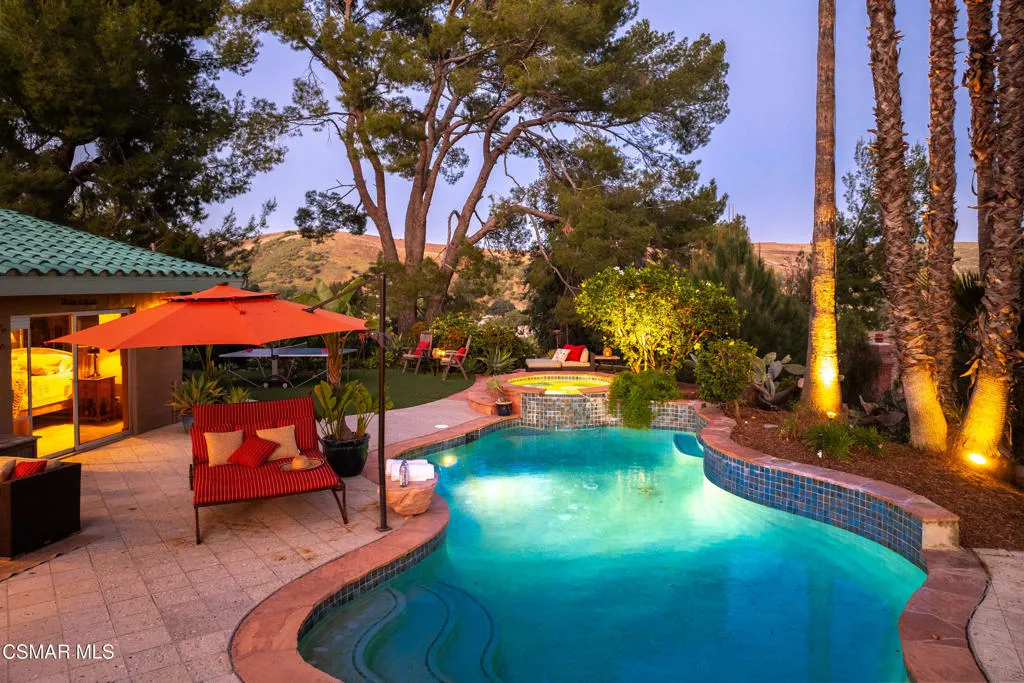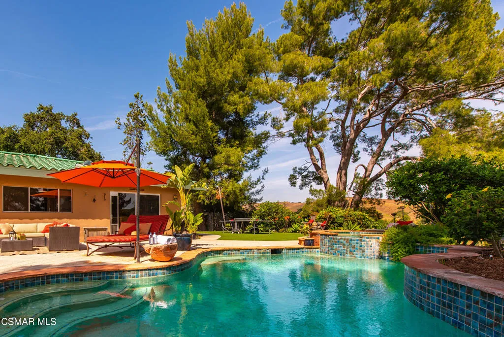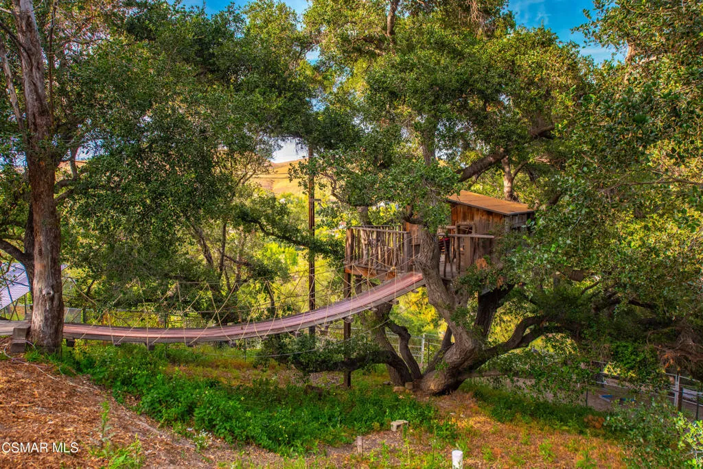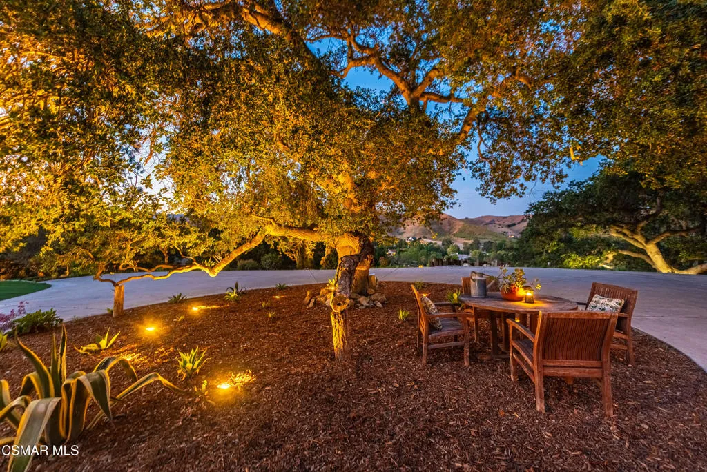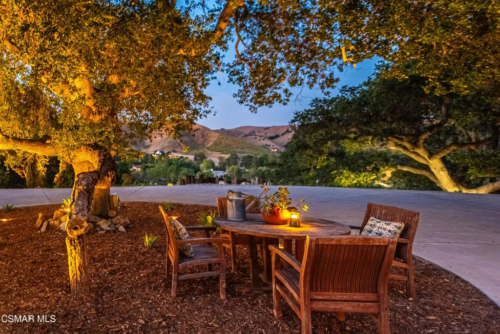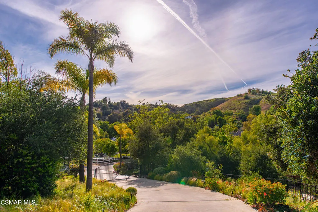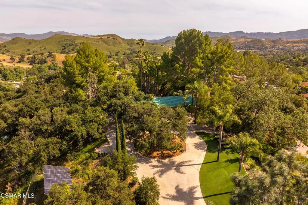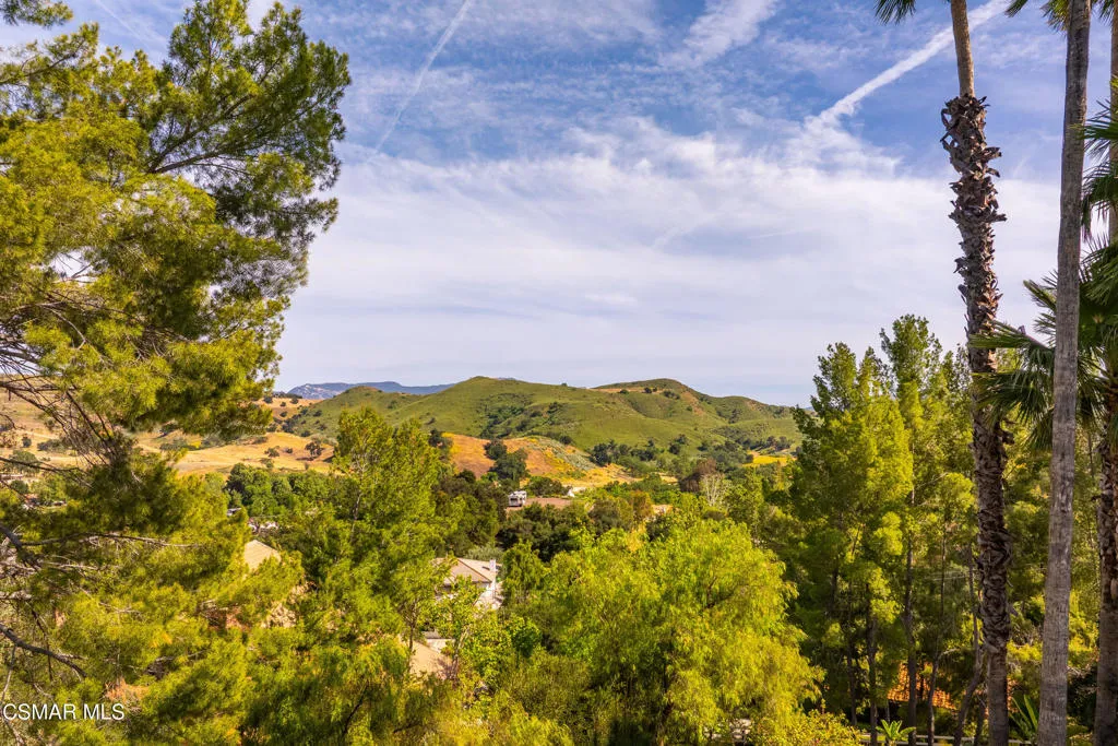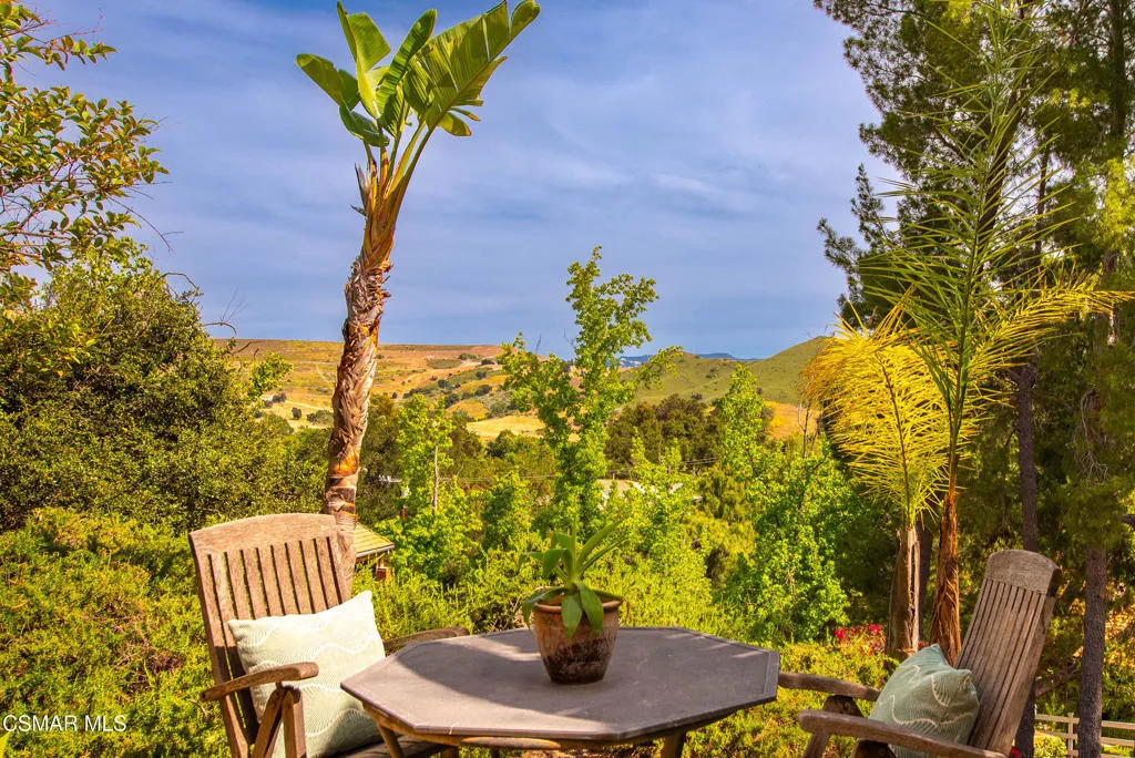 Sweeping, cinematic views stretch in every direction from this gated single-story home atop a rare, flat hilltop location. Rolling hills dotted with mature trees create a backdrop that feels both expansive and deeply serene. Welcome to ''Casa Tequila,'' where the resort-like atmosphere is relaxed, inviting, and effortlessly fun. Life here has an easy, vacation-like rhythm that makes it hard to leave. The residence is privately gated with a wide circular driveway. The property is ideal for those seeking an extremely private setting; the home and majority of the property cannot be seen from the street. The home itself has a versatile floor plan, featuring three en-suite bedrooms, a charming powder room and a great room with peaked wood ceiling. Tucked away at the far end of the home you'll find the primary suite, which not only offers an outdoor shower, it's also just steps from the pool and spa and the resort vibe you'll love. Just off the kitchen and great room is a long wall of sliding glass doors revealing a panorama of trees and hills, while the sprawling backyard patio beckons fun and relaxation. The outdoor BBQ area, complete with a sink, firepit, and built-in seating, sets the stage for lively gatherings and unhurried evenings under the stars. There's also a gate at the back of the parcel affording an additional way to access the property. Adding to the property's charisma is a delightful bunkhouse with a Dutch door and peaked wood ceiling. It makes for a fun hang out for kids or a creative office space where you can work while immersed in nature. Don't miss the whimsical treehouse reminiscent of Swiss Family Robinson. So much to explore tucked among magnificent oak trees in this storybook setting! (Neither structure is included in the square footage). Located just a few minutes to town, Old Agoura is city close but feels like a world away. The property is in the acclaimed Las Virgenes school system and near top private schools. Cheeseboro National Park with its 4,000 acres of horse, cycling and hiking trails is very close by and Malibu beaches are about 20 minutes away.