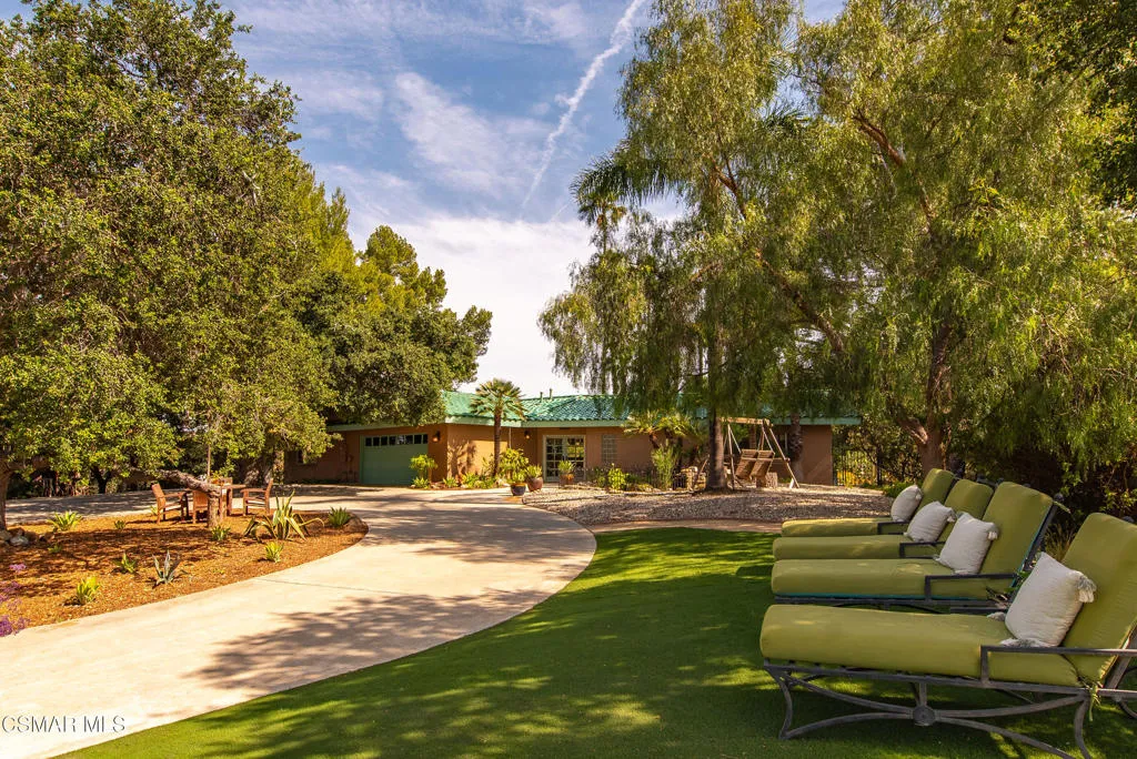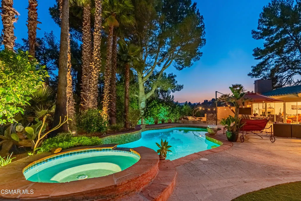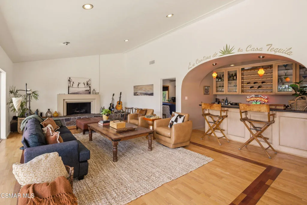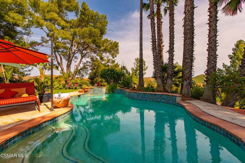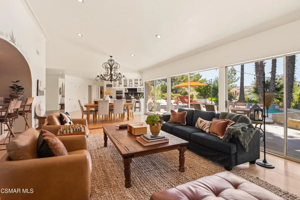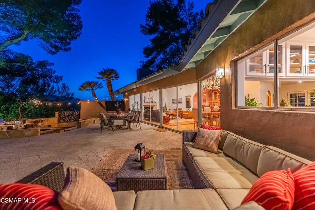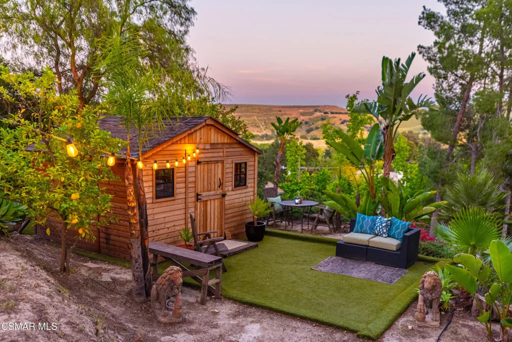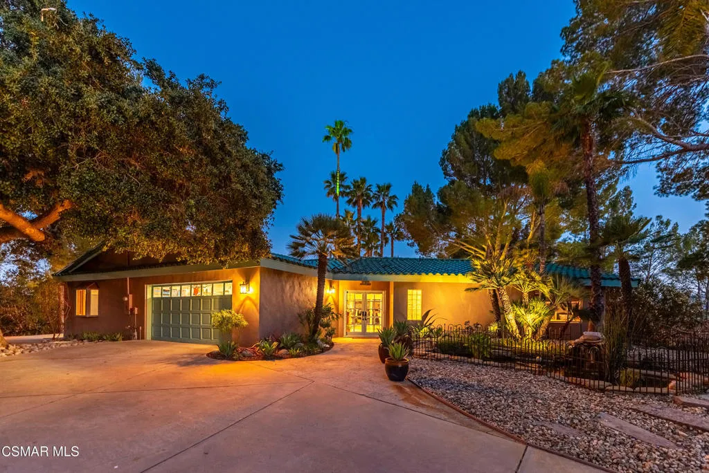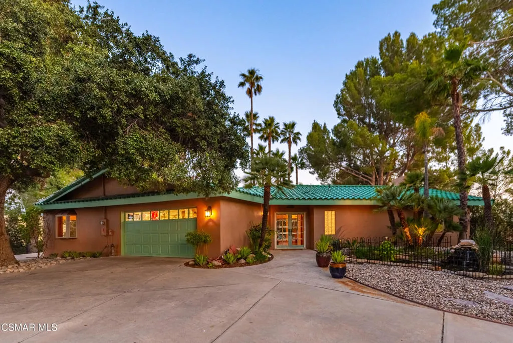 Sweeping, cinematic views stretch in every direction from this gated single-story home atop a rare, flat hilltop location. Rolling hills dotted with mature trees create a backdrop that feels both expansive and deeply serene. Welcome to ''Casa Tequila,'' where the resort-like atmosphere is relaxed, inviting, and effortlessly fun. Life here has an easy, vacation-like rhythm that makes it hard to leave. The residence is privately gated with a wide circular driveway. The property is ideal for those seeking an extremely private setting; the home and majority of the property cannot be seen from the street. The home itself has a versatile floor plan, featuring three en-suite bedrooms, a charming powder room and a great room with peaked wood ceiling. Tucked away at the far end of the home you'll find the primary suite, which not only offers an outdoor shower, it's also just steps from the pool and spa and the resort vibe you'll love. Just off the kitchen and great room is a long wall of sliding glass doors revealing a panorama of trees and hills, while the sprawling backyard patio beckons fun and relaxation. The outdoor BBQ area, complete with a sink, firepit, and built-in seating, sets the stage for lively gatherings and unhurried evenings under the stars. There's also a gate at the back of the parcel affording an additional way to access the property. Adding to the property's charisma is a delightful bunkhouse with a Dutch door and peaked wood ceiling. It makes for a fun hang out for kids or a creative office space where you can work while immersed in nature. Don't miss the whimsical treehouse reminiscent of Swiss Family Robinson. So much to explore tucked among magnificent oak trees in this storybook setting! (Neither structure is included in the square footage). Located just a few minutes to town, Old Agoura is city close but feels like a world away. The property is in the acclaimed Las Virgenes school system and near top private schools. Cheeseboro National Park with its 4,000 acres of horse, cycling and hiking trails is very close by and Malibu beaches are about 20 minutes away.