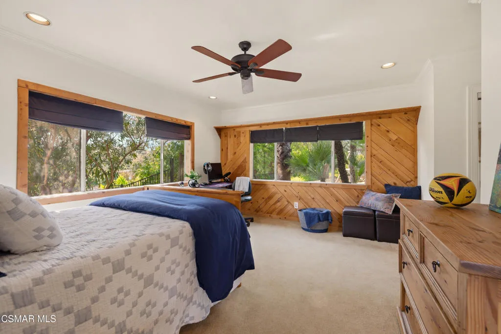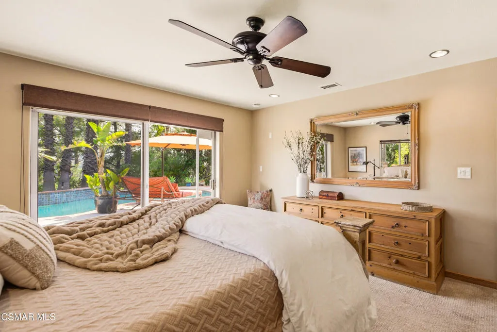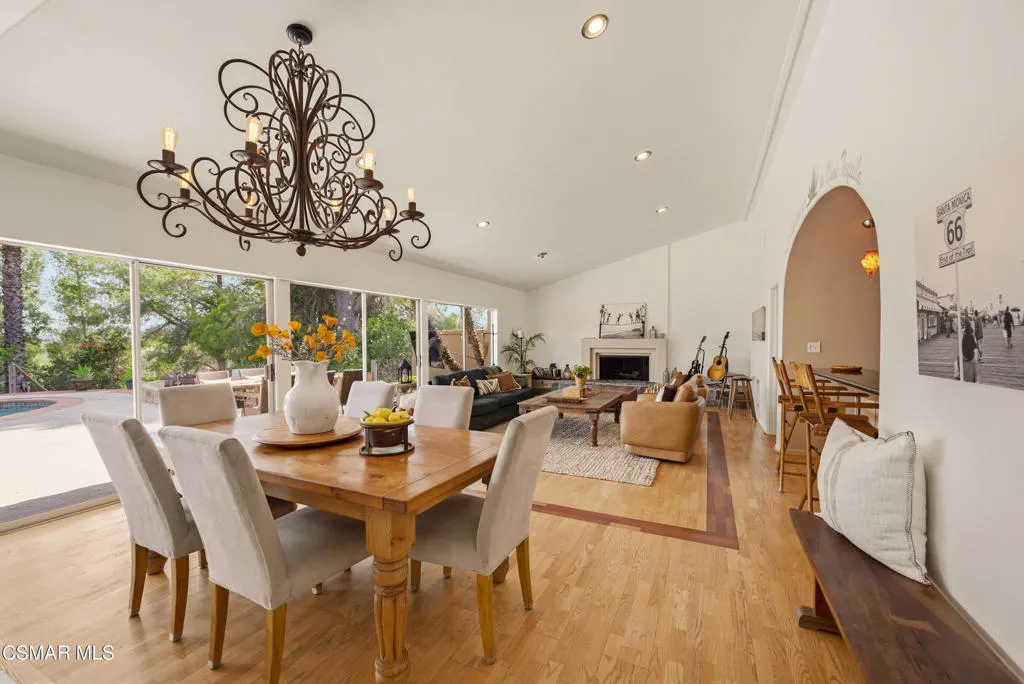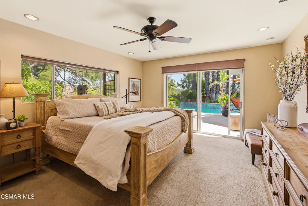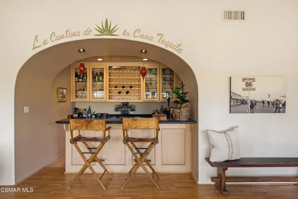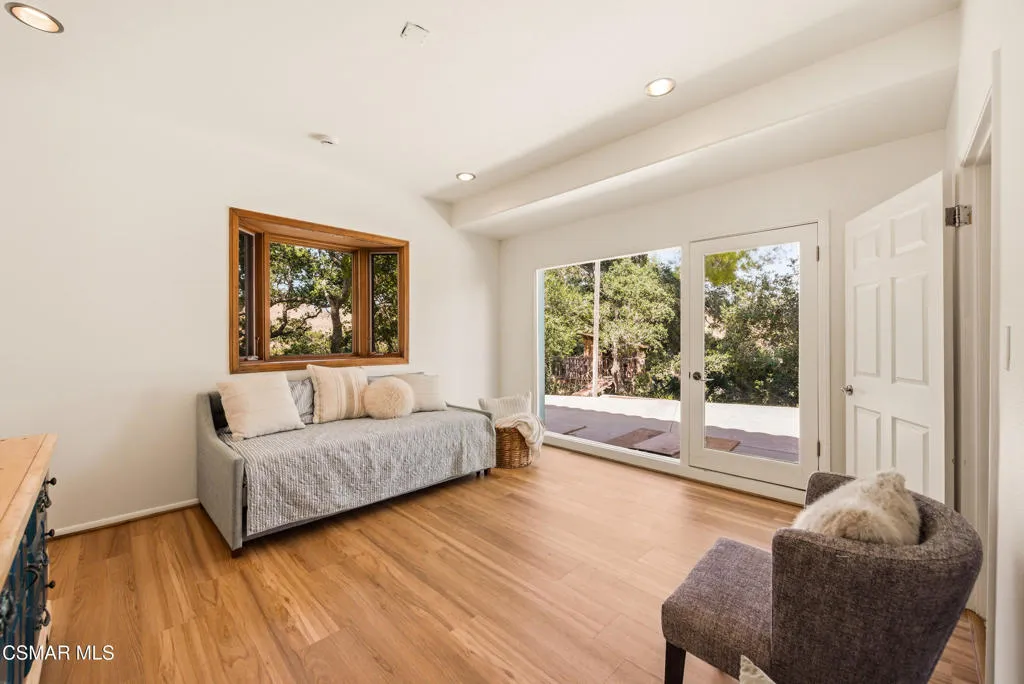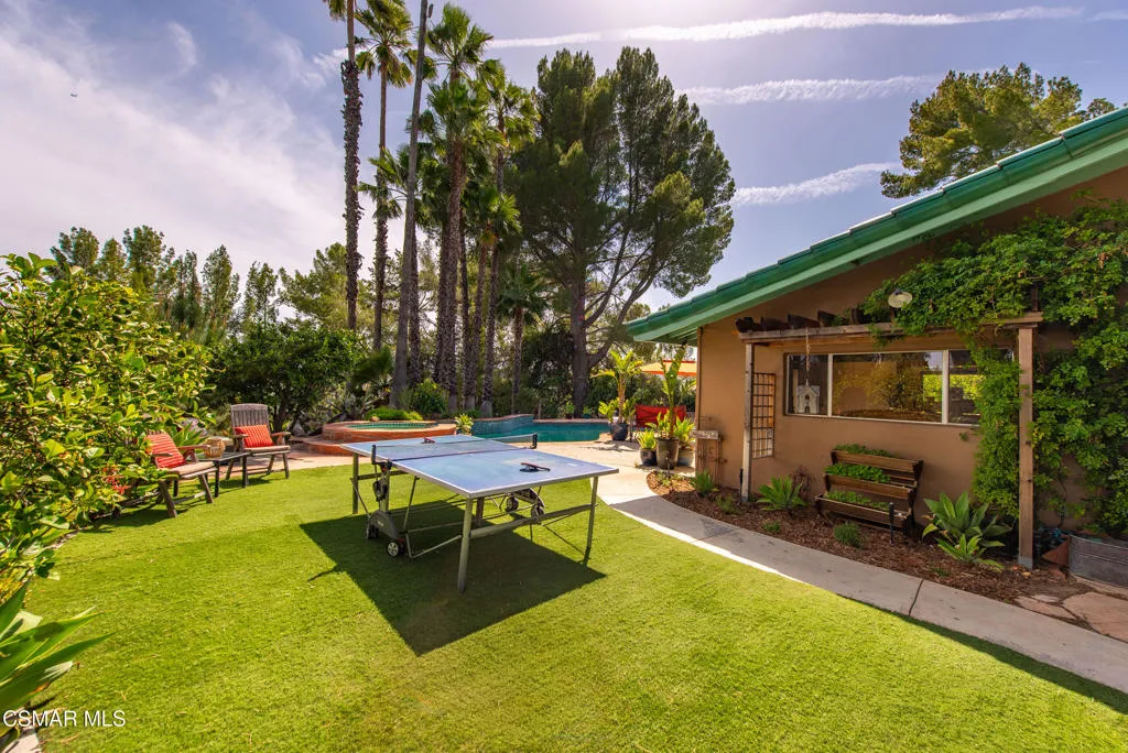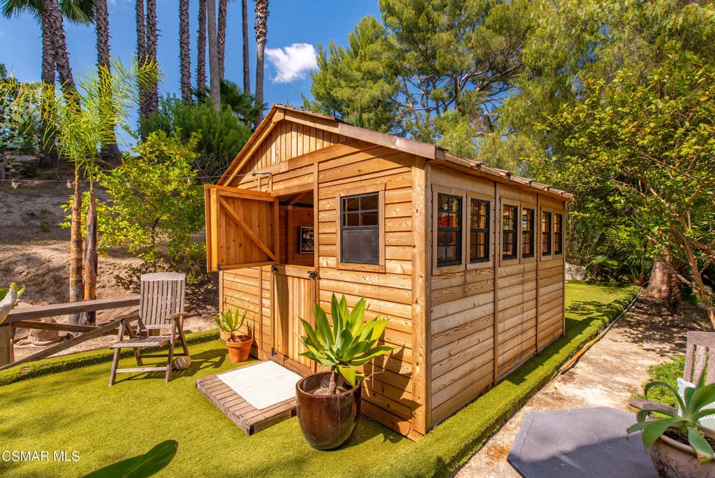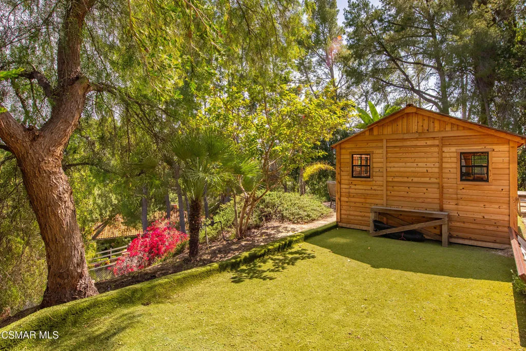 Sweeping, cinematic views stretch in every direction from this gated single-story home atop a rare, flat hilltop location. Rolling hills dotted with mature trees create a backdrop that feels both expansive and deeply serene. Welcome to ''Casa Tequila,'' where the resort-like atmosphere is relaxed, inviting, and effortlessly fun. Life here has an easy, vacation-like rhythm that makes it hard to leave. The residence is privately gated with a wide circular driveway. The property is ideal for those seeking an extremely private setting; the home and majority of the property cannot be seen from the street. The home itself has a versatile floor plan, featuring three en-suite bedrooms, a charming powder room and a great room with peaked wood ceiling. Tucked away at the far end of the home you'll find the primary suite, which not only offers an outdoor shower, it's also just steps from the pool and spa and the resort vibe you'll love. Just off the kitchen and great room is a long wall of sliding glass doors revealing a panorama of trees and hills, while the sprawling backyard patio beckons fun and relaxation. The outdoor BBQ area, complete with a sink, firepit, and built-in seating, sets the stage for lively gatherings and unhurried evenings under the stars. There's also a gate at the back of the parcel affording an additional way to access the property. Adding to the property's charisma is a delightful bunkhouse with a Dutch door and peaked wood ceiling. It makes for a fun hang out for kids or a creative office space where you can work while immersed in nature. Don't miss the whimsical treehouse reminiscent of Swiss Family Robinson. So much to explore tucked among magnificent oak trees in this storybook setting! (Neither structure is included in the square footage). Located just a few minutes to town, Old Agoura is city close but feels like a world away. The property is in the acclaimed Las Virgenes school system and near top private schools. Cheeseboro National Park with its 4,000 acres of horse, cycling and hiking trails is very close by and Malibu beaches are about 20 minutes away.