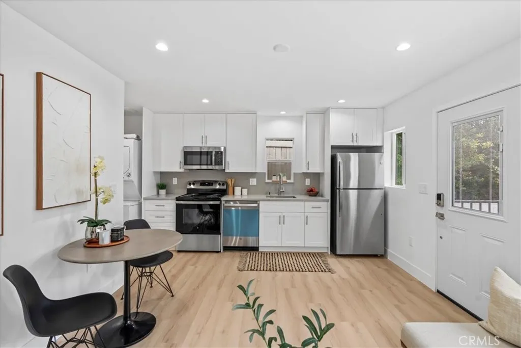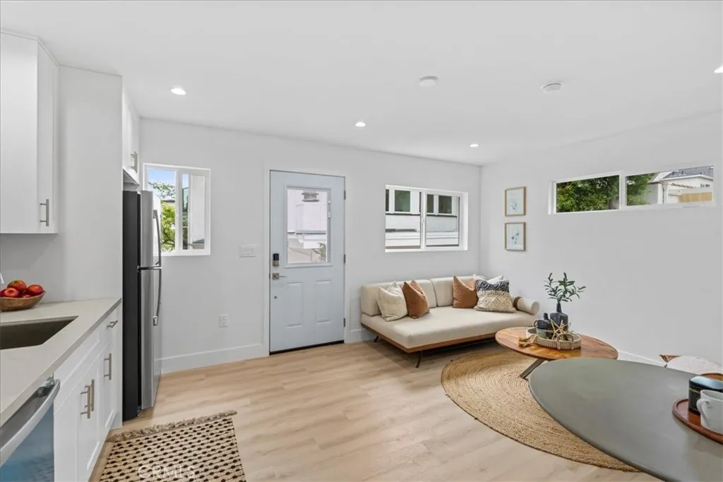 Remodeled House (2022) | 4 BD | 3 BA | 2,540 Sq Ft with new construction ADU (2025) | 1 BD | 1 BA | 433 Sq Ft --|-- A stunning, to-the-studs transformation in the heart of Westwood, this reimagined 5-bedroom, 4-bath home – with a brand-new, never-occupied ADU – delivers modern luxury and exceptional craftsmanship at every turn. Spanning nearly 2,983 sq ft, the residence blends architectural timelessness with the performance of a modern build. The sun-drenched, vaulted living room creates an immediate sense of volume. The open-concept chef’s kitchen is anchored by a large social island, custom cabinetry, Thermador appliances, and a charming breakfast nook. The main level is completed by an inviting family room, formal dining room, and a flexible bedroom ideal for a private office, gym, playroom, or guest suite. Upstairs, the sophisticated primary suite features expansive windows and a dramatic double-sided fireplace. Its spa-inspired bath has all the features, boasting a soaking tub, smart-touch shower system, towel warmer, and Toto bidet toilet. Outdoor living extends the home’s serenity with a vine-covered patio and a curated edible orchard—including Pineapple Guava, Passionfruit, Ice Cream Bean, Oroblanco Grapefruit, and Little Cado Avocado. A ground-up, detached ADU with its own address and private entrance offers unmatched versatility. Significant infrastructure investments provide total peace of mind: a new roof, windows, plumbing, electrical, CAT-6 wiring, multi-zone HVAC with central A/C, earthquake retrofitting, and enhanced drainage systems. Includes an expanded driveway with EV charging. Perfectly positioned moments away from UCLA, Century City, and Beverly Hills as well as being close to award-winning schools, including an easy walk to Fairburn Elementary. For a deeper look into the meticulous renovation journey, search Google for “1320 Thayer Renovation.”